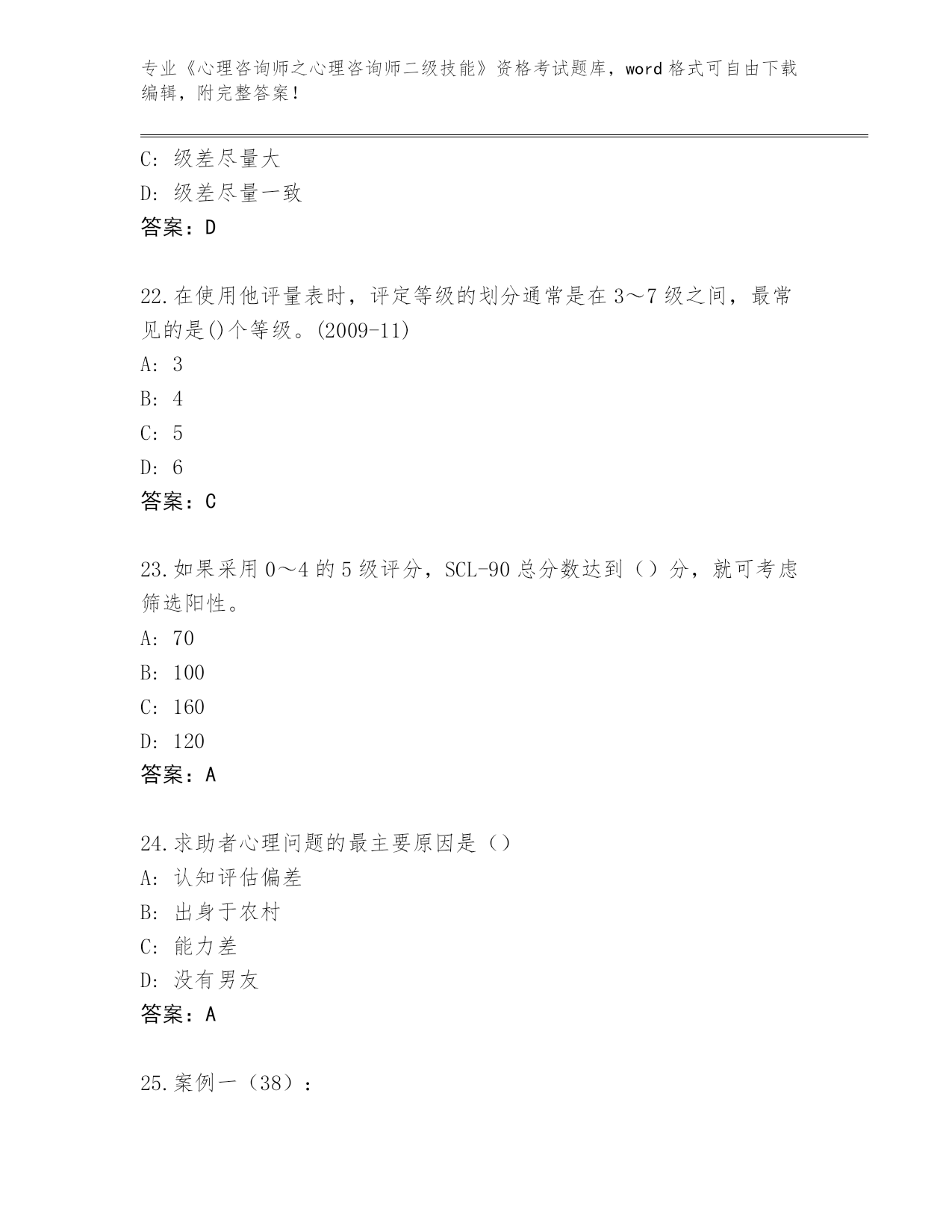 福建省长乐市历年《心理咨询师之心理咨询师二级技能》资格考试真题题库(完整版)