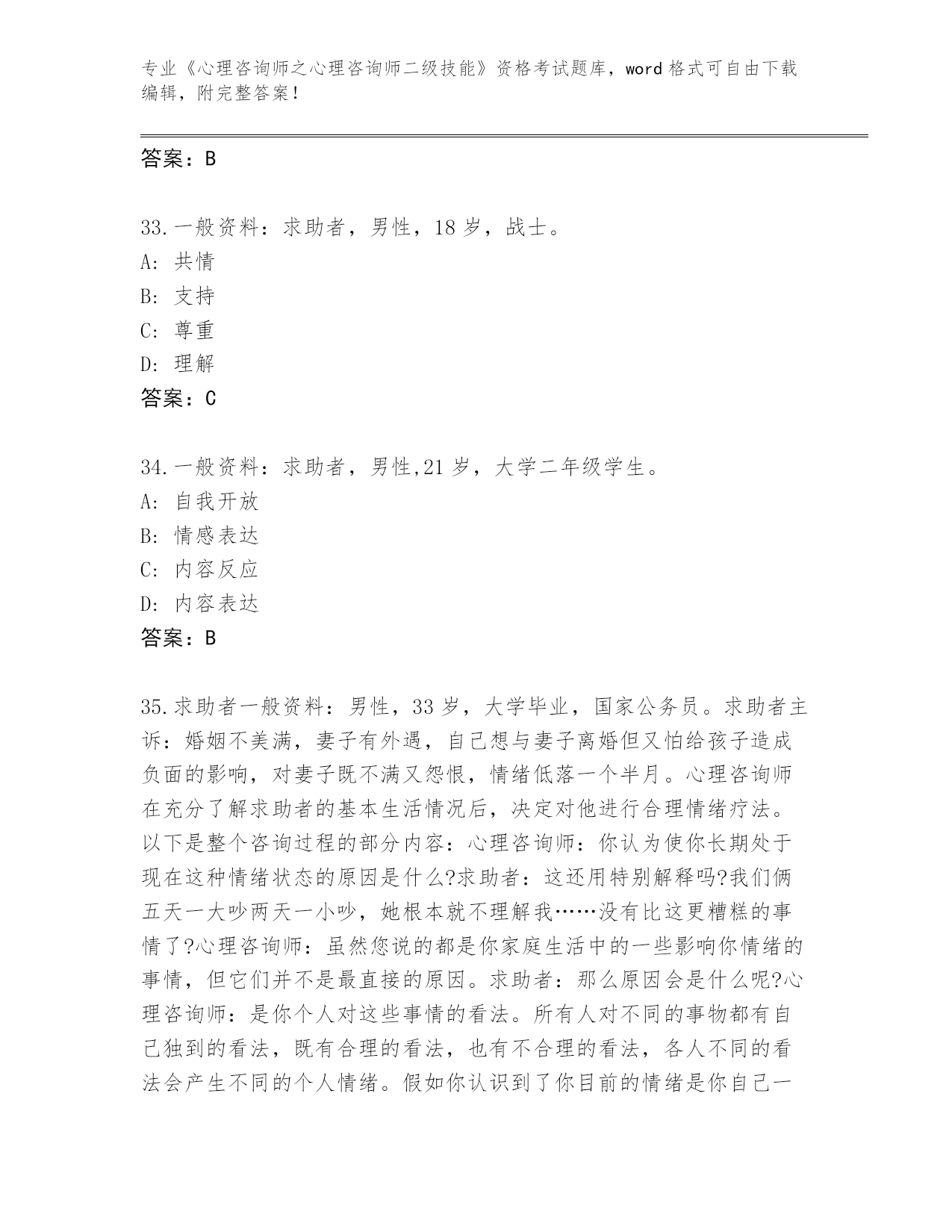 福建省《心理咨询师之心理咨询师二级技能》考试真题题库(历年真题)