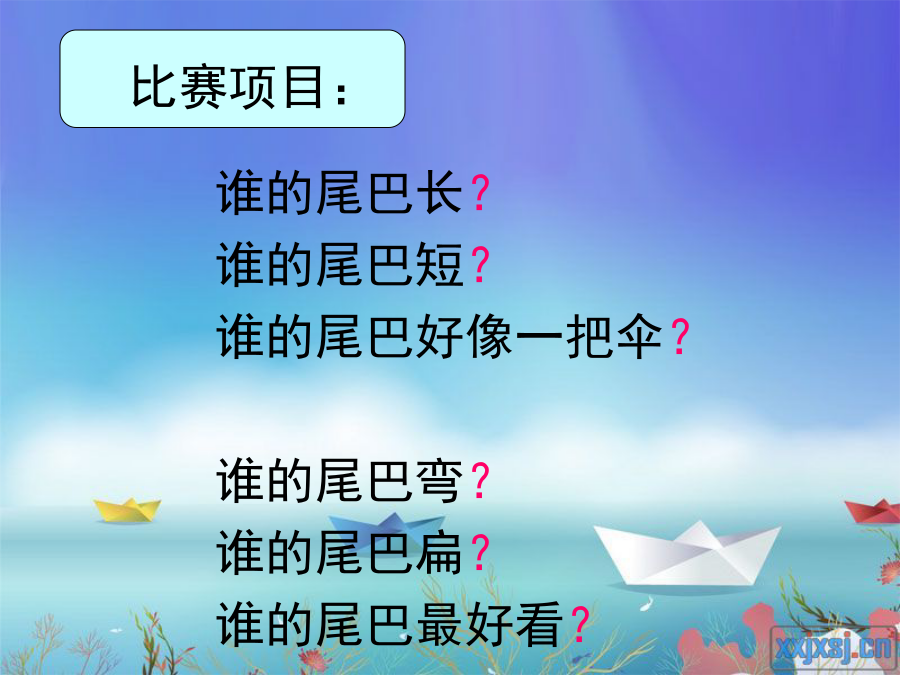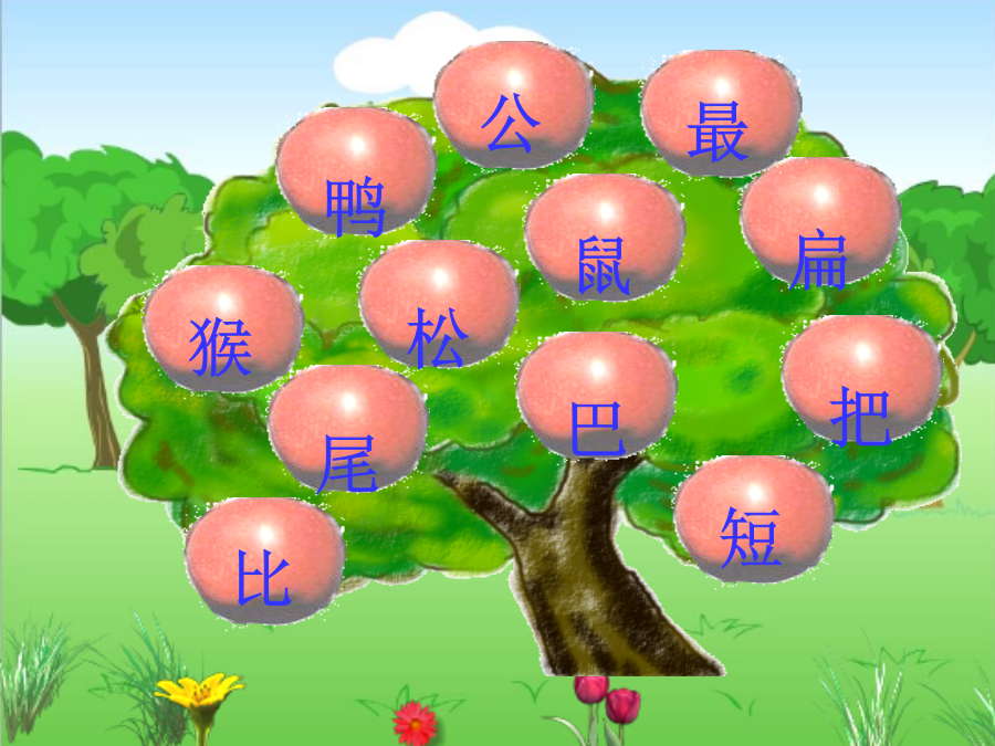 1bǐwěibaduǎnbǎhóu比尾巴短把猴sōngshǔbiǎnzuìgōngyā松鼠扁最公鸭公谁的尾巴长?谁的尾巴短?谁的尾巴好像一把伞?谁的尾巴弯?谁的尾巴扁?谁的尾巴最好看?1猴子的尾巴长松鼠的尾巴好像一把伞。公鸡的尾巴弯鸭子的尾巴扁孔雀的尾巴最好看。老鼠的尾巴像____。马的尾巴像____。燕子的尾巴像____。老虎的尾巴像____。作业