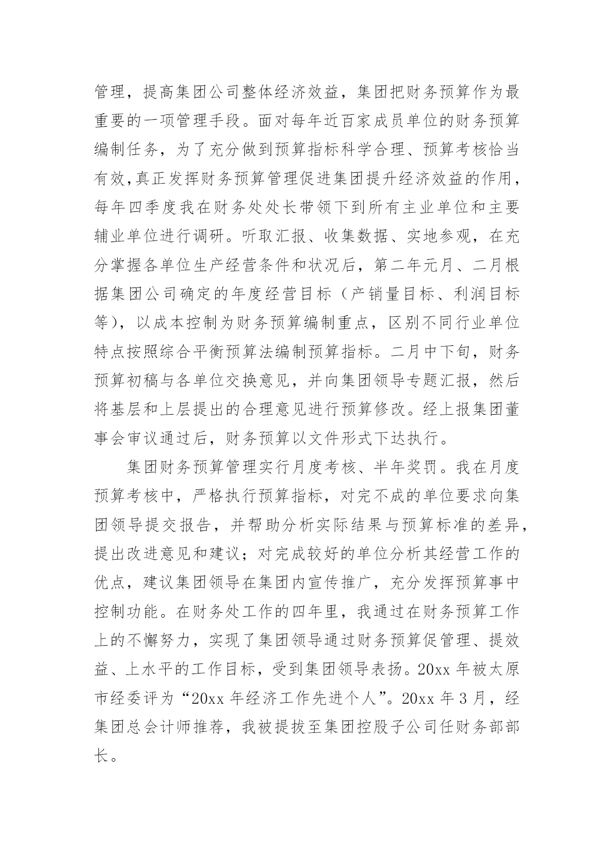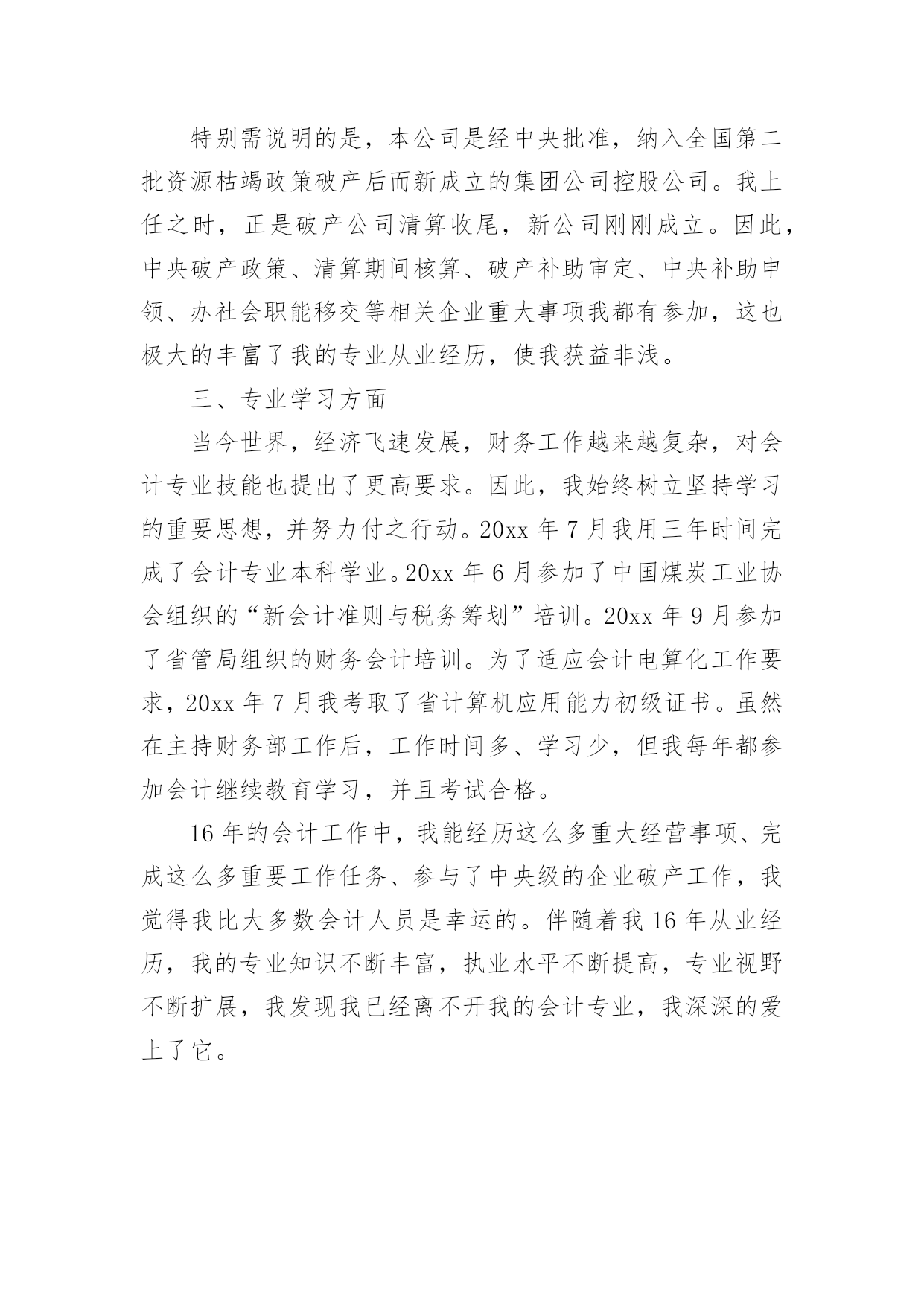 高级会计师专业技术工作总结格式高级会计师专业技术工作总结格式1995年会计大专毕业分配后,我即开始从事会计工作,至今已在会计岗位工作16个年头。20xx年我考取会计中级专业技术资格,20xx年被所在集团公司聘为会计师。20xx年3月我被集团公司提拔至其控投子公司财务部工作,任公司财务部部长。任职会计师的七年时间里,无论在集团公司从事具体会计工作,还是在子公司财务部主持会计工作,我都坚持做到爱岗敬业,尽职尽责,执业谨慎,诚实守信,廉洁自律,遵纪守法,实事求是,坚持准则,不断学习,提高技能,参与管理,努力贡献。在我和财务部全体人员在共同努力下,我公司财务管理工作在集团公司连年名列前茅。现将七年任职期间的主要专业技术工作进行汇报:一、集团公司期间的主要工作情况我在集团公司财务处工作了四年,主要负责集团所属全部子分公司、直属单位及集团处室的财务预算编制与考核。本集团是国有重点煤炭集团,原煤年产量4000万吨以上,各种成员单位众多,包括原煤矿10座、洗煤厂8座、地面生产单位7所(水泥、机电、煤气、化工、建筑、电力、多种经营)、办社会机构几十个(学校、医院、生活后勤等)、以及集团直属单位和处室等。为了加强集团内部各单位经营管理,提高集团公司整体经济效益,集团把财务预算作为最重要的一项管理手段。面对每年近百家成员单位的财务预算编制任务,为了充分做到预算指标科学合理、预算考核恰当有效,真正发挥财务预算管理促进集团提升经济效益的作用,每年四季度我在财务处处长带领下到所有主业单位和主要辅业单位进行调研。听取汇报、收集数据、实地参观,在充分掌握各单位生产经营条件和状况后,第二年元月、二月根据集团公司确定的年度经营目标(产销量目标、利润目标等),以成本控制为财务预算编制重点,区别不同行业单位特点按照综合平衡预算法编制预算指标。二月中下旬,财务预算初稿与各单位交换意见,并向集团领导专题汇报,然后将基层和上层提出的合理意见进行预算修改。经上报集团董事会审议通过后,财务预算以文件形式下达执行。集团财务预算管理实行月度考核、半年奖罚。我在月度预算考核中,严格执行预算指标,对完不成的单位要求向集团领导提交报告,并帮助分析实际结果与预算标准的差异,提出改进意见和建议;对完成较好的单位分析其经营工作的优点,建议集团领导在集团内宣传推广,充分发挥预算事中控制功能。在财务处工作的四年里,我通过在财务预算工作上的不懈努力,实现了集团领导通过财务预算促管理、提效益、上水平的工作目标,受到集团领导表扬。20xx年被太原市经委评为“20xx年经济工作先进个人”。20xx年3月,经集团总会计师推荐,我被提拔至集团控股子公司任财务部部长。在集团财务处期间,我还负责每月集团利润会计核算、编报煤管局月度财务快报、为集团经营决策提供事前财务分析、撰写财务分析报告等。二、子公司期间的主要工作情况任子公司财务部部长后,我将重点放在财务工作统筹、组织和协调方面。首先,对财务部人员进行了适当调整,补充有专业技能的年青人到财务部,并安排在重要业务岗位,提升了财务部整体执业能力。支持大家考职称、学专业,鼓励参加集团内外的`各类业务培训。我还将集团公司财务预算管理办法移植到本公司,组织本公司财务、生产、供应、机电等生产要素单位的专业人员,把集团对本公司财务预算指标按照生产要素分解到各内部单位,制定出内部单位财务预算,由各单位负责人与本公司董事长签定责任书,进行月度考核、抵押兑现,财务预算管理同样对本公司经济效益产生了积极作用。为了提升会计基础工作水平,我比照矿井安全生产标准化办法,组织编制了《会计基础标准化考核办法》,奖励会计人员干标准活、上标准岗。针对本公司煤炭销售在途煤量大的情况,我组织编制了《在途商品煤管理办法》,加强了在途煤量与销售部门、与集团公司、与相关部门的对帐工作,有效保护了企业的重要资产。在企业纳税方面,完成依法纳税义务,与税务部门保持良好关系,为本公司争取了税收优惠。积极配合各级审计,认真对待审计意见,连续五年获得无保留意见财务决算审计报告。在其他会计工作方面,本公司财务工作也多次受集团公司表扬。特别需说明的是,本公司是经中央批准,纳入全国第二批资源枯竭政策破产后而新成立的集团公司控股公司。我上任之时,正是破产公司清算收尾,新公司刚刚成立。因此,中央破产政策、清算期间核算、破产补助审定、中央补助申领、办社会职能移交等相关企业重大事项我都有参加,这也极大的丰富了我的专业从业经历,使我获益非浅。三、专业学习方面当今世界,经济飞速发展,财务工作越来越复杂,对会计专业技能也提出了更高要求。因此,我始终树立坚持学习的重要思想,并努力付之行动。20xx年7月我用三年时间完成了会计专业本科学业。20xx年6月参加了中国煤炭工业协会组织的“新会计准则与税务筹划”培训。20xx年9月参加了省管局