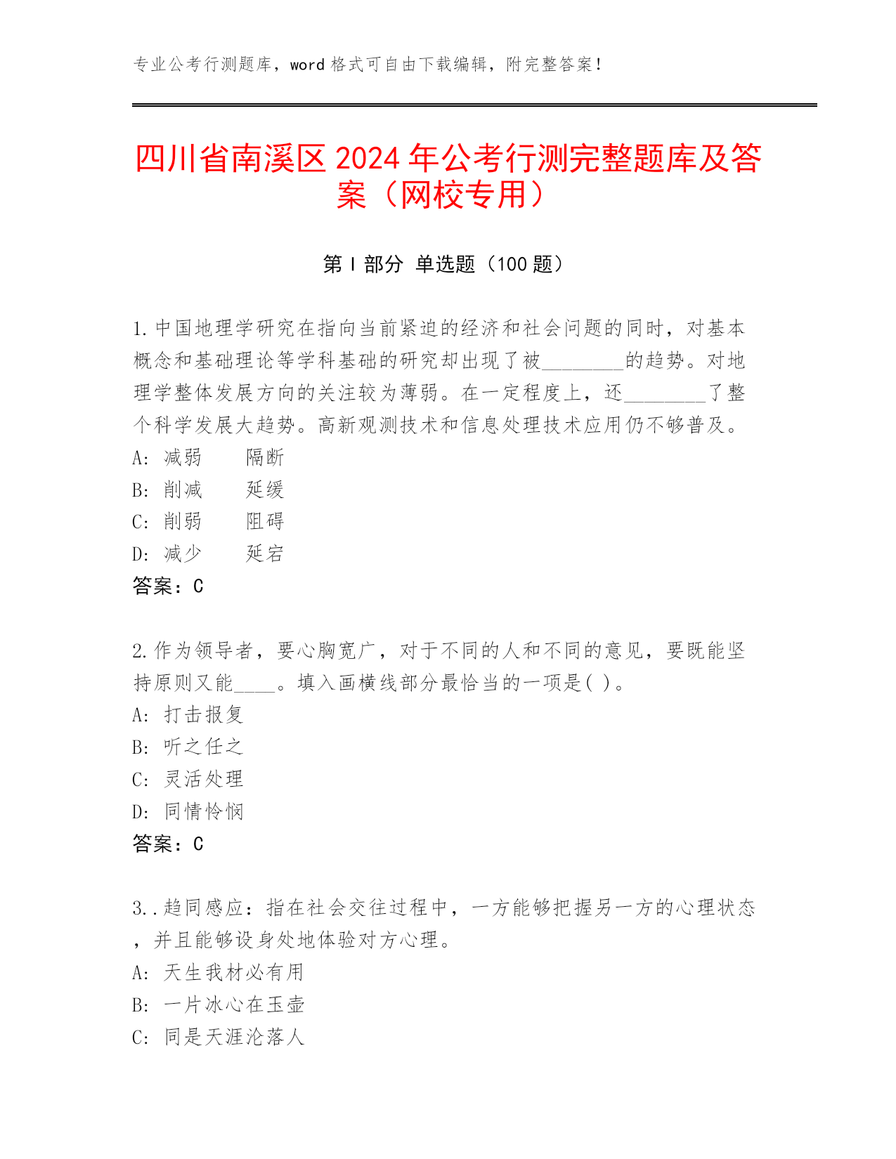 四川省南溪区2024年公考行测完整题库及答案(网校专用).docx