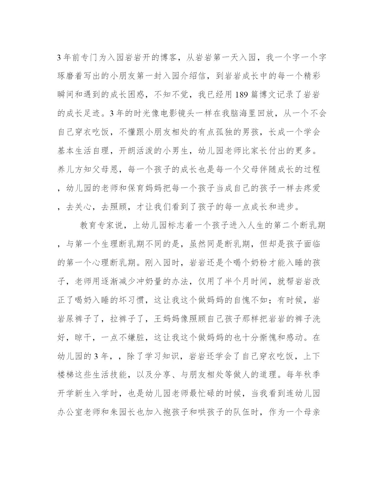 幼儿教育中家长对幼儿园的毕业感言(优秀19篇)