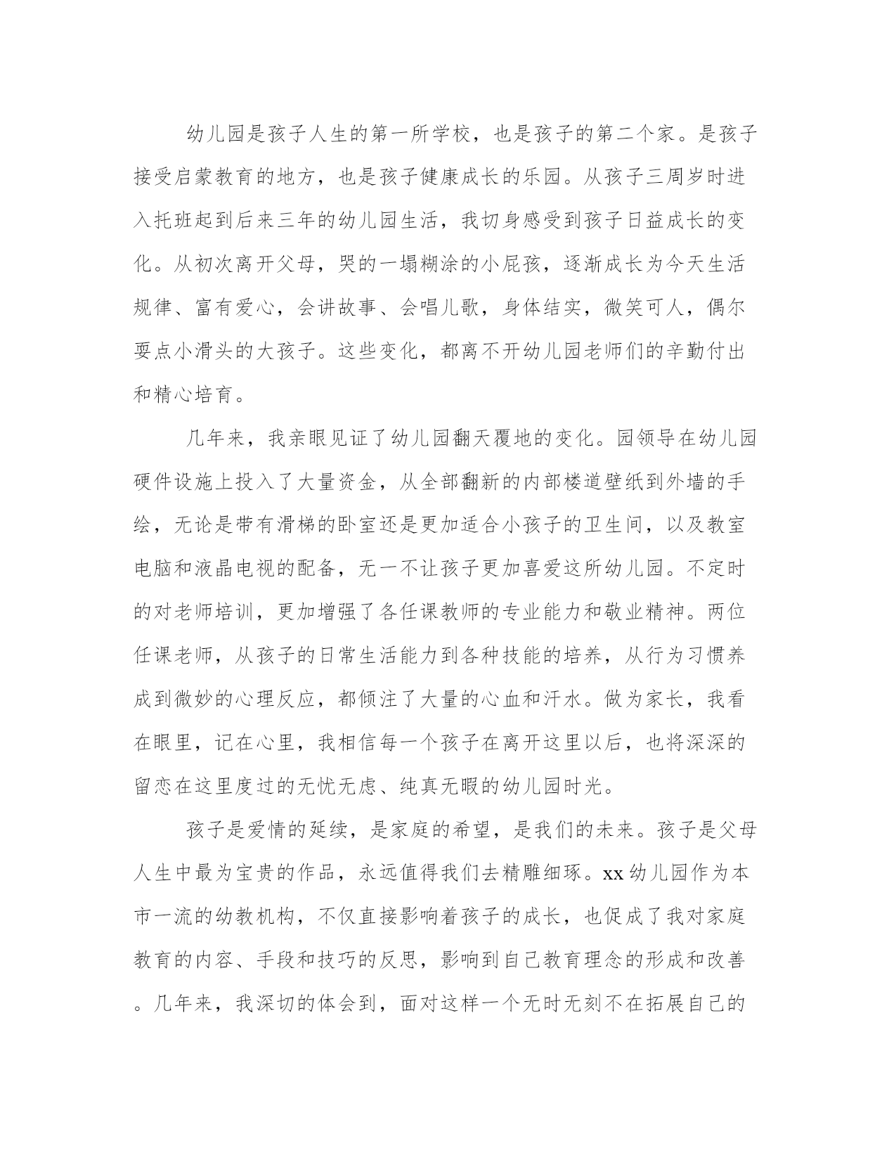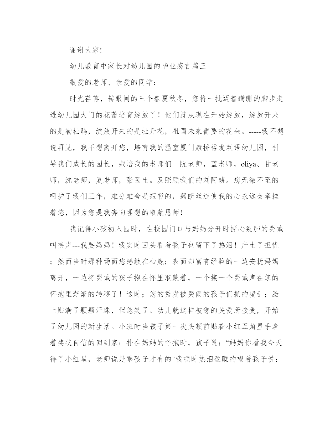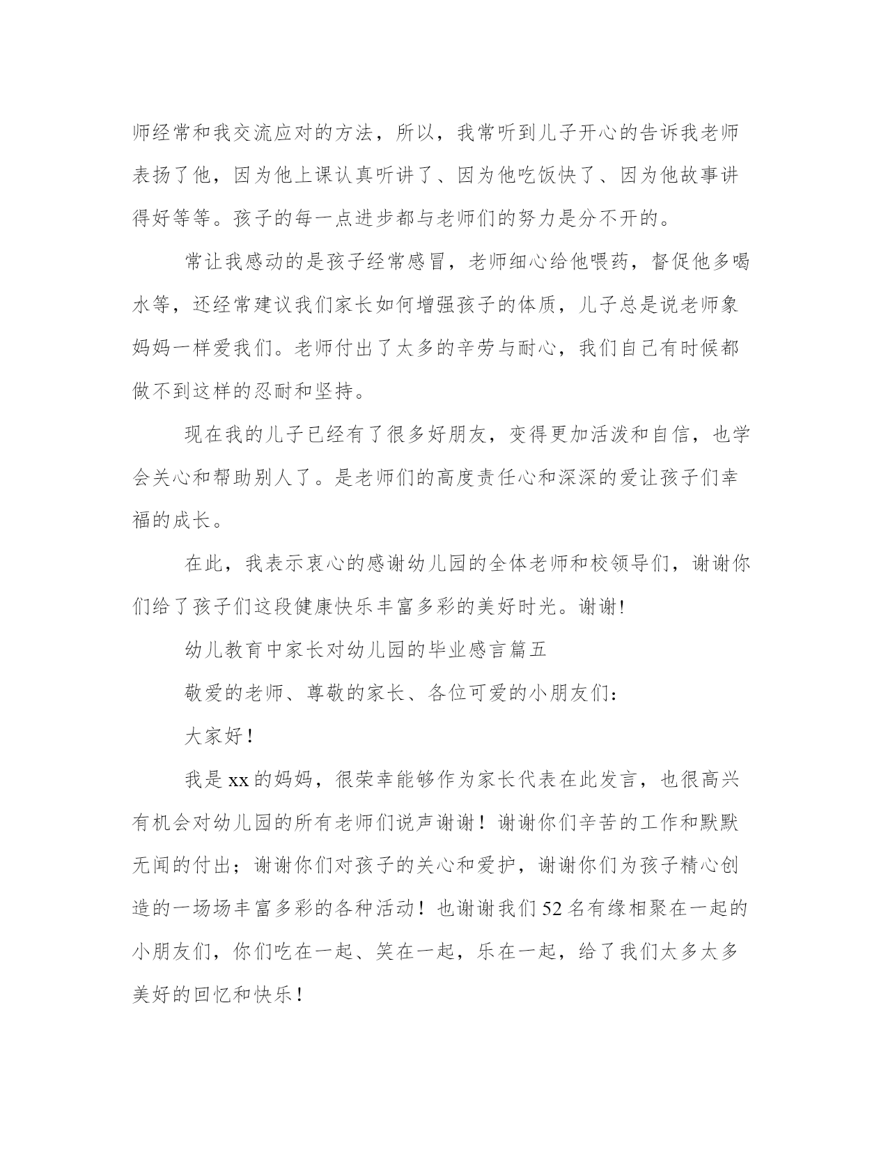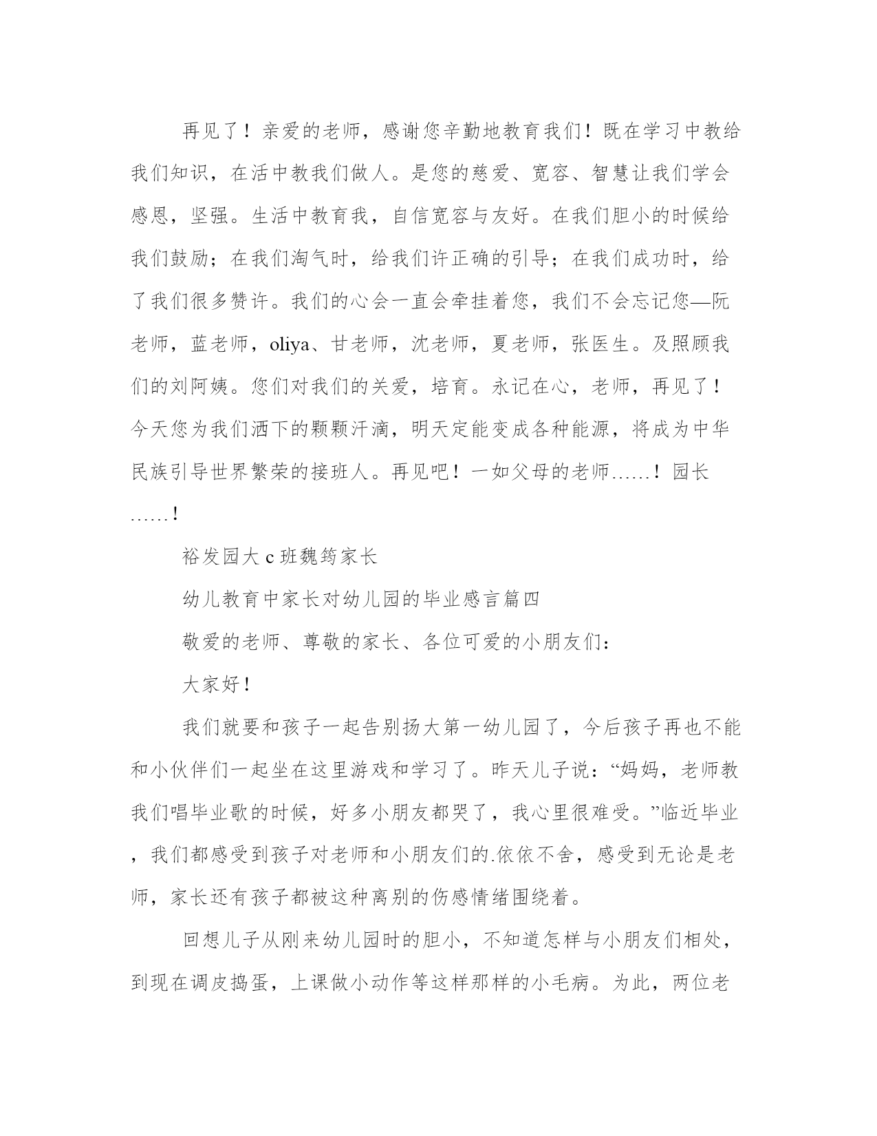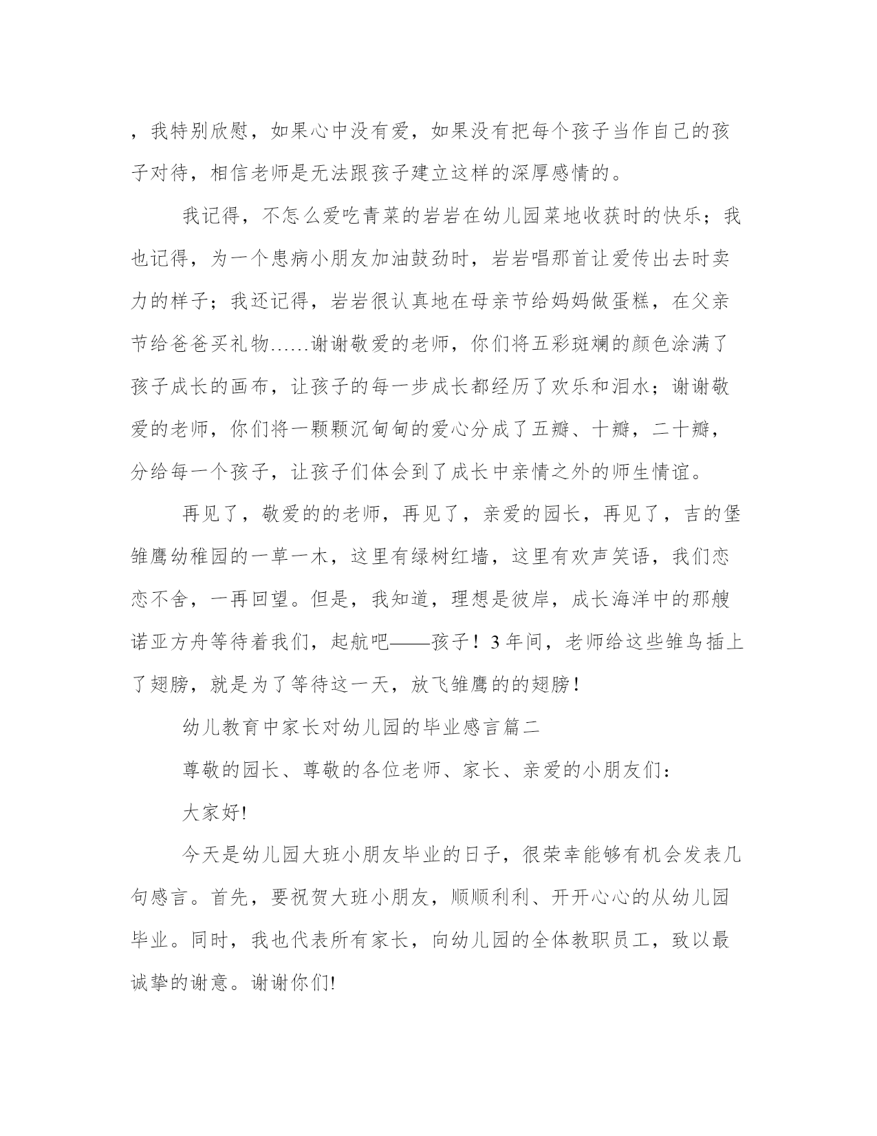 幼儿教育中家长对幼儿园的毕业感言(优秀19篇).docx