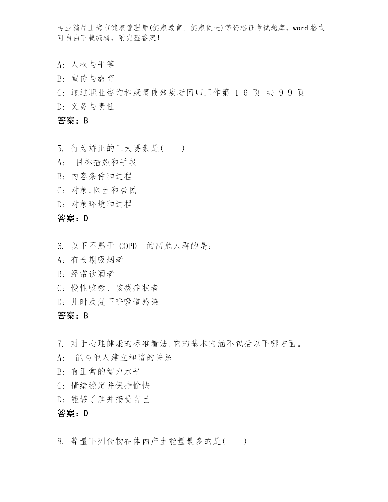 完整版上海市健康管理师(健康教育、健康促进)等资格证考试大全(完整版)