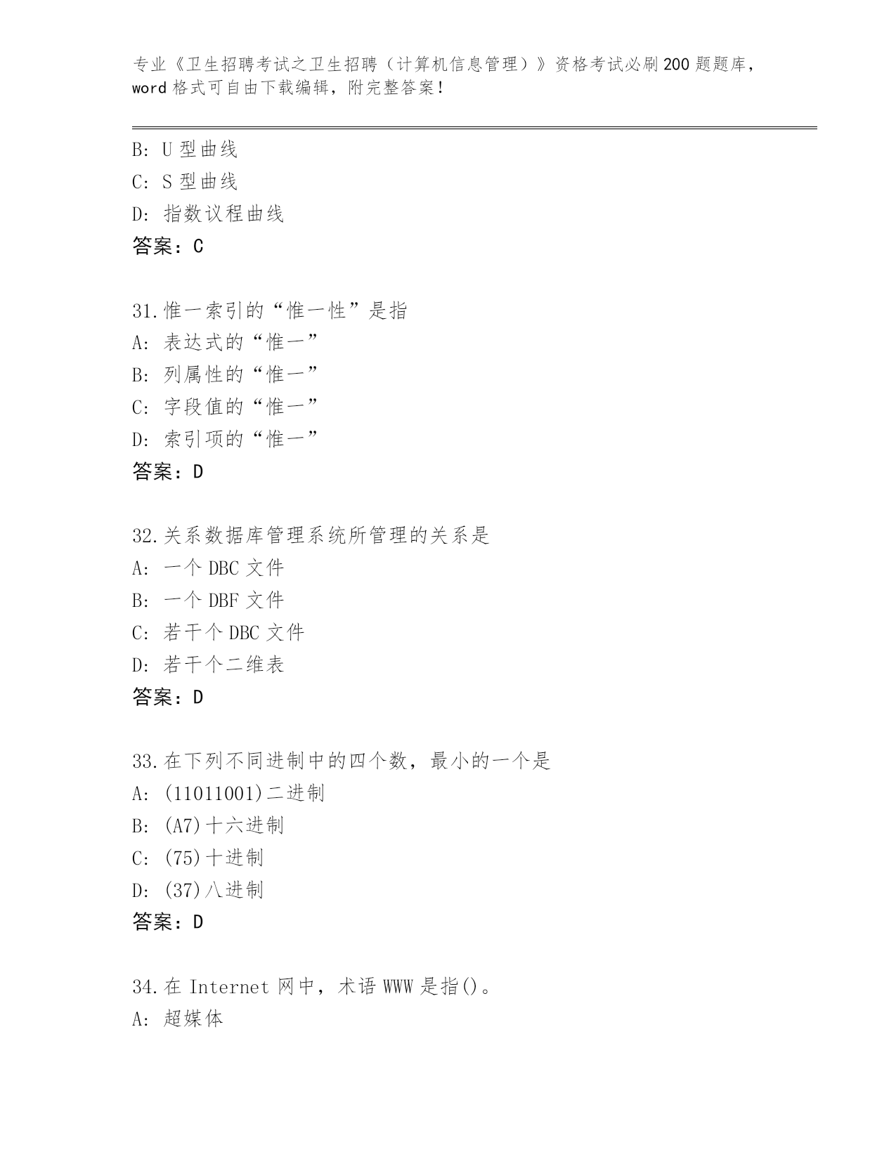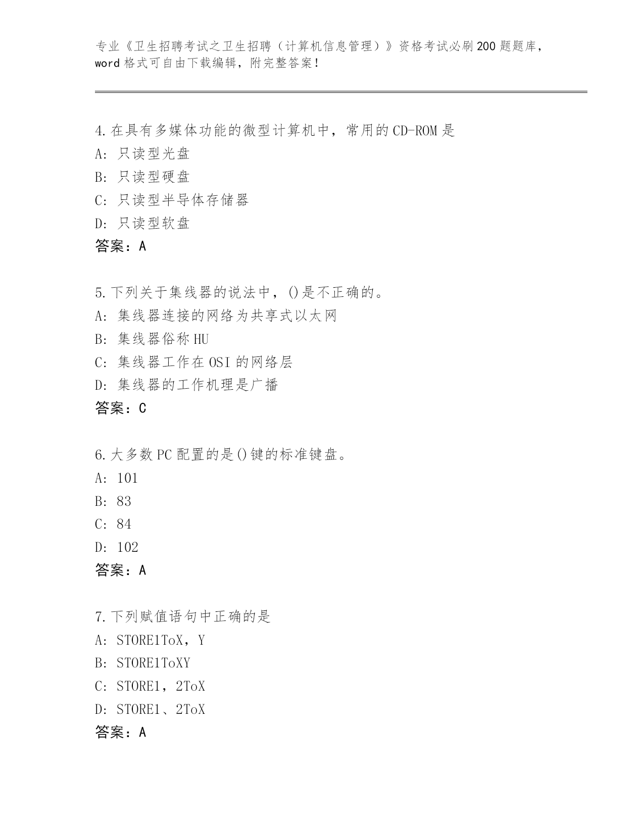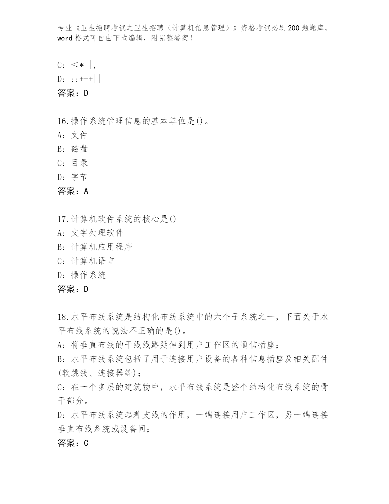 湖南省平江县《卫生招聘考试之卫生招聘(计算机信息管理)》资格考试必刷200题大全有答案解析