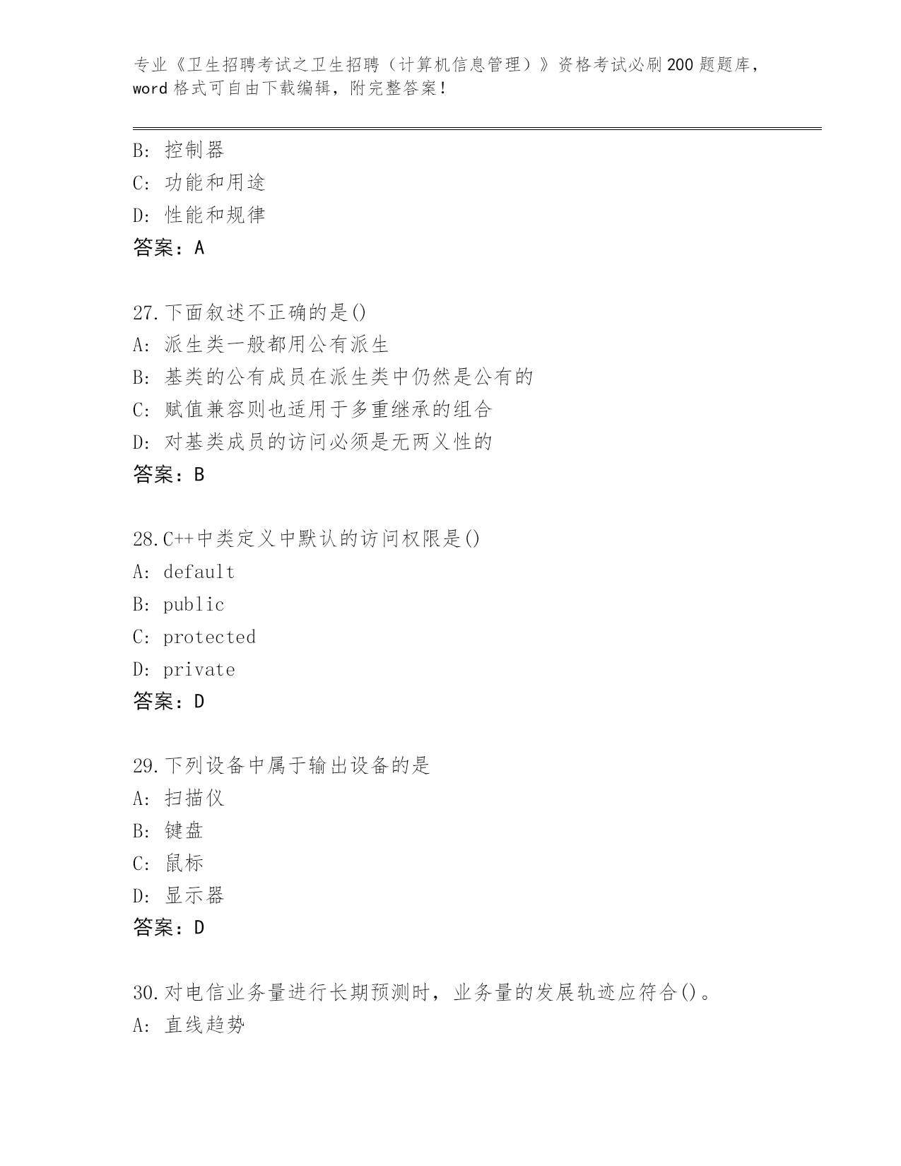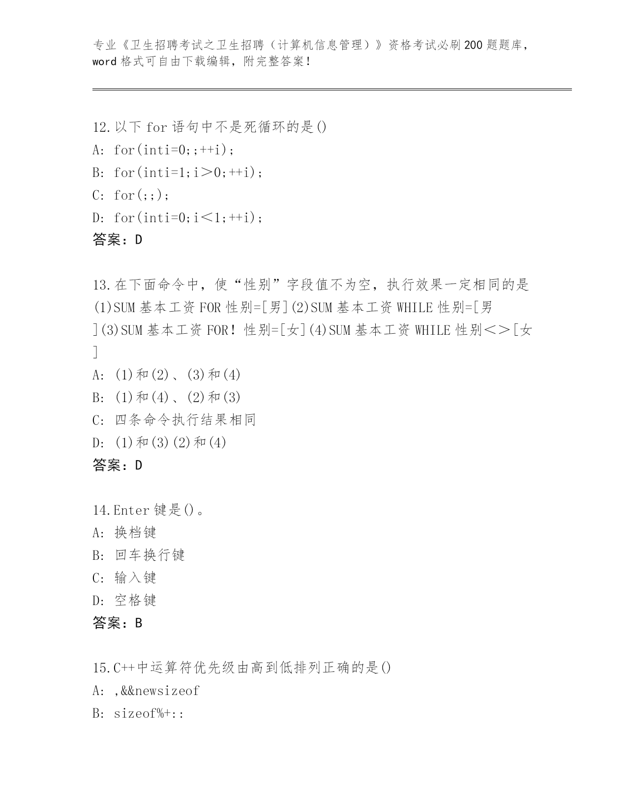 2024年湖南省《卫生招聘考试之卫生招聘(计算机信息管理)》资格考试必刷200题题库加答案解析