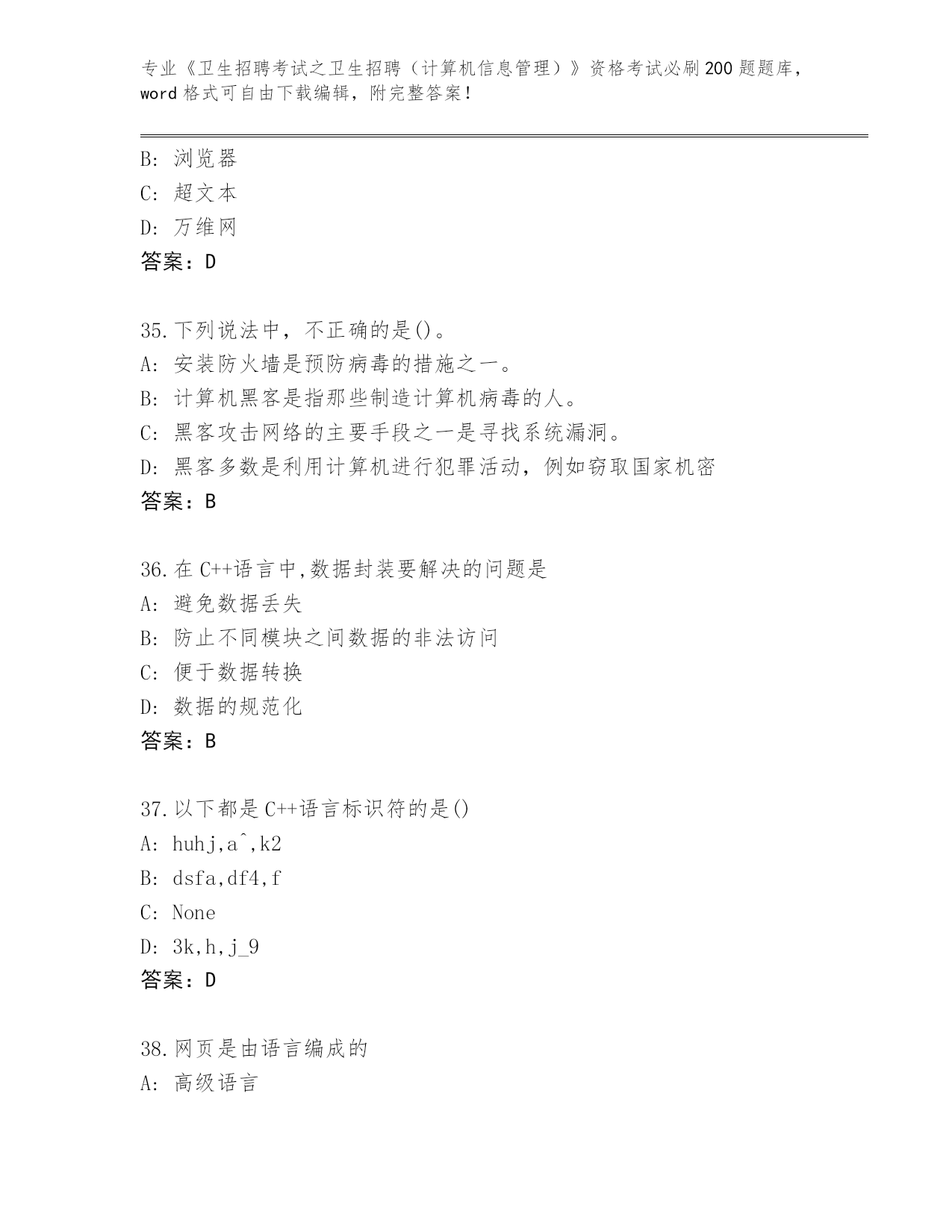 湖南省2024年《卫生招聘考试之卫生招聘(计算机信息管理)》考试必刷200题内部题库加答案解析