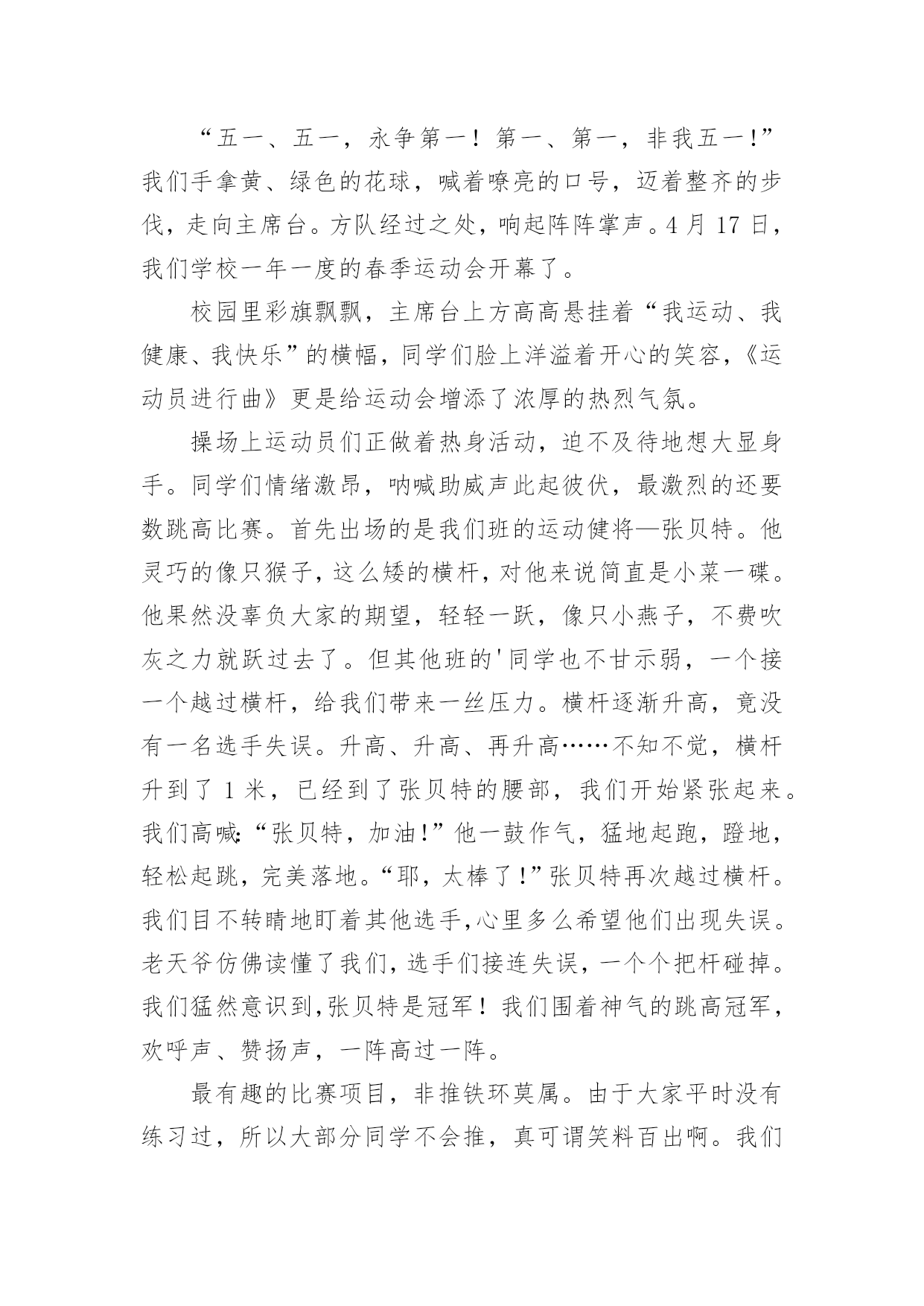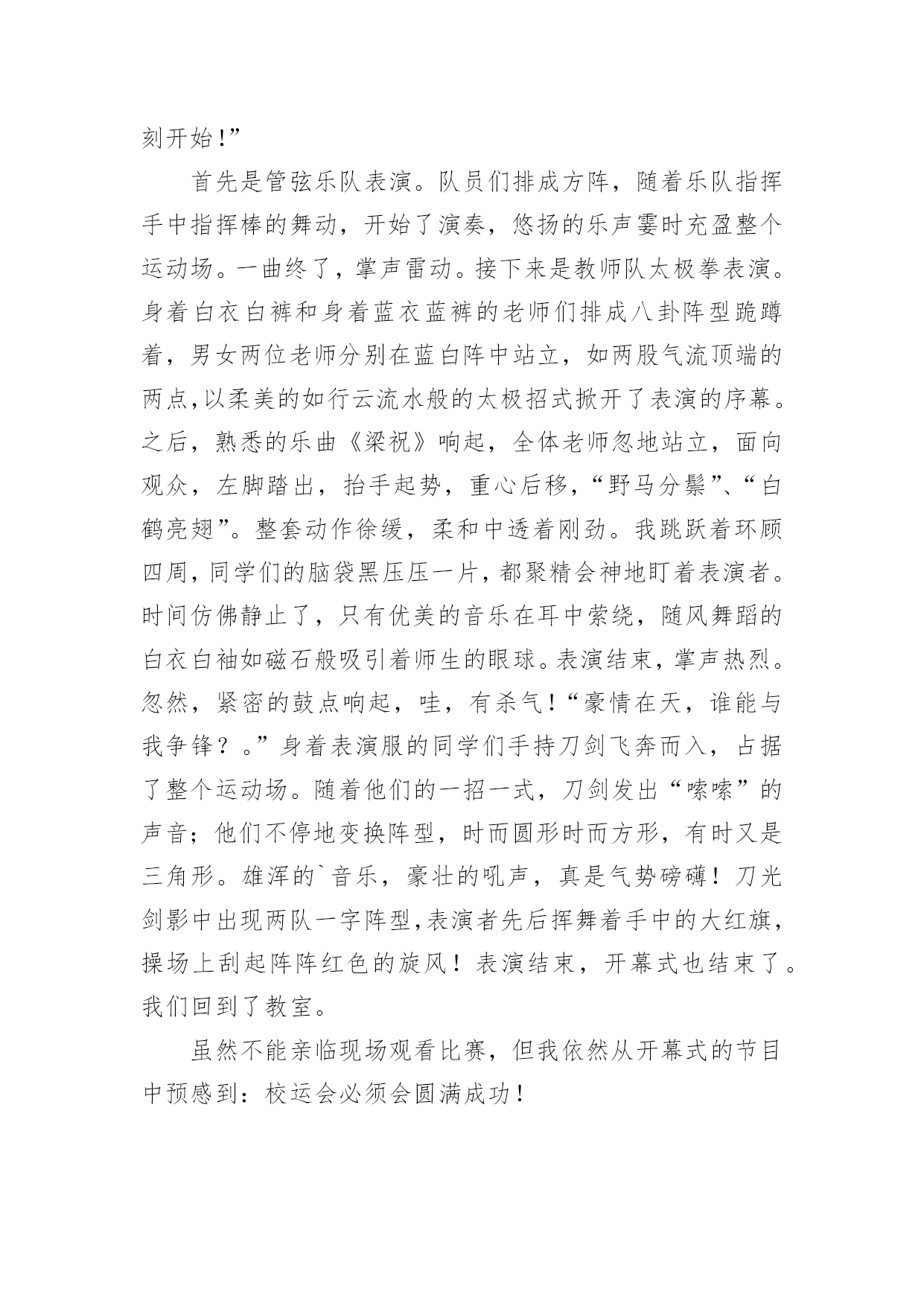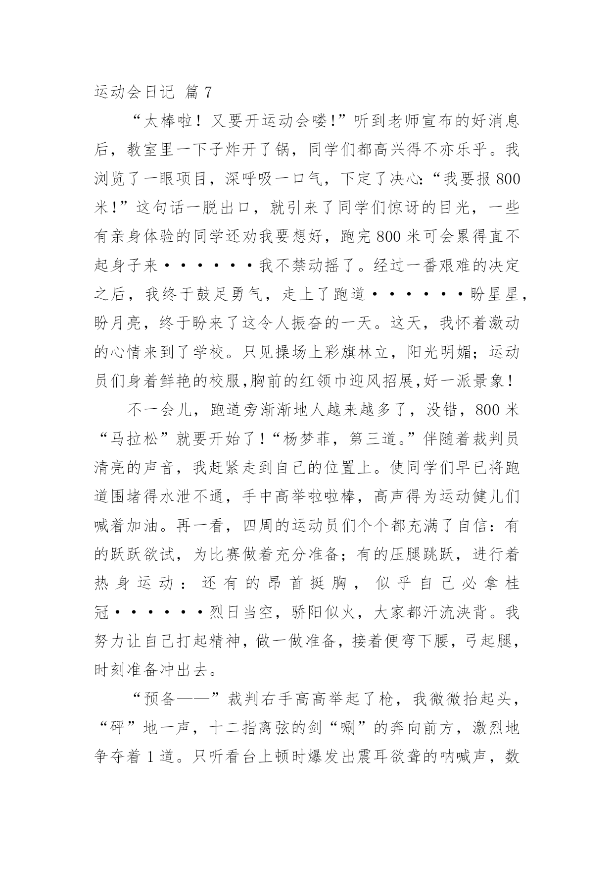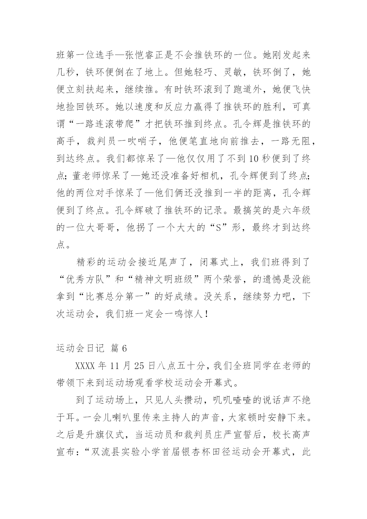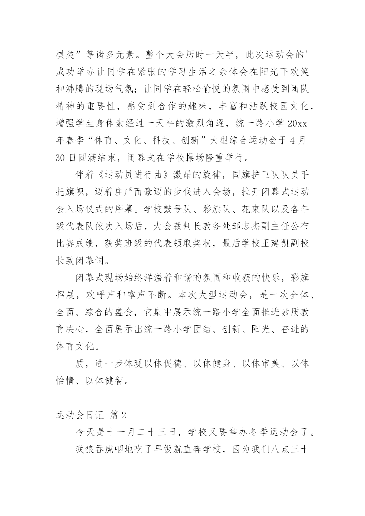 运动会日记[合集]运动会日记一天又结束了,相信你一定有很多值得分享的经验,这时候,最关键的日记怎么能落下。快来参考日记是怎么写的吧,以下是小编为大家整理的运动会日记9篇,仅供参考,大家一起来看看吧。运动会日记篇1这是一个阳光明媚的日子,这是一个学生期盼已久的日子。4月29日上午,统一路小学的同学们呼吸着湿润而清新的空气,沐浴着和煦而温暖的阳光,精神抖擞地走进赛场,学校20xx年春季“体育、文化、科技、创新”大型综合运动会竞技类比赛擂响战鼓,鸣锣开赛。随着“啪”的一声清脆的发令枪声,两人三足、诗句连线、百米接力、障碍赛跑等集竞技性、趣味性于一体的比赛项目,井然有序的开始。操场上到处能看到你追我赶的竞技场面,到处洋溢着参赛选手们发自内心的欢笑。赛场内,一幅幅画面,一个个镜头,都跳跃着统一学子们激情的脉搏,让人兴奋,令人激动。本次大型运动会,注重全体参与,号召全体师生积极参加,几乎100%的同学都是运动员,6大类44个小项的运动项目,融合“体育、文化、科技、创新、趣味、团体、协作、棋类”等诸多元素。整个大会历时一天半,此次运动会的'成功举办让同学在紧张的学习生活之余体会在阳光下欢笑和沸腾的现场气氛;让同学在轻松愉悦的氛围中感受到团队精神的重要性,感受到合作的趣味,丰富和活跃校园文化,增强学生身体素经过一天半的激烈角逐,统一路小学20xx年春季“体育、文化、科技、创新”大型综合运动会于4月30日圆满结束,闭幕式在学校操场隆重举行。伴着《运动员进行曲》激昂的旋律,国旗护卫队队员手托旗帜,迈着庄严而豪迈的步伐进入会场,拉开闭幕式运动会入场仪式的序幕。学校鼓号队、彩旗队、花束队以及各年级代表队依次入场后,大会裁判长教务处邹志杰副主任公布比赛成绩,获奖班级的代表领取奖状,最后学校王建凯副校长致闭幕词。闭幕式现场始终洋溢着和谐的氛围和收获的快乐,彩旗招展,欢呼声和掌声不断。本次大型运动会,是一次全体、全面、综合的盛会,它集中展示统一路小学全面推进素质教育决心,全面展示出统一路小学团结、创新、阳光、奋进的体育文化。质,进一步体现以体促德、以体健身、以体审美、以体怡情、以体健智。运动会日记篇2今天是十一月二十三日,学校又要举办冬季运动会了。我狼吞虎咽地吃了早饭就直奔学校,因为我们八点三十分要进行跳绳比赛。我来到学校,发现比赛还没有开始,连忙做起了热身运动。不一会儿,比赛开始了。我们走到了比赛场地,随着一声“开始”,我们跳起了绳。我边跳边数:“一、二、三……”差点把我的'头都数晕了。屈欣雨跳得最多,只见她的绳甩得团团转,像一个轮子围着她转圈。接力赛又开始了。随着一声哨响,黄韦像箭一样冲了出去。紧跟着一个接一个,大家都跑得很快。有个叫徐云云的同学,虽然她个子很小却跑得像兔子一样快。她一不小心摔了一跤,可她不管退有多疼,身上粘有多少泥土,依然飞快的跑完了全程。最后是拔河比赛。我们使出了全身力气去拔。在我们快没力气时,啦啦队大喊:“三四班加油!三四班加油!”我们顿时来了劲,在啦啦队的鼓励下,我们终于拔赢了。通过这次运动会,我懂得了一个道理:团结就是力量!运动会日记篇3在这秋高气爽、金桂飘香的季节,我校举办了第十五届运动会,这是我们进入洞山中学后的.第一次运动会。为了这次运动会,我们班还专门捐钱给运动员们买水和巧克力,所有的同学都积极响应,就连老师也不例外,还有人专门从家里带了一桶纯净水来。运动会日记篇4一年一度的校园运动会开始了,我们都来参加了。有跳高,跳远,接力赛……其中,我最爱看的就是拔河比赛了,真羡慕那些能参加拔河比赛的队员啊!上场时,他们迈着矫健的步伐走到了操场前,快速的分好队,大家都拿好了麻绳,麻绳中间的红领巾,忽左忽右,远远的,就像一面旗帜。可惜拔河比赛就只有六年级的哥哥姐姐才能参加。比赛开始了,赛场上鸦雀无声,现在是最激烈的时候,是两个团队的比拼——1班和3班的终极较量!他们的眼睛死死的盯住麻绳上的红领巾,嘴唇咬得紧紧的,就像一只快要饿死的野狼盯上了一只和鹿群走散的小鹿一样。他们每一秒都准备着往后退的姿势,正当我看得入迷时,“砰”的一声,发令枪响了,随着一股青烟缓缓升空,队员们紧闭的.双眼猛地睁开,拉着麻绳便使劲儿往后拽,前脚掌也离开了地面,各班的老师,周围的同学都不由自主的大喊:“加油,加油!”这种声音在周围此起彼伏。“快看,有一个班快赢了,另外一个班加把劲呀!”话声刚落,哨声响起了,他们放下了麻绳,仔细地看,生怕出一点差错。最后我看清了,是六年级一班获胜了,整个六年级一班的人都欢呼了起来,都发出了胜利的欢笑声。我真羡慕那些哥哥姐姐,等我上了六年级时,也一定要成为拔河比赛中的一员。运动会日记篇5“五一、五一,永争第一!第一、第一,非我五一!”我们手拿黄、绿色的花球,喊着嘹亮的口号,迈着整齐的步伐,走向主席台。方队经过之处,响起阵阵掌声。
