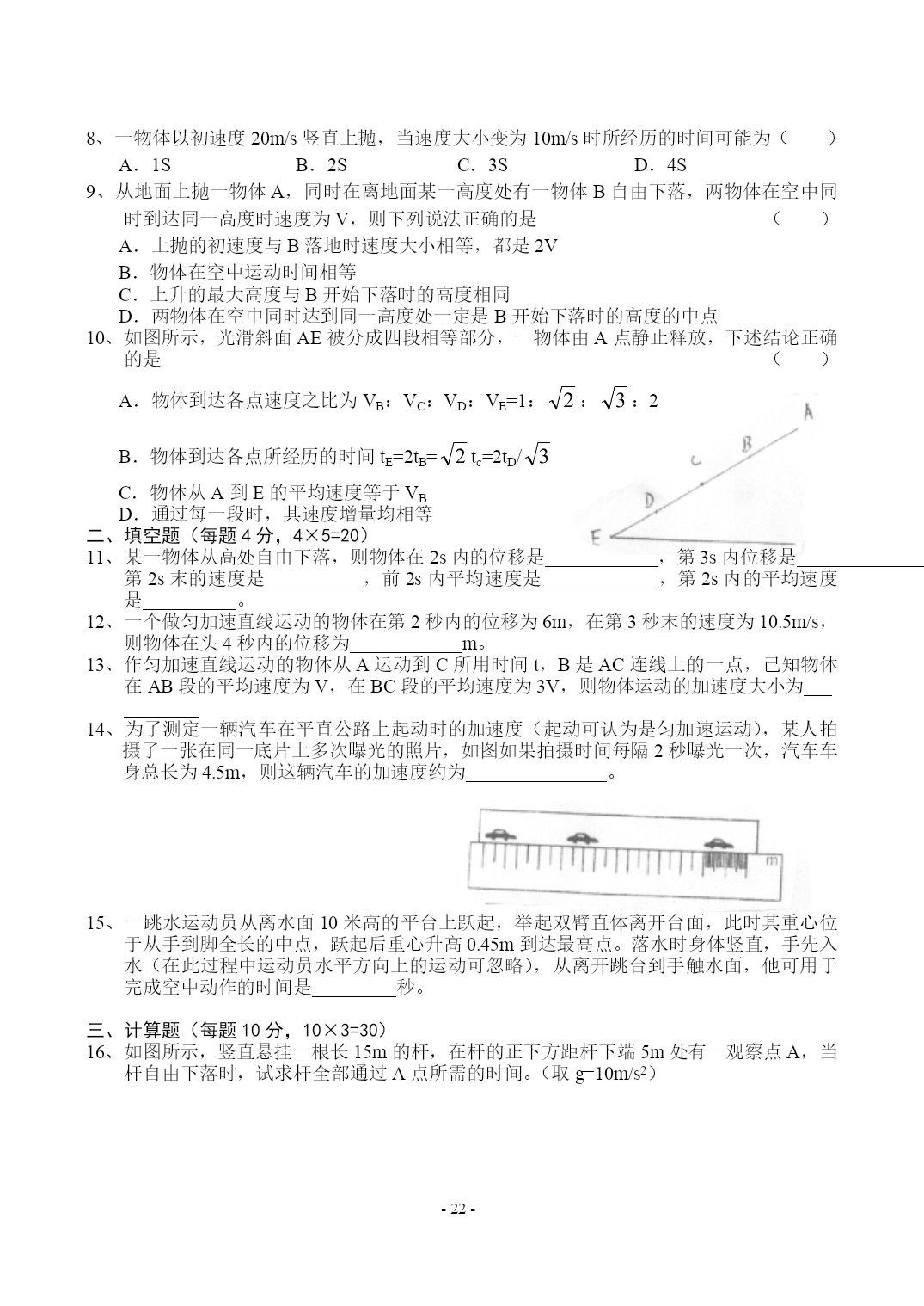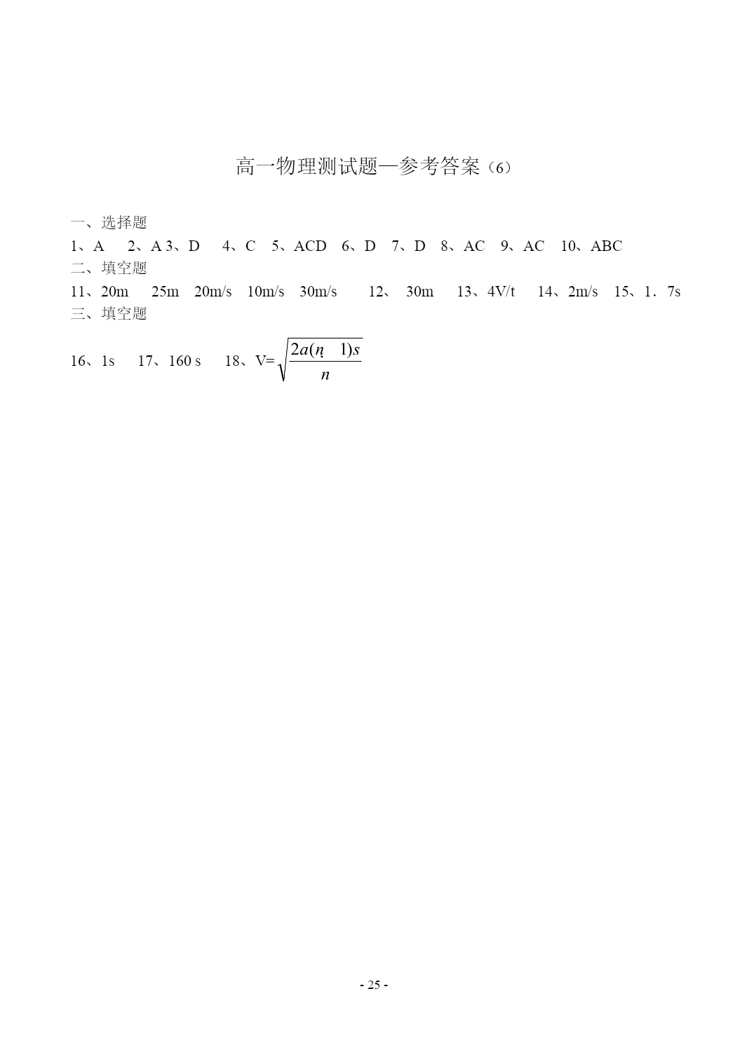 高一物理测试题—匀变速运动规律的应用运动(2—3)