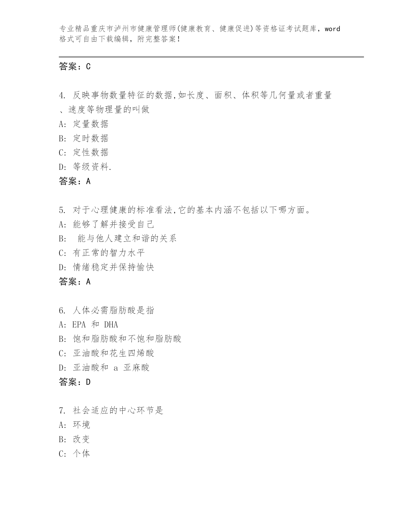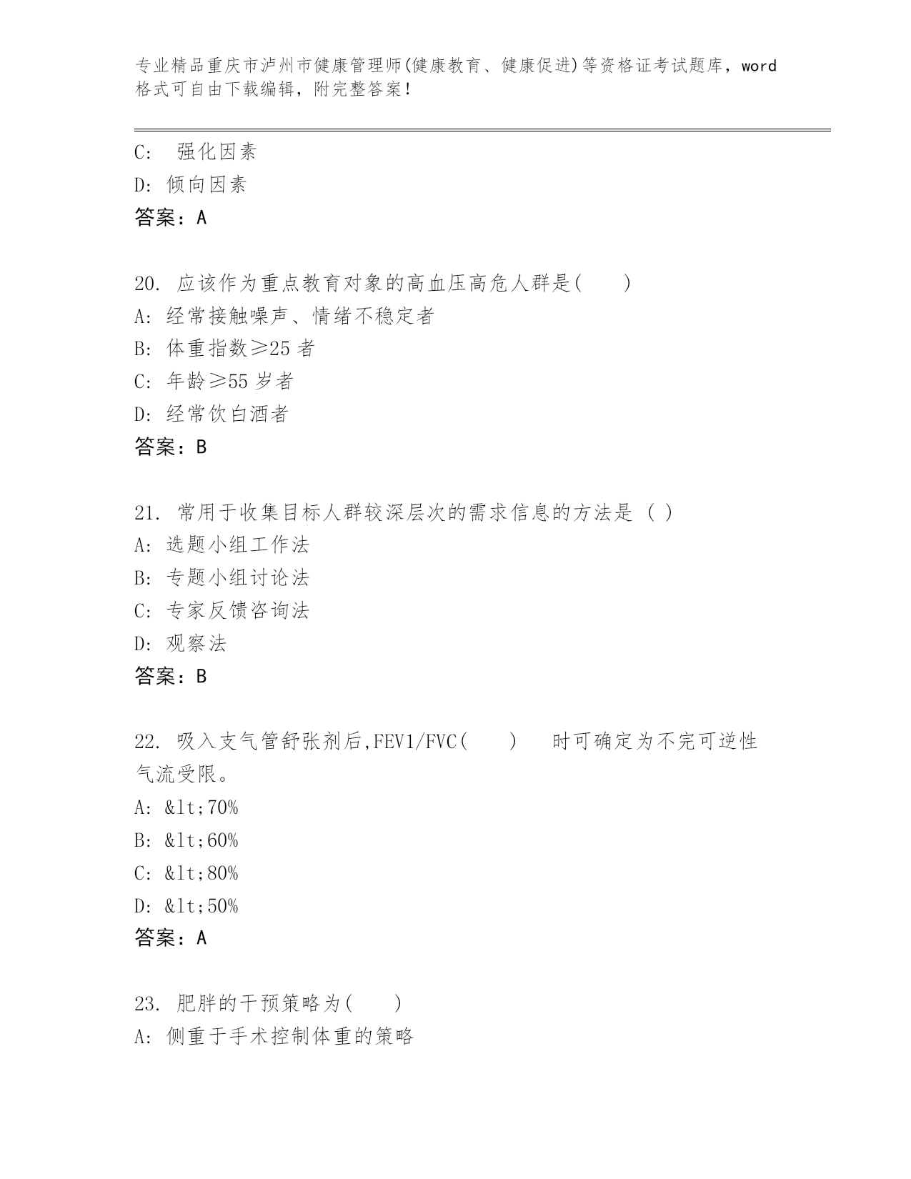 精心整理重庆市泸州市健康管理师(健康教育、健康促进)等资格证考试大全(预热题).docx
