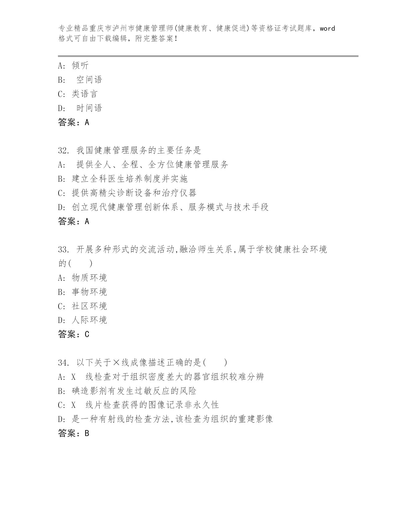 精心整理重庆市泸州市健康管理师(健康教育、健康促进)等资格证考试大全(预热题)