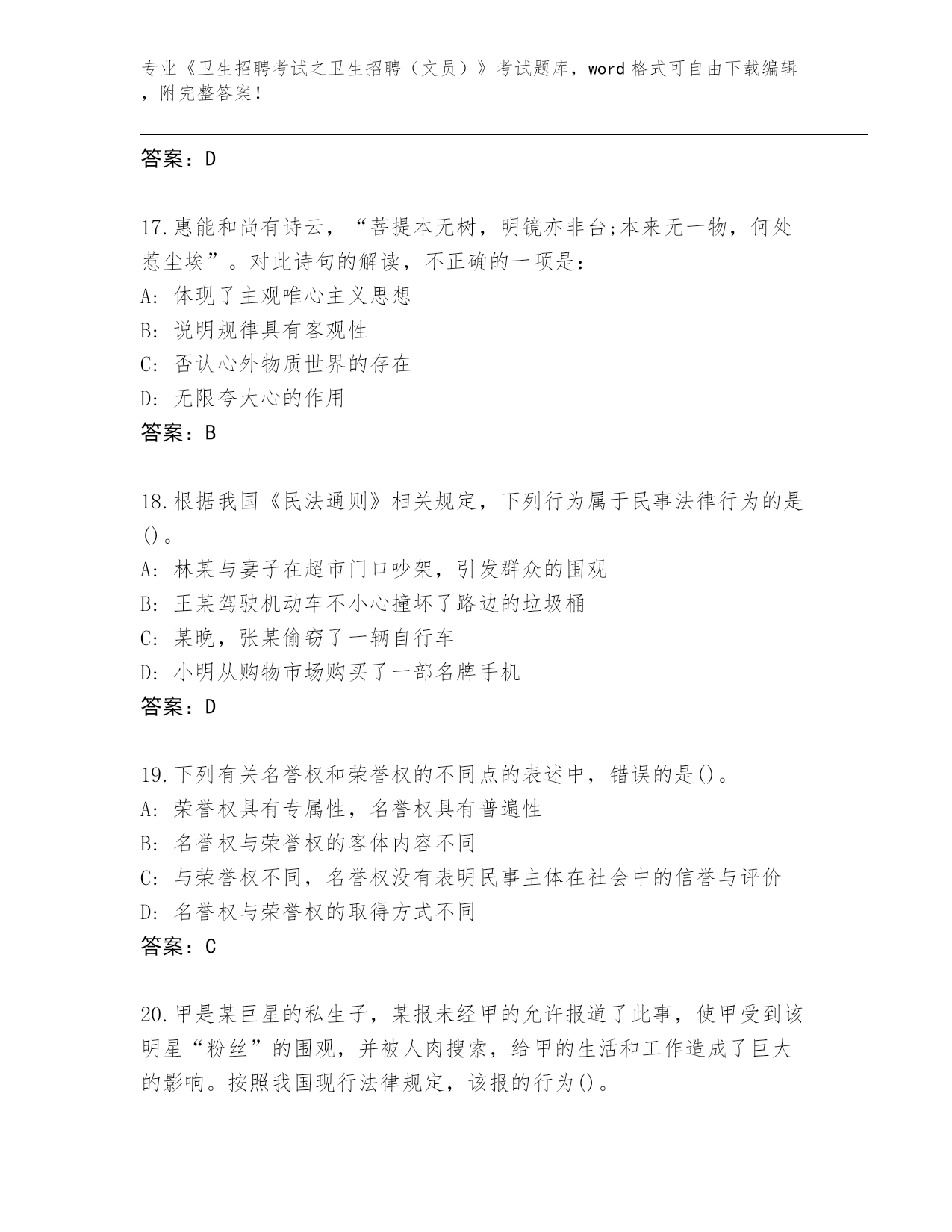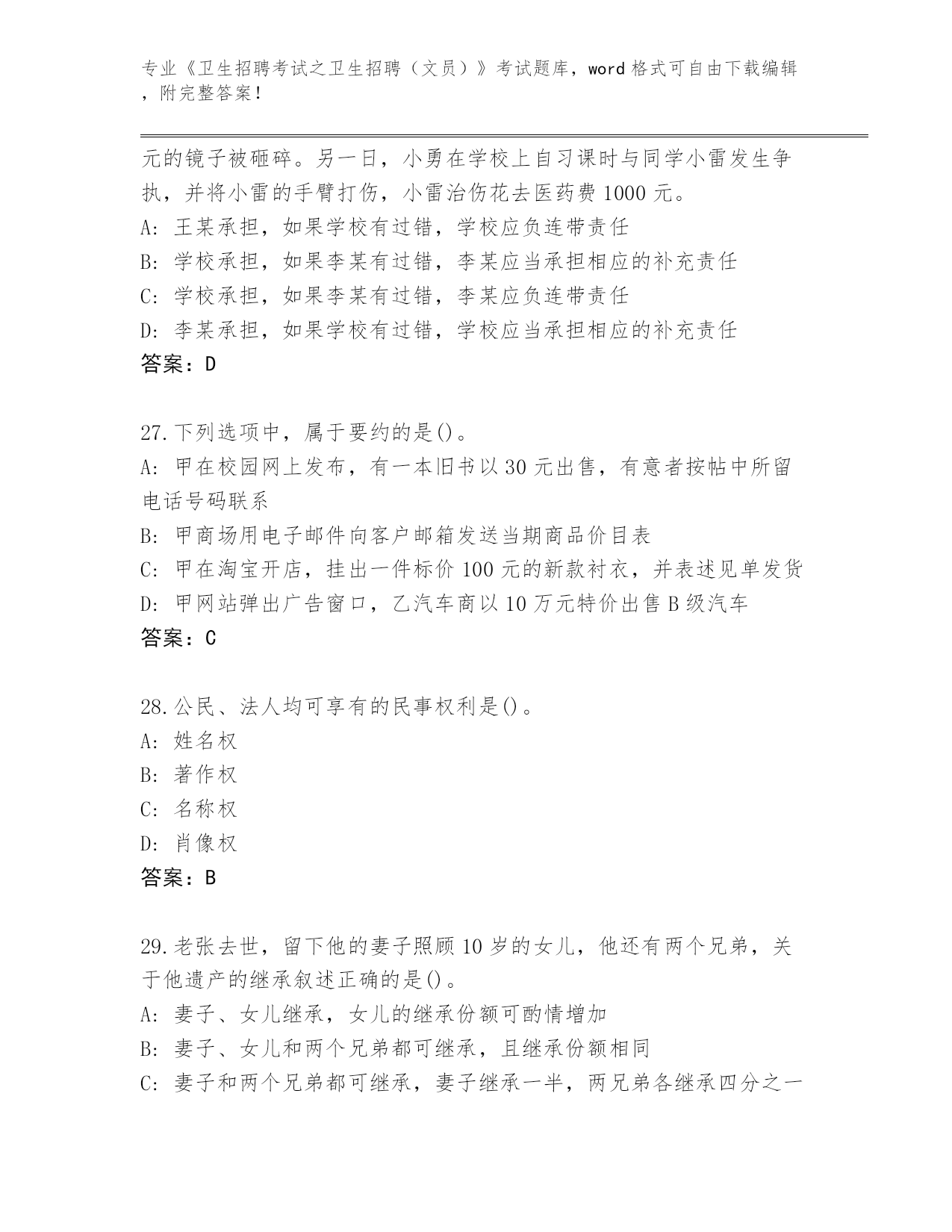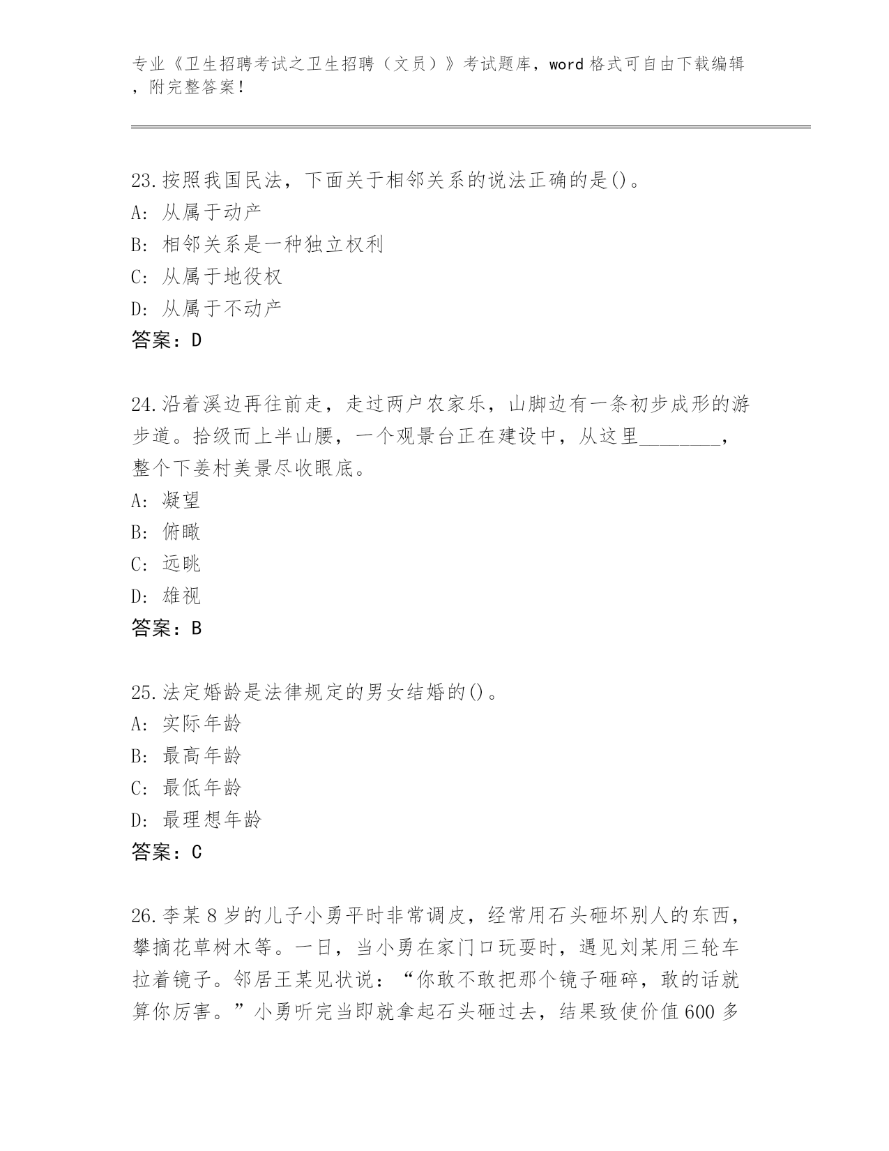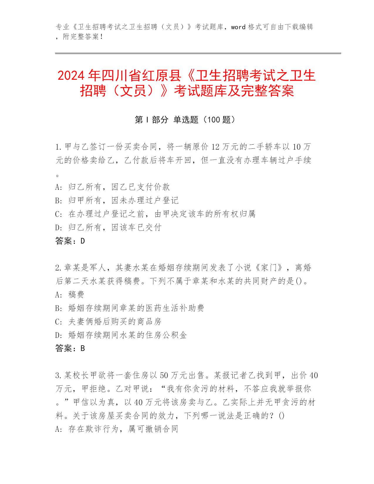 四川省红原县2024年《卫生招聘考试之卫生招聘(文员)》考试完整版及答案下载