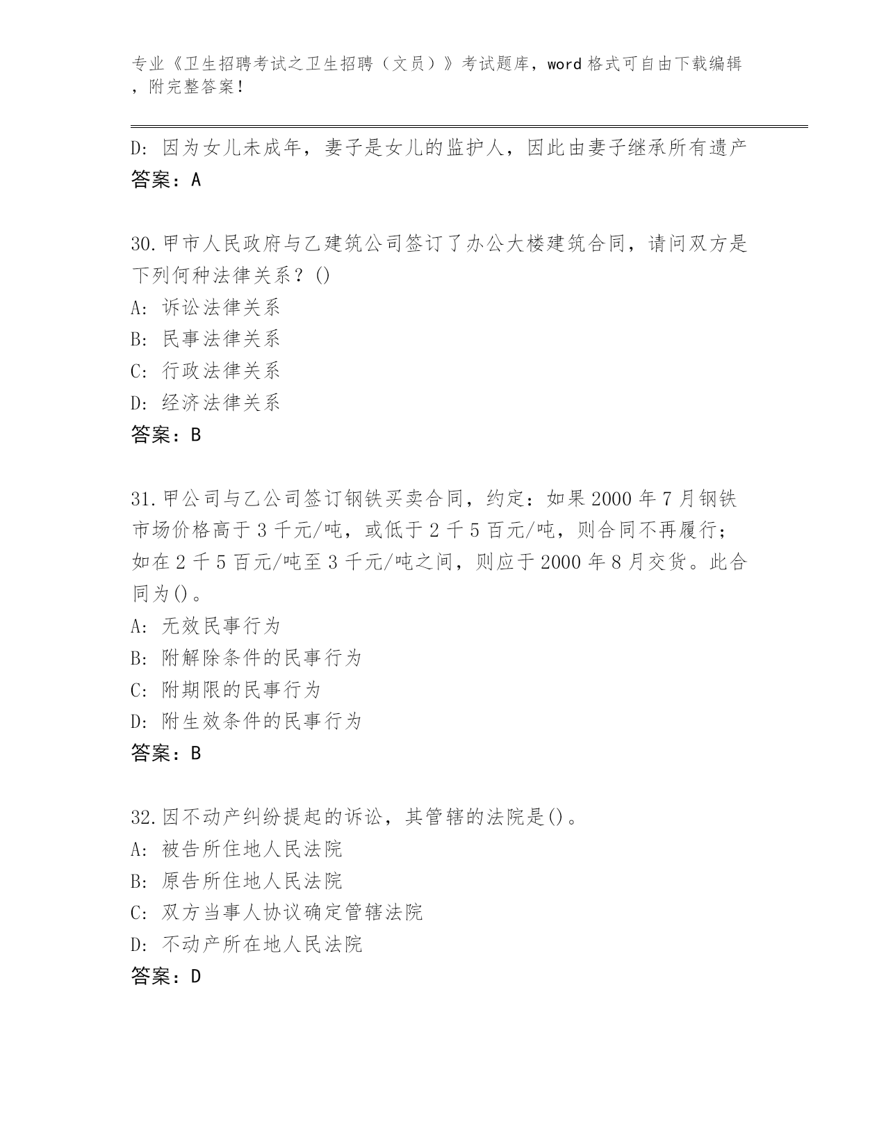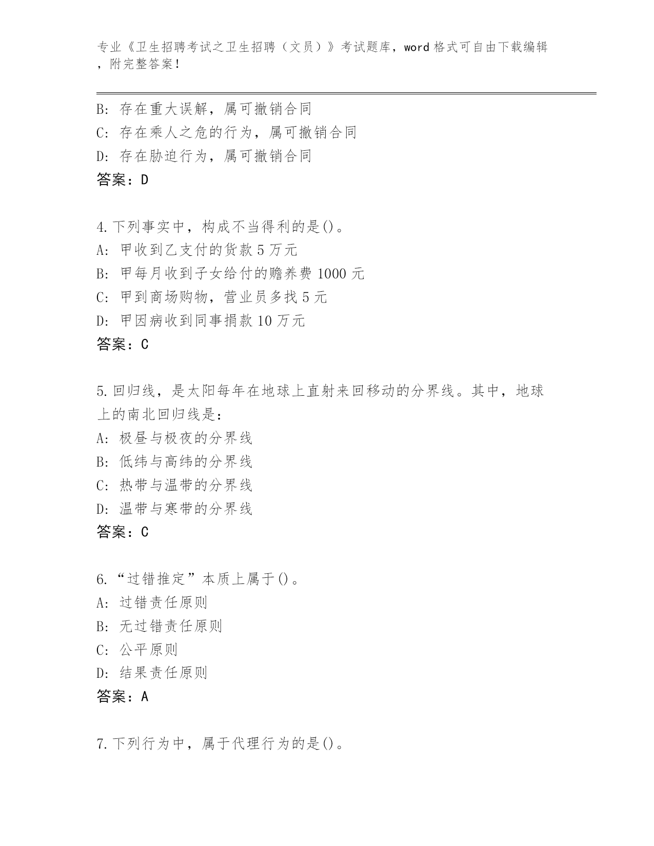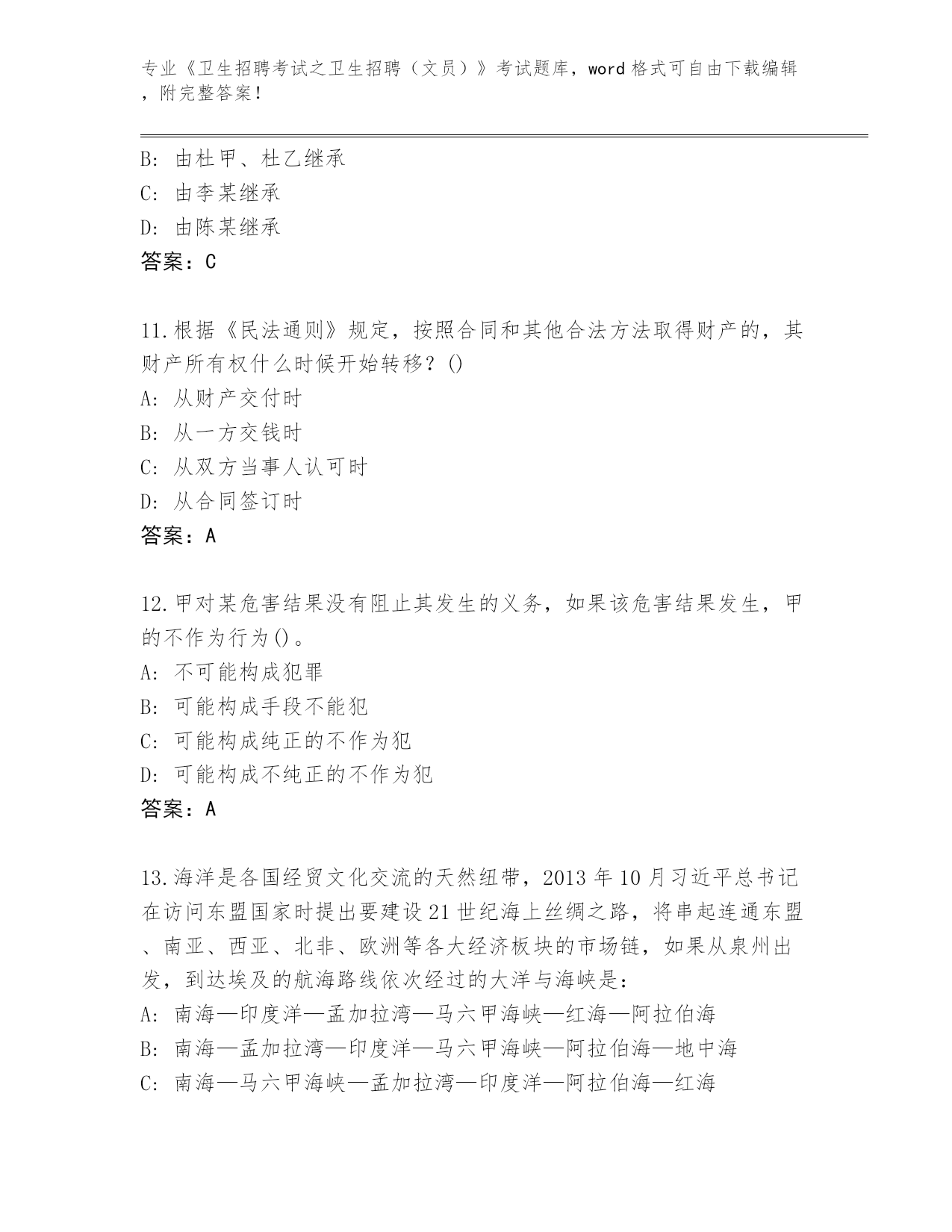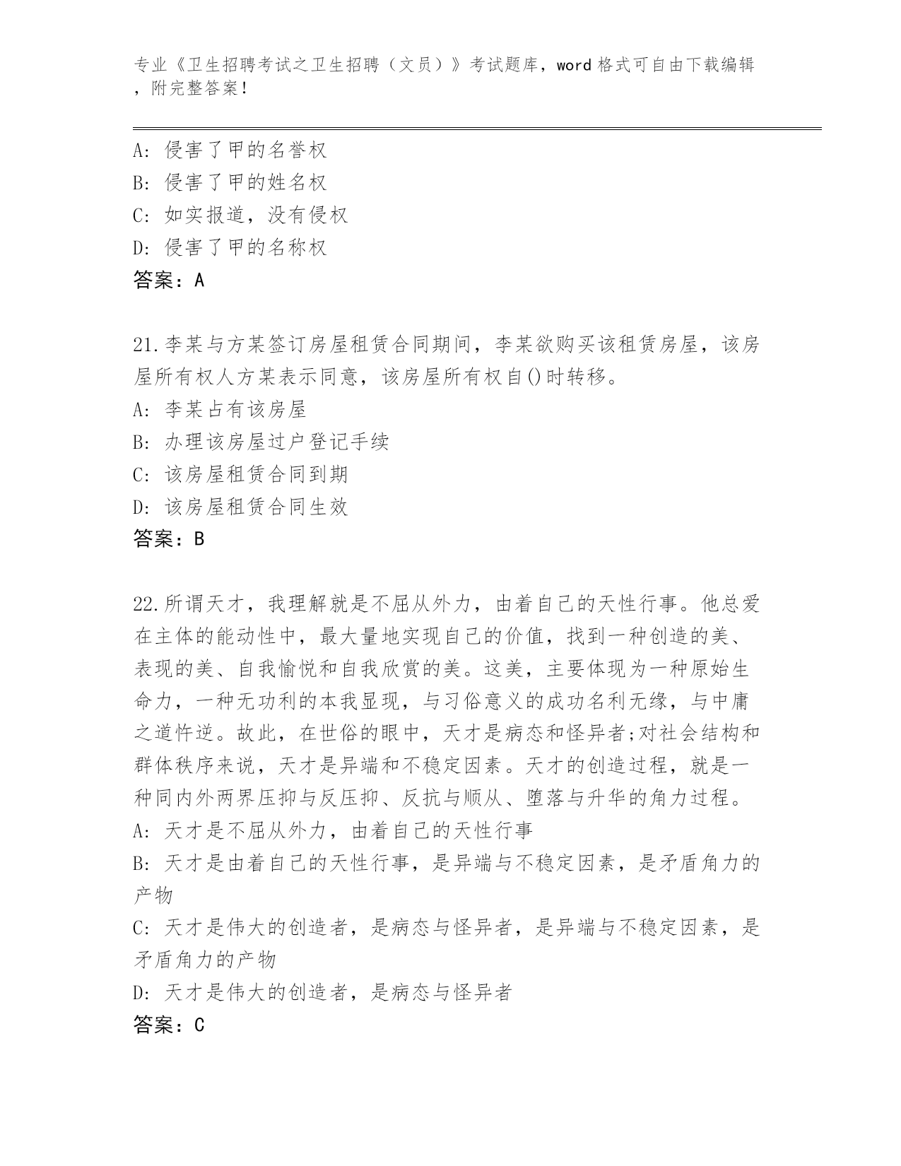 四川省红原县2024年《卫生招聘考试之卫生招聘(文员)》考试完整版及答案下载