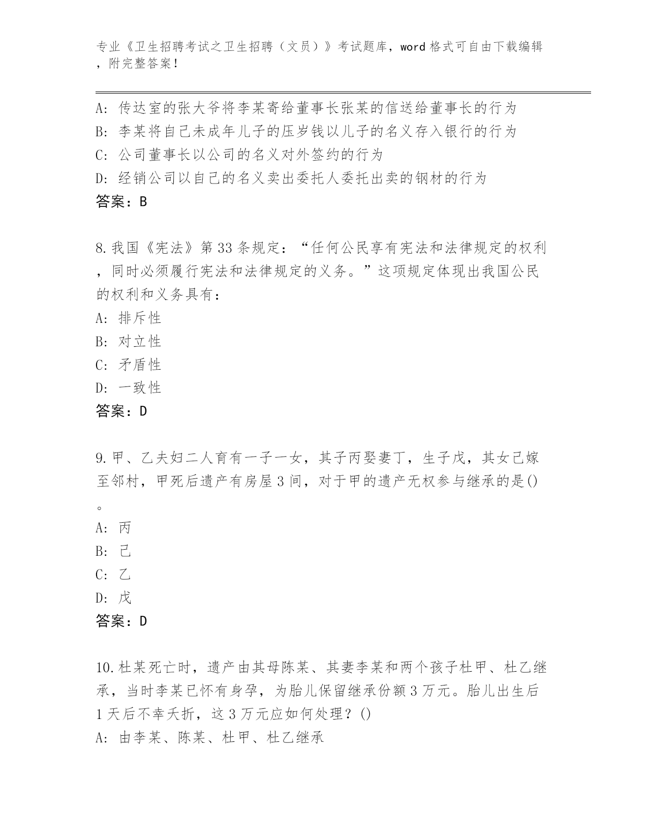 四川省渠县整理《卫生招聘考试之卫生招聘(文员)》考试完整题库及答案