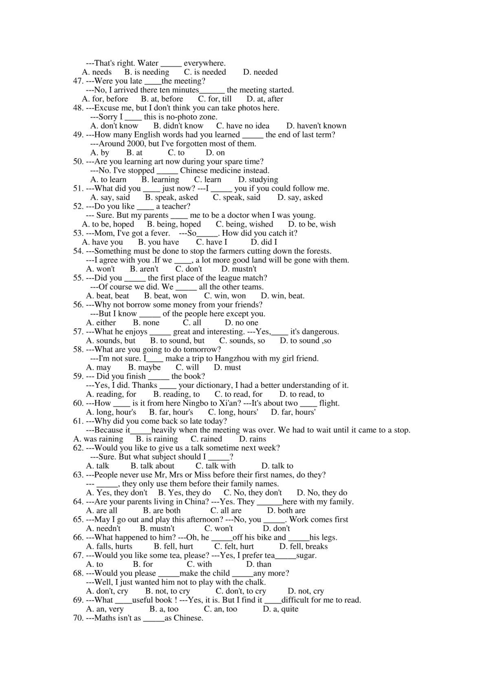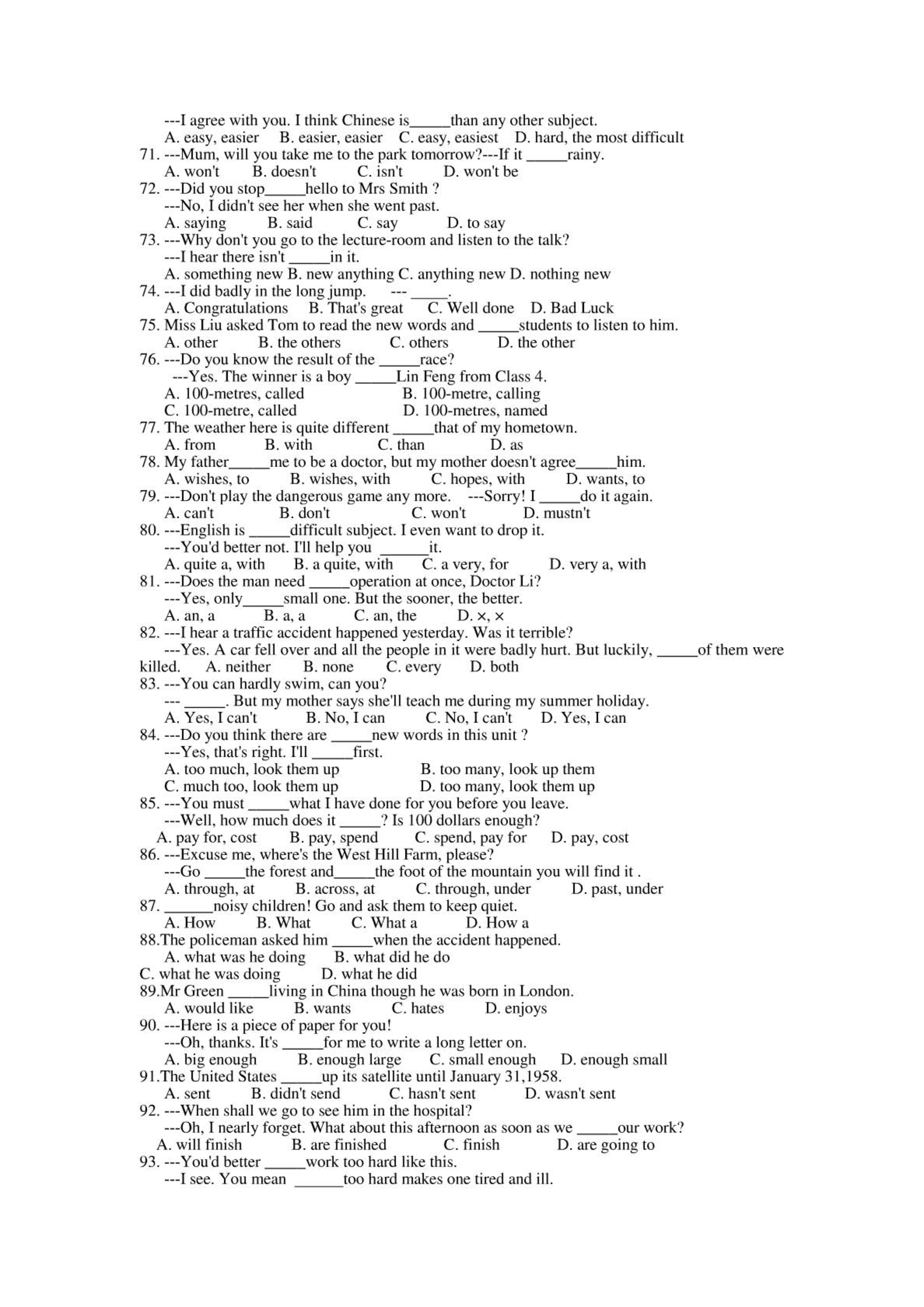 英语中考复习100题