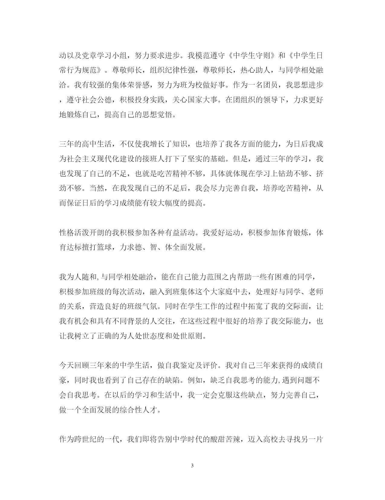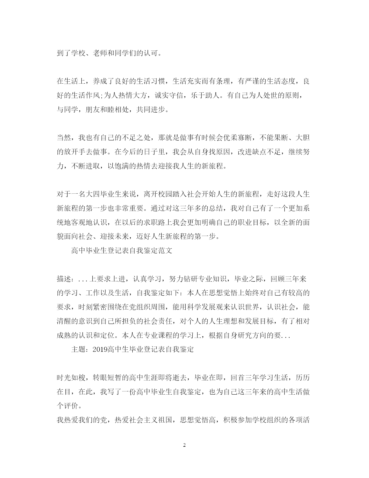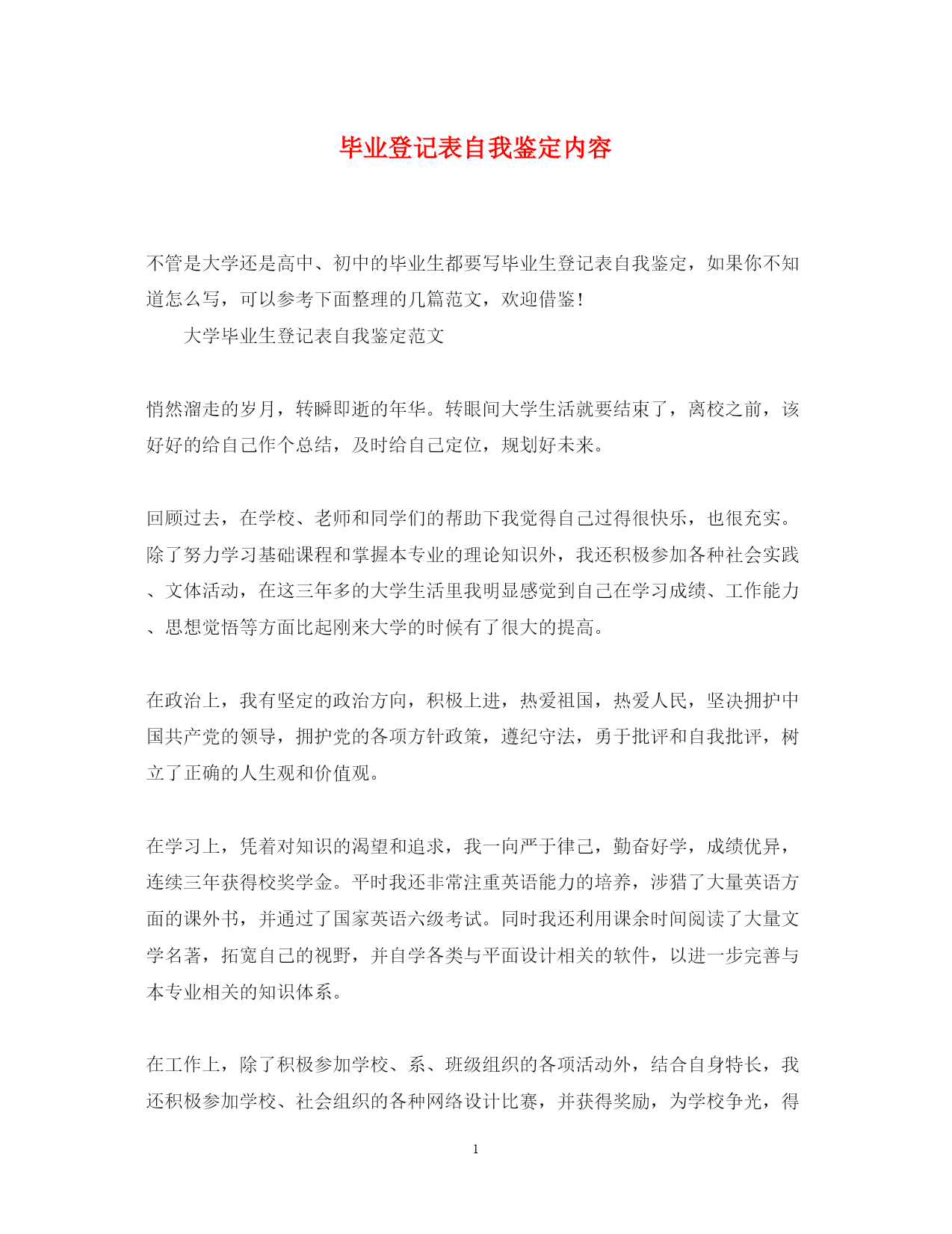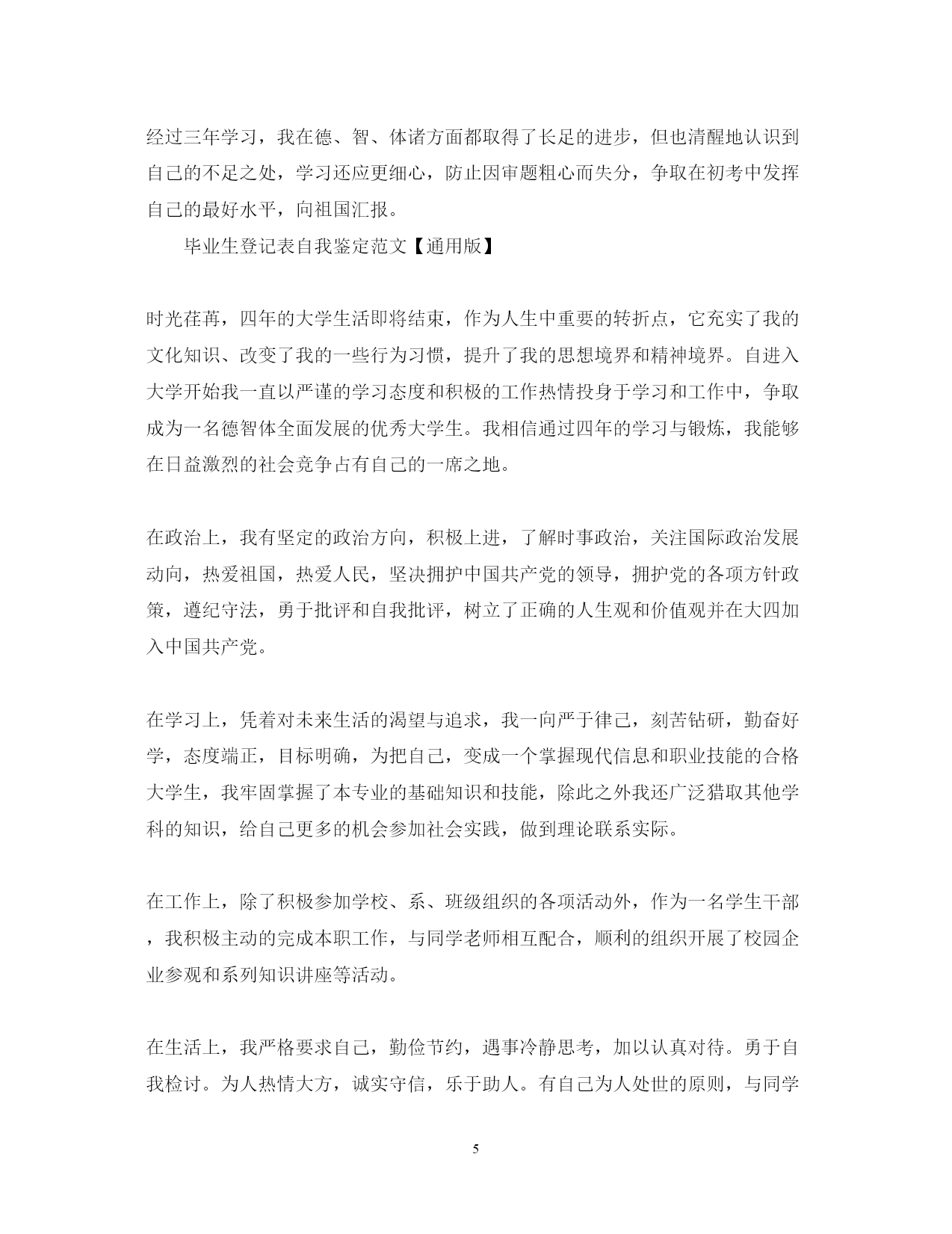 此资料由网络收集而来,如有侵权请告知上传者立即删除。资料共分享,我们负责传递知识。PAGEPAGE6毕业登记表自我鉴定内容不管是大学还是高中、初中的毕业生都要写毕业生登记表自我鉴定,如果你不知道怎么写,可以参考下面整理的几篇范文,欢迎借鉴!大学毕业生登记表自我鉴定范文悄然溜走的岁月,转瞬即逝的年华。转眼间大学生活就要结束了,离校之前,该好好的给自己作个总结,及时给自己定位,规划好未来。回顾过去,在学校、老师和同学们的帮助下我觉得自己过得很快乐,也很充实。除了努力学习基础课程和掌握本专业的理论知识外,我还积极参加各种社会实践、文体活动,在这三年多的大学生活里我明显感觉到自己在学习成绩、工作能力、思想觉悟等方面比起刚来大学的时候有了很大的提高。在政治上,我有坚定的政治方向,积极上进,热爱祖国,热爱人民,坚决拥护中国共产党的领导,拥护党的各项方针政策,遵纪守法,勇于批评和自我批评,树立了正确的人生观和价值观。在学习上,凭着对知识的渴望和追求,我一向严于律己,勤奋好学,成绩优异,连续三年获得校奖学金。平时我还非常注重英语能力的培养,涉猎了大量英语方面的课外书,并通过了国家英语六级考试。同时我还利用课余时间阅读了大量文学名著,拓宽自己的视野,并自学各类与平面设计相关的软件,以进一步完善与本专业相关的知识体系。在工作上,除了积极参加学校、系、班级组织的各项活动外,结合自身特长,我还积极参加学校、社会组织的各种网络设计比赛,并获得奖励,为学校争光,得到了学校、老师和同学们的认可。在生活上,养成了良好的生活习惯,生活充实而有条理,有严谨的生活态度,良好的生活作风;为人热情大方,诚实守信,乐于助人。有自己为人处世的原则,与同学,朋友和睦相处,共同进步。当然,我也有自己的不足之处,那就是做事有时候会优柔寡断,不能果断、大胆的放开手去做事。在今后的日子里,我会从自身找原因,改进缺点不足,继续努力,不断进取,以饱满的热情去迎接我人生的新旅程。对于一名大四毕业生来说,离开校园踏入社会开始人生的新旅程,走好这段人生新旅程的第一步也非常重要。通过对这三年多的总结,我对自己有了一个更加系统地客观地认识,在以后的求职路上我会更加明确自己的职业目标,以全新的面貌面向社会、迎接未来,迈好人生新旅程的第一步。高中毕业生登记表自我鉴定范文描述:...上要求上进,认真学习,努力钻研专业知识,毕业之际,回顾三年来的学习、工作以及生活,自我鉴定如下:本人在思想觉悟上始终对自己有较高的要求,时刻紧密围绕在党组织周围,能用科学发展观来认识世界,认识社会,能清醒的意识到自己所担负的社会责任,对个人的人生理想和发展目标,有了相对成熟的认识和定位。本人在专业课程的学习上,根据自身研究方向的要...主题:2019高中生毕业登记表自我鉴定时光如梭,转眼短暂的高中生涯即将逝去,毕业在即,回首三年学习生活,历历在目,在此,我写了一份高中毕业生自我鉴定,也为自己这三年来的高中生活做个评价。我热爱我们的党,热爱社会主义祖国,思想觉悟高,积极参加学校组织的各项活动以及党章学习小组,努力要求进步。我模范遵守《中学生守则》和《中学生日常行为规范》。尊敬师长,组织纪律性强,尊敬师长,热心助人,与同学相处融洽。我有较强的集体荣誉感,努力为班为校做好事。作为一名团员,我思想进步,遵守社会公德,积极投身实践,关心国家大事。在团组织的领导下,力求更好地锻炼自己,提高自己的思想觉悟。三年的高中生活,不仅使我增长了知识,也培养了我各方面的能力,为日后我成为社会主义现代化建设的接班人打下了坚实的基础。但是,通过三年的学习,我也发现了自己的不足,也就是吃苦精神不够,具体就体现在学习上钻劲不够、挤劲不够。当然,在我发现自己的不足后,我会尽力完善自我,培养吃苦精神,从而保证日后的学习成绩能有较大幅度的提高。性格活泼开朗的我积极参加各种有益活动。我爱好运动,积极参加体育锻炼,体育达标擅打篮球,力求德、智、体全面发展。我为人随和,与同学相处融洽,能在自己能力范围之内帮助一些有困难的同学,积极参加班级的每次活动,融入到班集体这个大家庭中去,处理好与同学、老师的关系,营造良好的班级气氛。同时在学生工作的过程中拓宽了我的交际面,让我有机会和具有不同背景的人交往,在这些过程中很好的培养了我交际能力,也让我树立了正确的为人处世态度和处世原则。今天回顾三年来的中学生活,做自我鉴定及评价。我对自己三年来获得的成绩自豪,同时我也看到了自己存在的缺陷。例如,缺乏自我思考的能力,遇到问题不会自我思考。在以后的学习和生活中,我一定会克服这些缺点,努力完善自己,做一个全面发展的综合性人才。作为跨世纪的一代,我们即将告别中学时代的酸甜苦辣,迈入高校去寻找另一片更加广阔的天空。在这最后的中学生活
