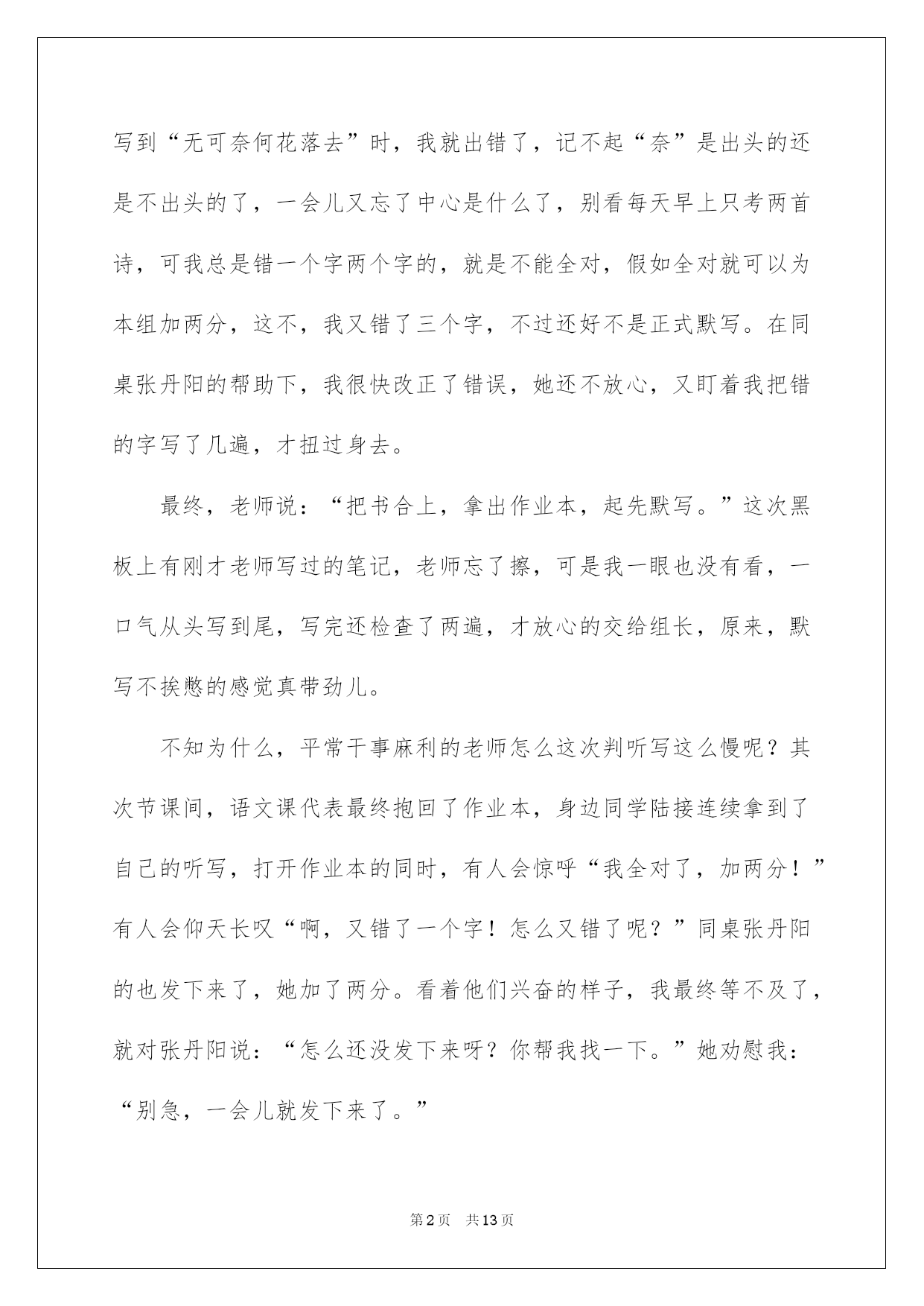 第PAGE\*Arabic\*MERGEFORMAT13页共NUMPAGES\*Arabic\*MERGEFORMAT13页第PAGE\*MERGEFORMAT13页共NUMPAGES\*MERGEFORMAT13页第PAGE\*MERGEFORMAT13页共NUMPAGES\*MERGEFORMAT13页第PAGE\*MERGEFORMAT13页共NUMPAGES\*MERGEFORMAT13页第PAGE\*MERGEFORMAT13页共NUMPAGES\*MERGEFORMAT13页第PAGE\*MERGEFORMAT13页共NUMPAGES\*MERGEFORMAT13页第PAGE\*MERGEFORMAT13页共NUMPAGES\*MERGEFORMAT13页第PAGE\*MERGEFORMAT13页共NUMPAGES\*MERGEFORMAT13页第PAGE\*MERGEFORMAT13页共NUMPAGES\*MERGEFORMAT13页第PAGE\*MERGEFORMAT13页共NUMPAGES\*MERGEFORMAT13页第PAGE\*MERGEFORMAT13页共NUMPAGES\*MERGEFORMAT13页2022中考作文中考作文锦集6篇在日复一日的学习、工作或生活中,大家总免不了要接触或运用作文吧,作文肯定要做到主题集中,围绕同一主题作深化阐述,切忌东拉西扯,主题涣散甚至无主题。写起作文来就毫无头绪?下面是我细心整理的中考作文7篇,仅供参考,大家一起来看看吧。中考作文篇1“窦儿,两首诗会背了吗?”今日上语文早读前组长问我。“会了。”“你背一个我听听!”“一曲新词酒一杯,去年天气旧亭台,夕阳西下几时回……”“嗯,不错!”组长点点头,我心想:被表扬的感觉,真带劲儿。“还有一首呢?会背了吗?”李雅庆问我。“窦儿,你写一遍。”“一会儿默写肯定要加分!”“……”组里其他同学也七嘴八舌的说,我心想:唉,组长说我也就罢了,你们怎么都想管管我,怎么对我这么不放心?“写就写。”我自信地说。刚起先还很顺当,一会儿就有问题了,写到“无可奈何花落去”时,我就出错了,记不起“奈”是出头的还是不出头的了,一会儿又忘了中心是什么了,别看每天早上只考两首诗,可我总是错一个字两个字的,就是不能全对,假如全对就可以为本组加两分,这不,我又错了三个字,不过还好不是正式默写。在同桌张丹阳的帮助下,我很快改正了错误,她还不放心,又盯着我把错的字写了几遍,才扭过身去。最终,老师说:“把书合上,拿出作业本,起先默写。”这次黑板上有刚才老师写过的笔记,老师忘了擦,可是我一眼也没有看,一口气从头写到尾,写完还检查了两遍,才放心的交给组长,原来,默写不挨憋的感觉真带劲儿。不知为什么,平常干事麻利的老师怎么这次判听写这么慢呢?其次节课间,语文课代表最终抱回了作业本,身边同学陆接连续拿到了自己的听写,打开作业本的同时,有人会惊呼“我全对了,加两分!”有人会仰天长叹“啊,又错了一个字!怎么又错了呢?”同桌张丹阳的也发下来了,她加了两分。看着他们兴奋的样子,我最终等不及了,就对张丹阳说:“怎么还没发下来呀?你帮我找一下。”她劝慰我:“别急,一会儿就发下来了。”又过了许久,我的作业本最终发下来了,拿在手里,打开一看,“呀,我得了2分。”我兴奋地不得了,抓紧把这个好消息告知了组长,组长点点头说:“好!表现不错!”组里其他同学也纷纷激励我。我们组目前以22分的优势位居其次,我信任,第一已经离我们不远了。原来加分是这么简洁,只要多一点汗水,多一点仔细,多一点坚持;原来我的努力能给全组同学带来这么多的欢乐。这种感觉,真带劲儿!中考作文篇2天,灰蒙蒙的,铅灰色的云笼在头顶,给人以沉闷、压抑,乃至窒息的感觉。俺呆呆地坐在小河边,暗自垂泪,愤懑、凄苦、悲凉,多种伤感时时袭拢着俺的心。俺流泪幽泣,时而生气地抓起地上的石子向远处撇去……想想考试的不志向,喉间又涌上了几丝痛楚的哽咽。小河静静地流,毫不懈怠。条条河流归大海,可俺的归宿在哪里?愣愣地望着小河,突然有一株树的倒影映入眼帘。抬头看,那株小白杨,笔直的干,笔直的枝,这,不是茅老先生笔下的“英勇斗士”的形象吗?风拂杨叶,哗哗作响。白杨,你是在可怜俺?你是在抚慰俺?还是在激励俺?夜间,暴雨骤至,电闪雷鸣,狂风大作。次日早晨,很多人跑向村北小河。俺也走过去,见那株白杨昨夜被狂风吹折,倒在小河中。有个青年走到树旁,看了看说:“扶起它,也许还能活。”于是七手八脚地把它扶起。俺摸着断痕,那儿有几点粘液。白杨啊,这可是你的泪?过了几天,俺再去小河边,那株白杨叶片已经微黄,有几片已飘落下