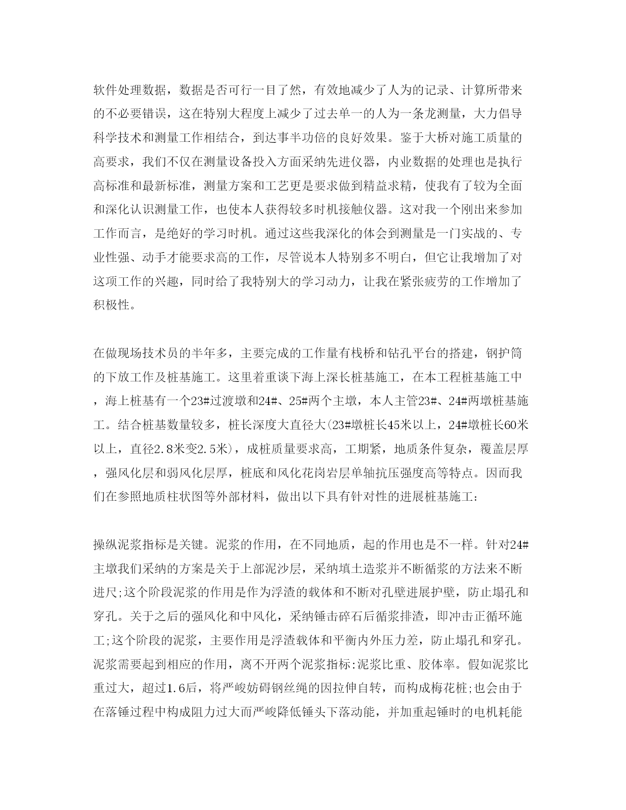 2022桥梁施工技术员工作自我参考总结(通用).docx