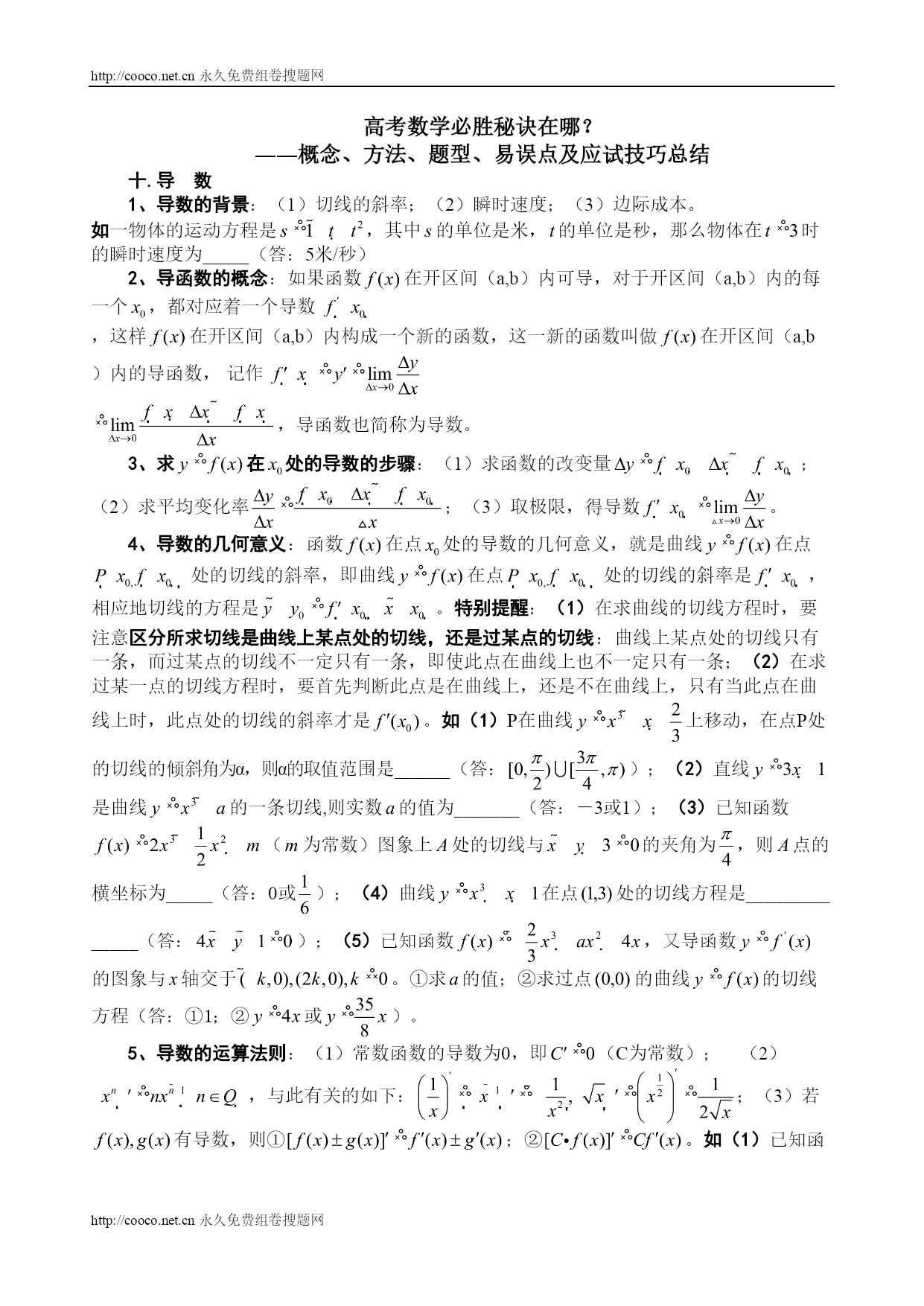 2022高考数学必胜秘诀(十)导数doc高中数学