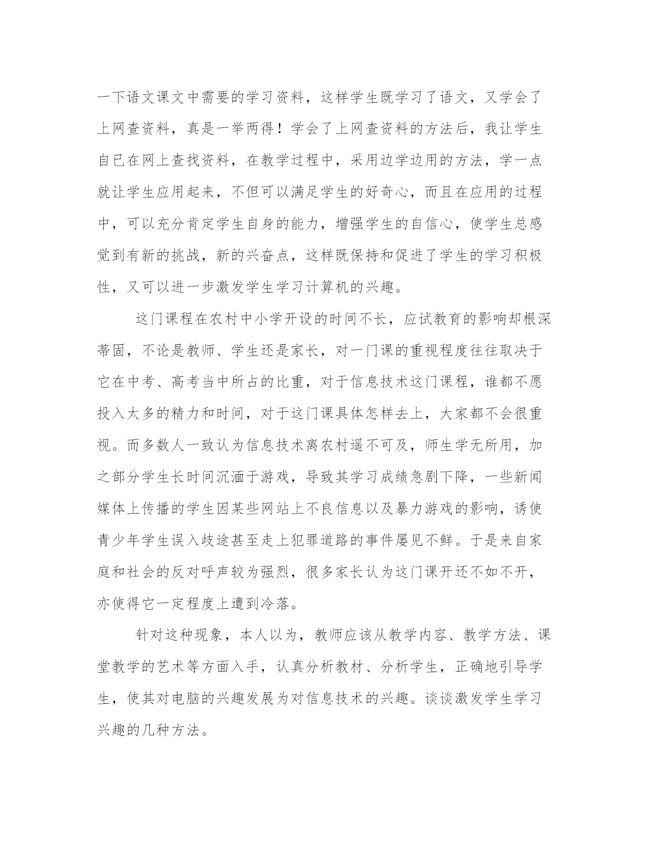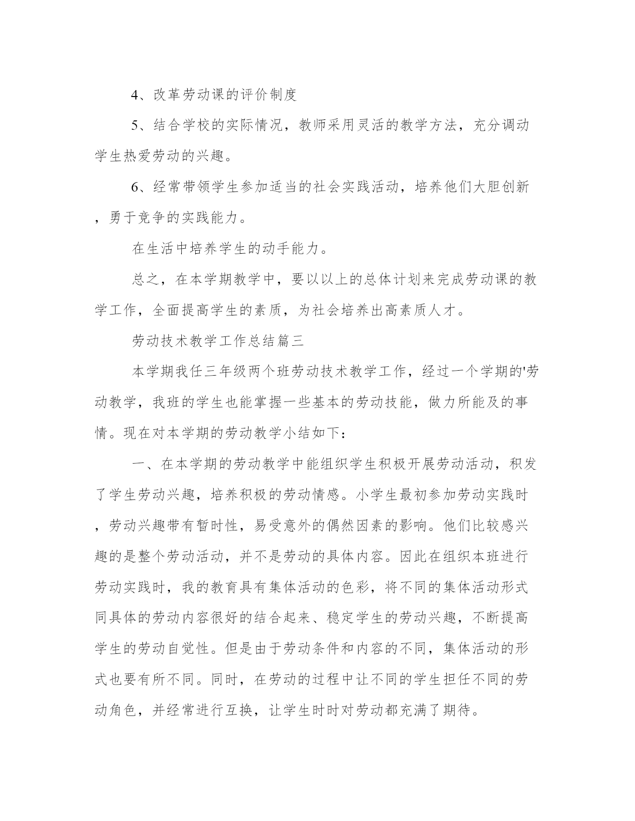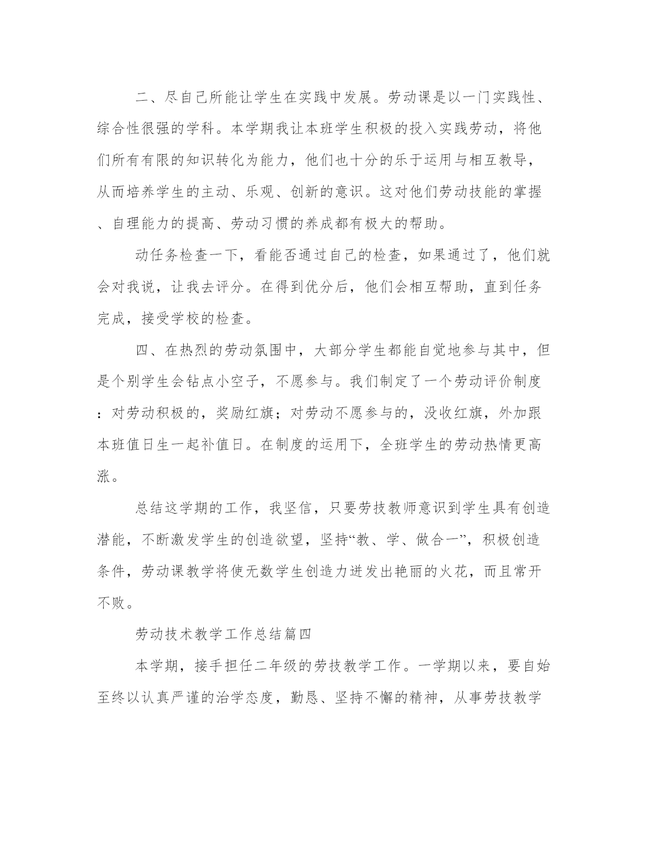 劳动技术教学工作总结(模板12篇)当工作或学习进行到一定阶段或告一段落时,需要回过头来对所做的工作认真地分析分析一下,肯定成绩,找出问题,归纳出经验教训,提高认识,明确方向,以便进一步做好工作,并把这些用文字表述出来,就叫做总结。大家想知道怎么样才能写一篇比较优质的总结吗?下面是小编整理的个人今后的总结范文,欢迎阅读分享,希望对大家有所帮助。劳动技术教学工作总结篇一引入图画,激发学习兴趣。六年级的学生对过去学的画图特别感兴趣,而计算机正具有能画画的特点。根据这一特点,可以把计算机新课的学习寓于画画之中,激发学生学习的兴趣。在学生浓厚的兴趣中学习新知识,掌握新技能。利用学习成绩,提高学生的求知欲在不断地学习中,采用边学边用的方法,学一点就让学生应用起来,不仅要满足学生的好奇心,还要在应用过程中,充分肯定学生自身的能力,增强学生的自信心,保持和促进学生学习的积极性,进一步激发学生学习计算机的兴趣,形成一个良性循环。及时做总结,写反思。做到期初有计划,有教学进度,使教学工作能有条不紊地顺利进行下去;学生通过学习活动,在不断获得新知识的过程中,能够不断地看到自己的成果时,就会爆发出强烈的继续学习的愿望,学习兴趣也就越来越浓厚。如在教学如何上网查找资料时,我先让学生了解了一下语文课文中需要的学习资料,这样学生既学习了语文,又学会了上网查资料,真是一举两得!学会了上网查资料的方法后,我让学生自已在网上查找资料,在教学过程中,采用边学边用的方法,学一点就让学生应用起来,不但可以满足学生的好奇心,而且在应用的过程中,可以充分肯定学生自身的能力,增强学生的自信心,使学生总感觉到有新的挑战,新的兴奋点,这样既保持和促进了学生的学习积极性,又可以进一步激发学生学习计算机的兴趣。这门课程在农村中小学开设的时间不长,应试教育的影响却根深蒂固,不论是教师、学生还是家长,对一门课的重视程度往往取决于它在中考、高考当中所占的比重,对于信息技术这门课程,谁都不愿投入太多的精力和时间,对于这门课具体怎样去上,大家都不会很重视。而多数人一致认为信息技术离农村遥不可及,师生学无所用,加之部分学生长时间沉湎于游戏,导致其学习成绩急剧下降,一些新闻媒体上传播的学生因某些网站上不良信息以及暴力游戏的影响,诱使青少年学生误入歧途甚至走上犯罪道路的事件屡见不鲜。于是来自家庭和社会的反对呼声较为强烈,很多家长认为这门课开还不如不开,亦使得它一定程度上遭到冷落。针对这种现象,本人以为,教师应该从教学内容、教学方法、课堂教学的艺术等方面入手,认真分析教材、分析学生,正确地引导学生,使其对电脑的兴趣发展为对信息技术的兴趣。谈谈激发学生学习兴趣的几种方法。1、以精彩的课堂“引入”,激发学生的学习兴趣文字编辑是中小学信息技术课的最主要内容这一,然而不少学生会认为,文字编辑不就是“打字”吗?只要会输入文字不就可以了,一些连简单的插入、删除还没有学会的学生也觉得它“没意思”。在上“文字编辑”这节课时,从科学家发明了一种“特殊的纸”,用作练习本入手,引入本节课的教学内容,这种“特殊的纸”具有容量大、易修改、无污染等特点,广泛应用于日常生活之中,如手机短信、商务通等,使学生在体会信息技术对人类日常生活深刻影响的同时,感受到文字输入的重要性,从而激发学生的学习兴趣。2、选择适当的教学内容,提高学生学习兴趣我根据学校的条件及学生的接受能力做出选择,没有必要照本宣科,使一些对画图程序已经“玩儿”得很溜的学生失去学习兴趣。又如,在讲word中“插入图片”这节课时,在介绍插入图片的几种方法的同时,给学生介绍一些图片来源的知识,如用数码相机、扫描仪等,不仅能够培养学生理论联系实际的意识和能力,还可以提高学生的学习兴趣。回顾这个学期所从事的电脑教学工作,基本上是比较顺利地完成了教学任务。当然,在工作中我享受到收获的喜悦,也在工作中发现一些存在的问题。我所享有的收获我会用于下个学期的工作中,我所碰到的问题我要认真思考想办法解决。作为教师,教学工作是主要的,但除了教学工作外,我也积极参加学校组织其它活动。根据上述总结,我深深感到,只要立足实际,认真分析和分析好教材、分析好学生,争取学校领导、师生的支持,就能创造性地搞好信息技术课的教学,就能使我们的工作有所开拓,有所进取。劳动技术教学工作总结篇二劳动技术课是九年义务教育重要的课程之一,搞好劳动技术课的教学工作可以使学生掌握简单的劳动方法。提高劳动技能,培养他们热爱劳动的高尚品质。因此为了搞好本学期的劳动教学工作,特制定科学合理的教学计划。本学期三年级一班共31人,学生整体素质不错。但思想较浮躁,大多数同学热爱劳动,几个别学生劳动态度不端正。1、学生的基础知识掌握较好,但不爱动手操作,劳动态度需要端正。2、劳动课受条件的限制,缺乏参加实