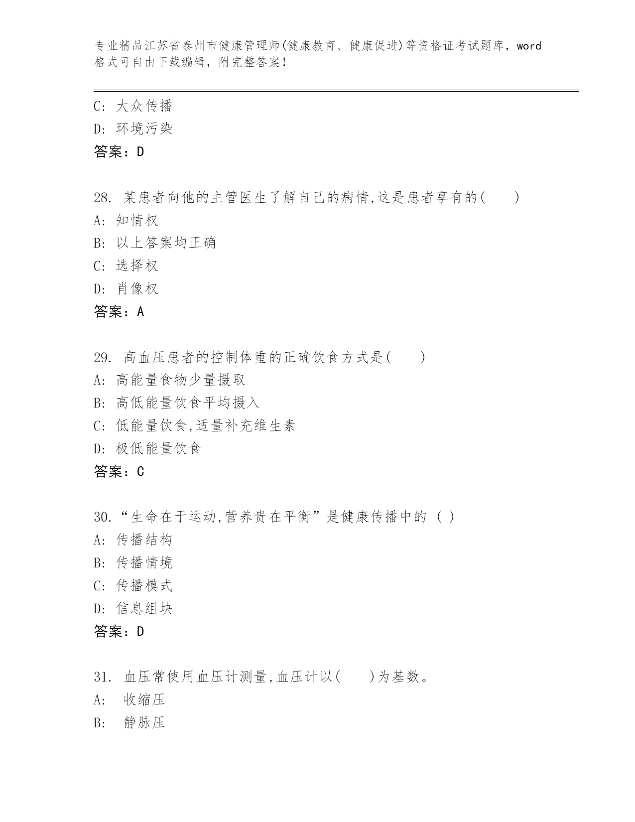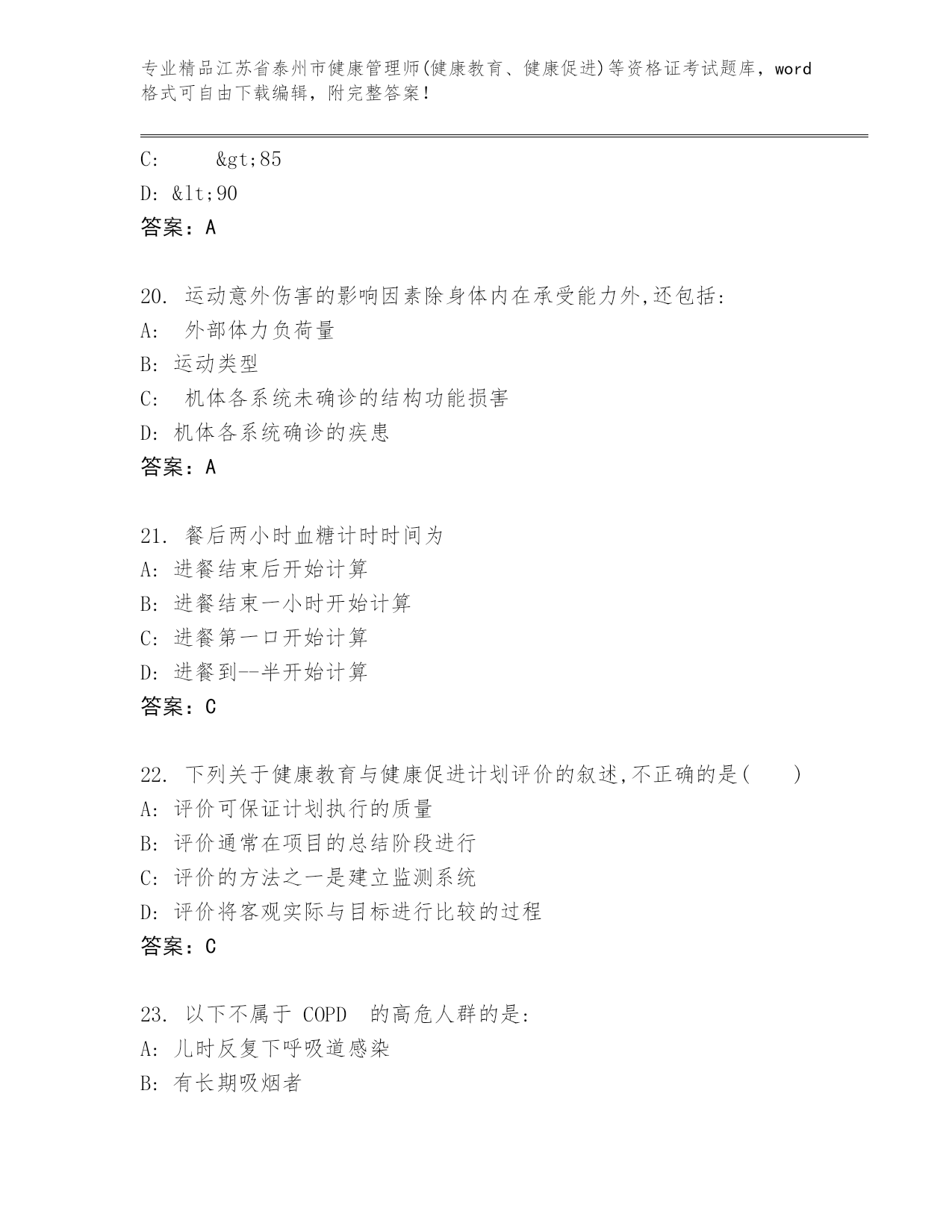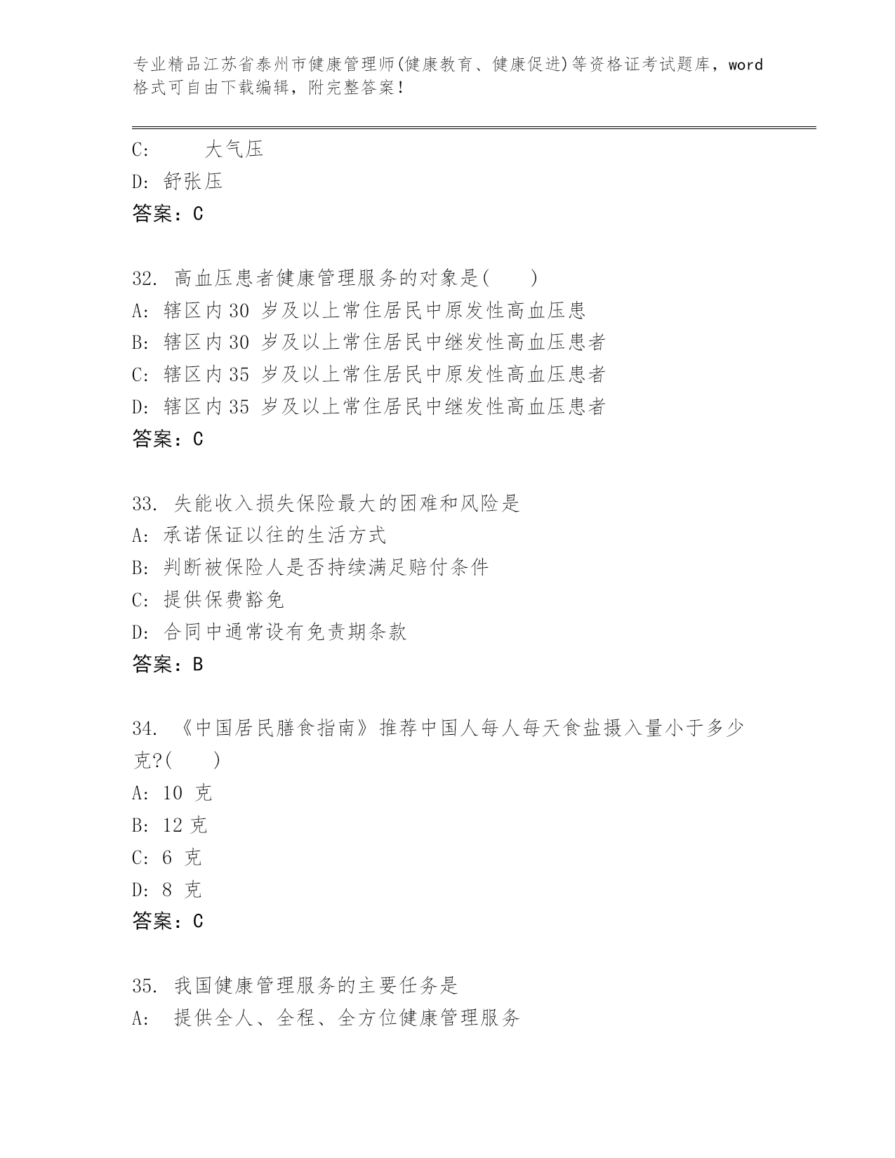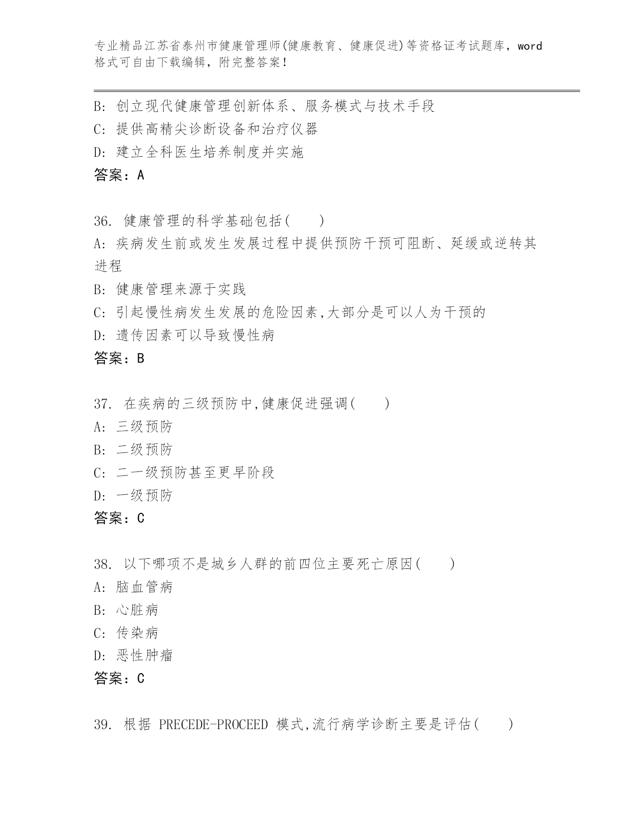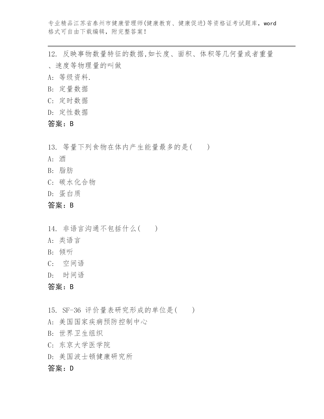 精品江苏省泰州市健康管理师(健康教育、健康促进)等资格证考试完整题库(培优B卷).docx