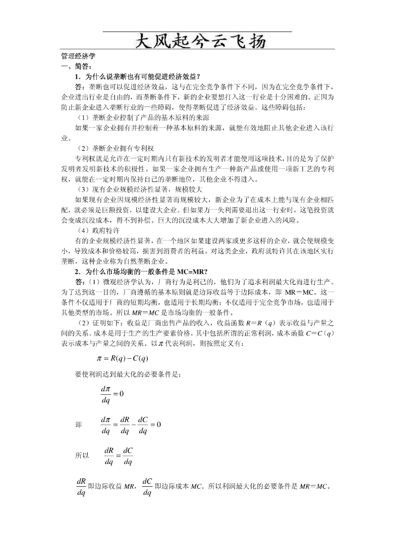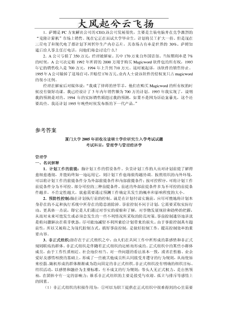 Yatfov厦门大学管理学与管理经济学2005及答案年考研试题.pdf