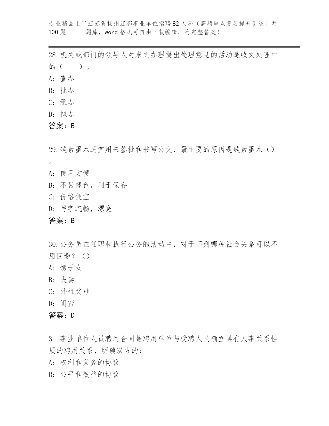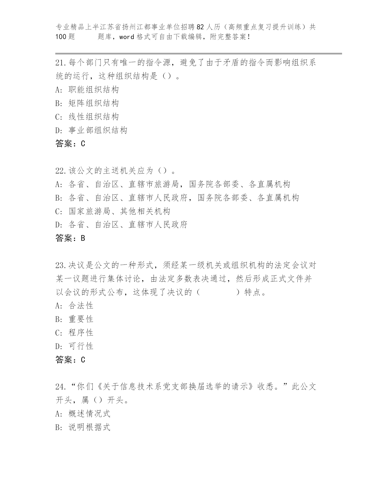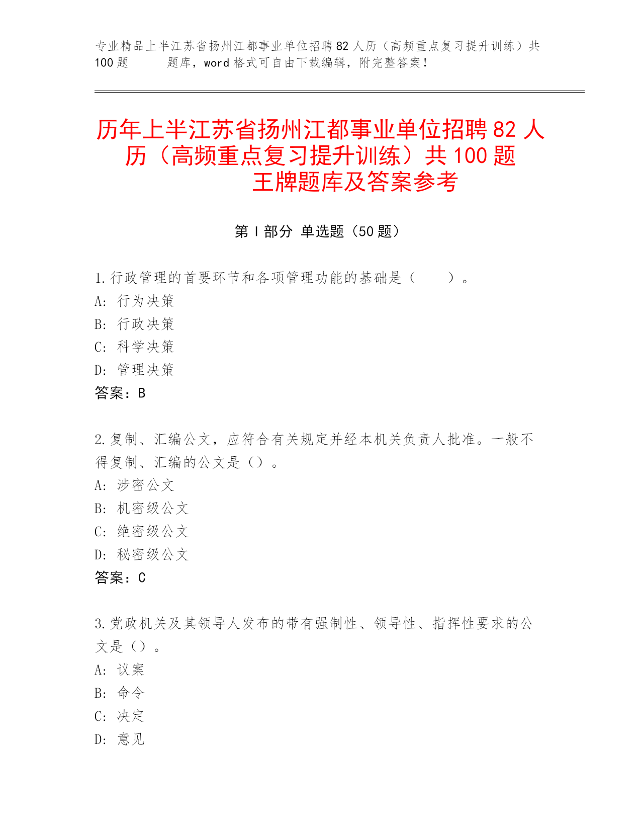 历年上半江苏省扬州江都事业单位招聘82人历(高频重点复习提升训练)共100题 题库及答案解析