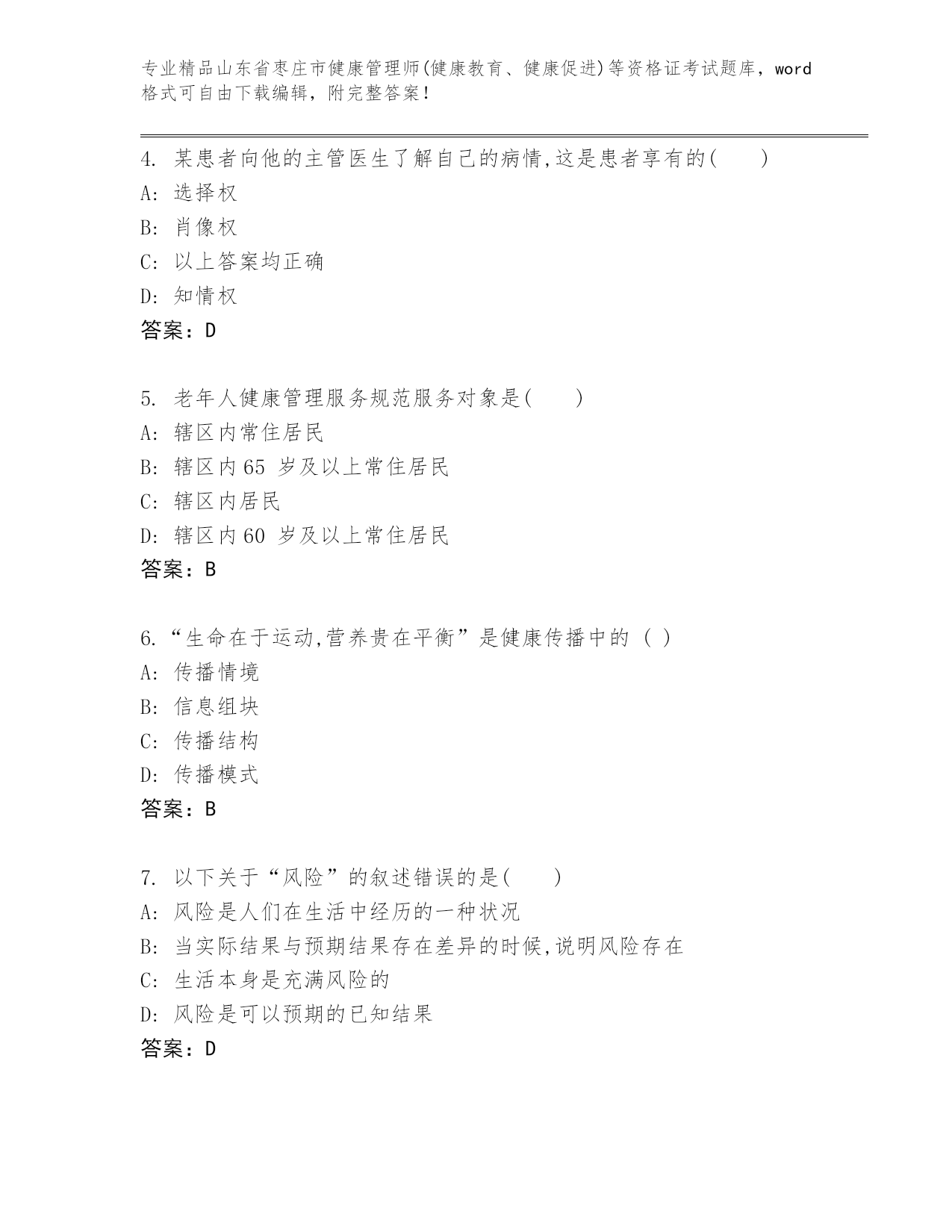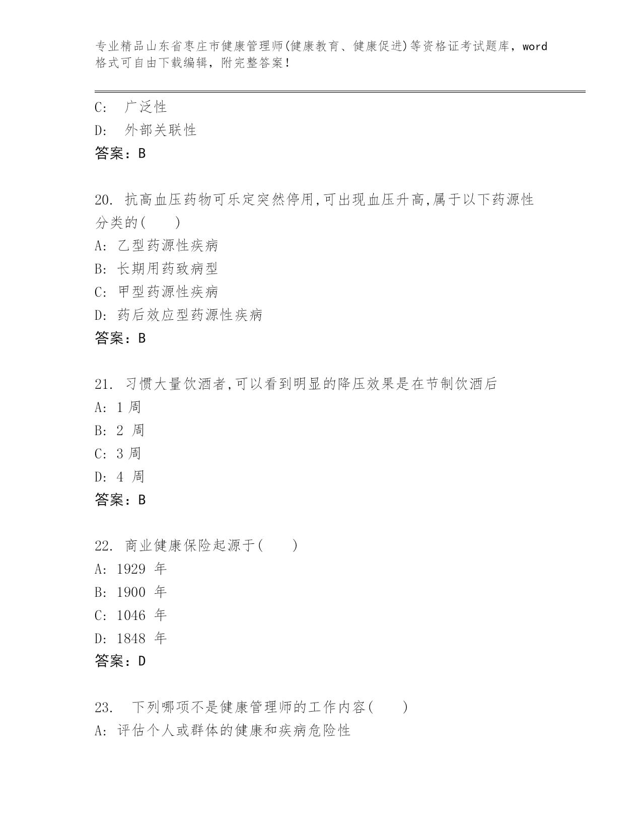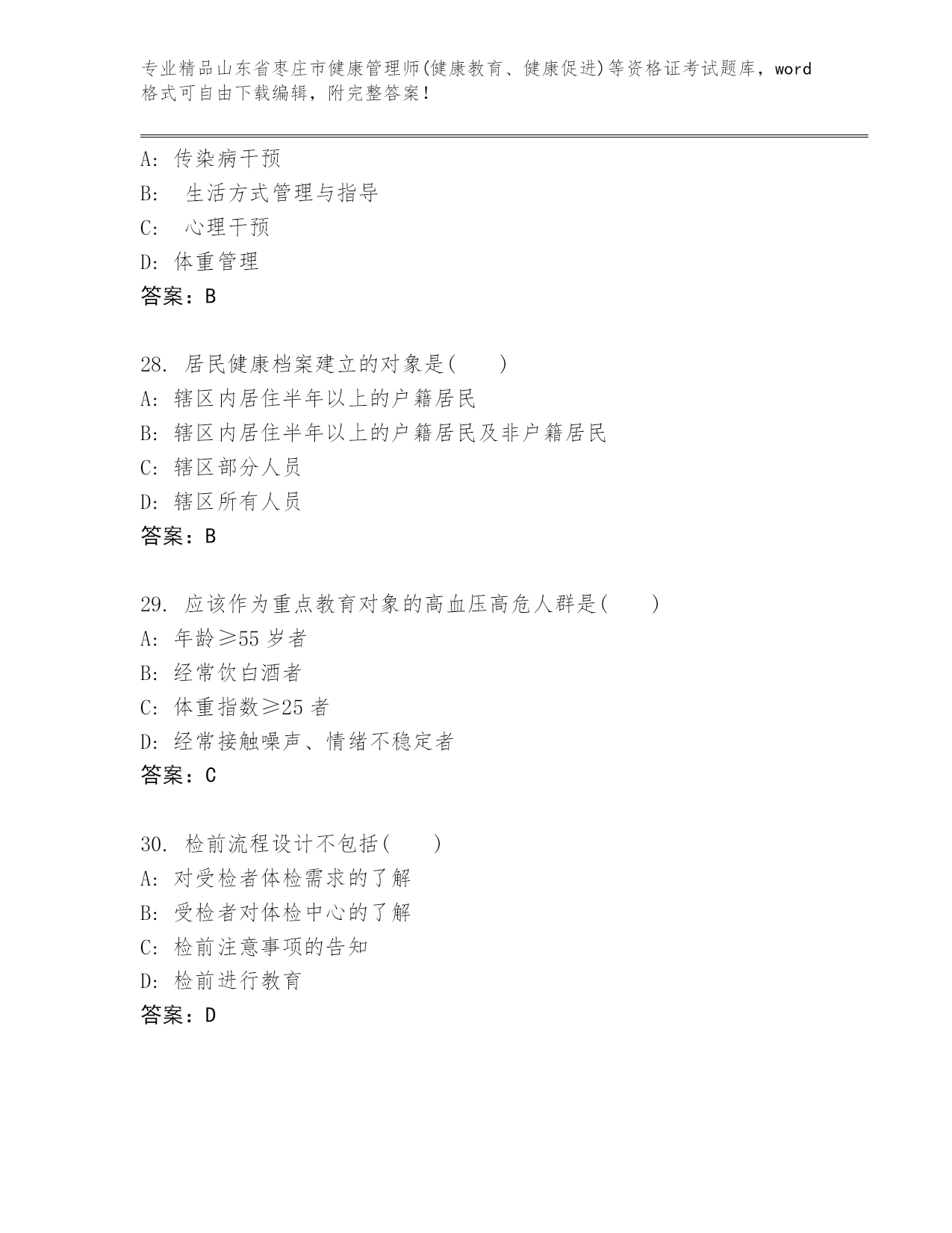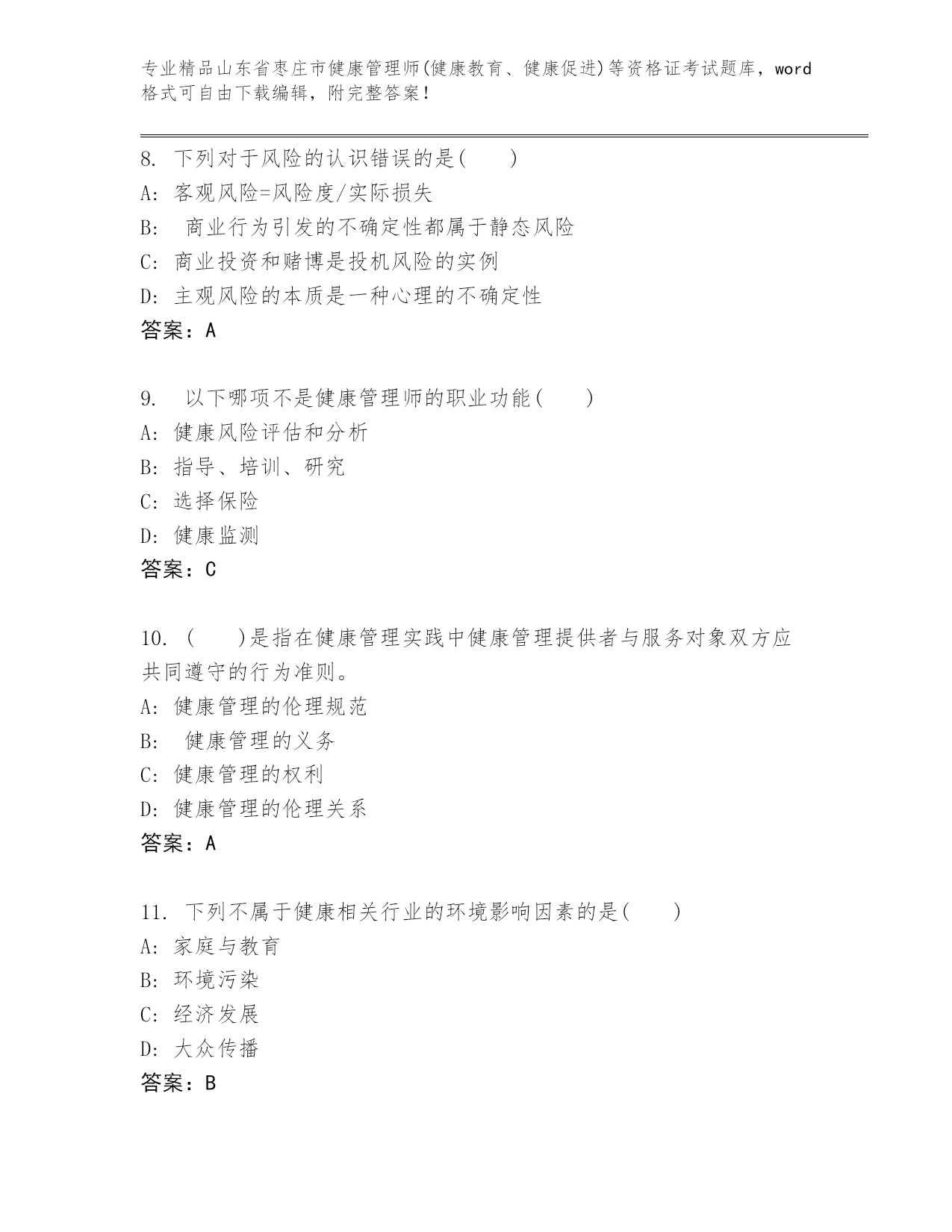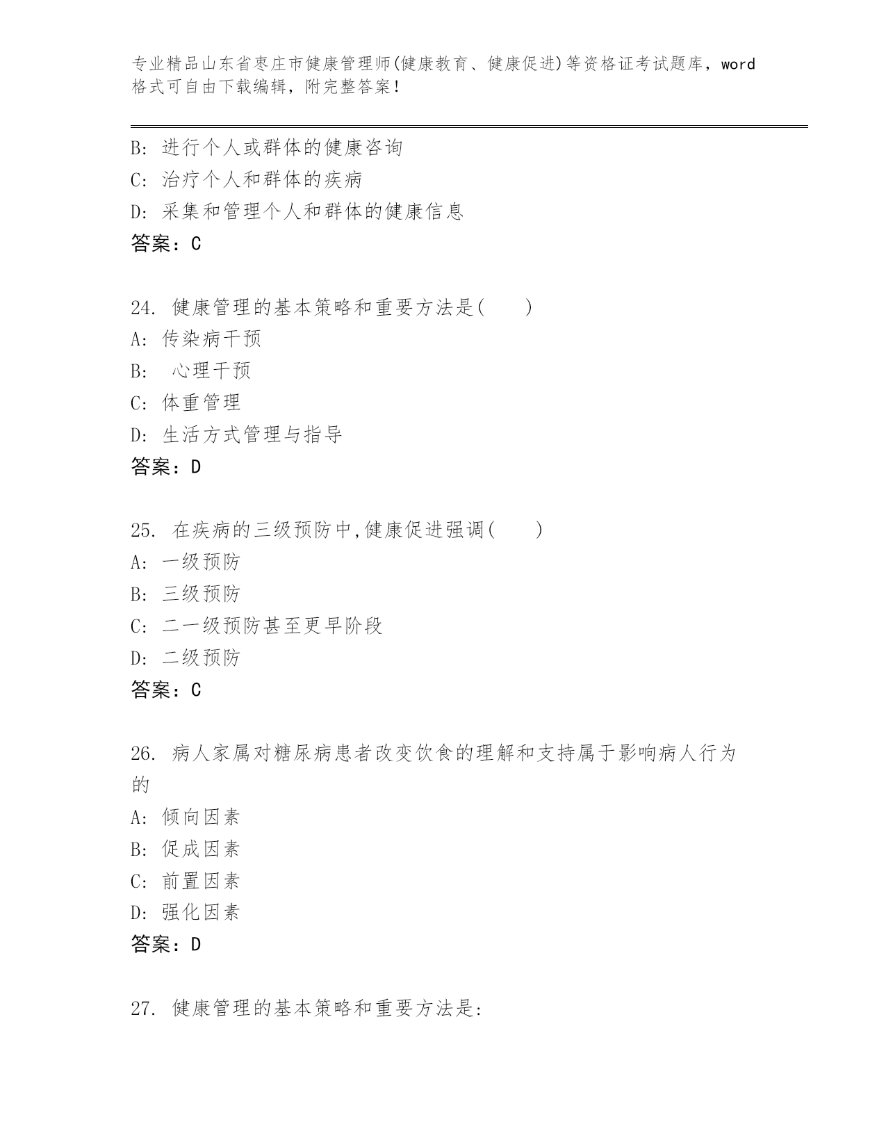 精品山东省枣庄市健康管理师(健康教育、健康促进)等资格证考试通用题库(夺冠).docx
