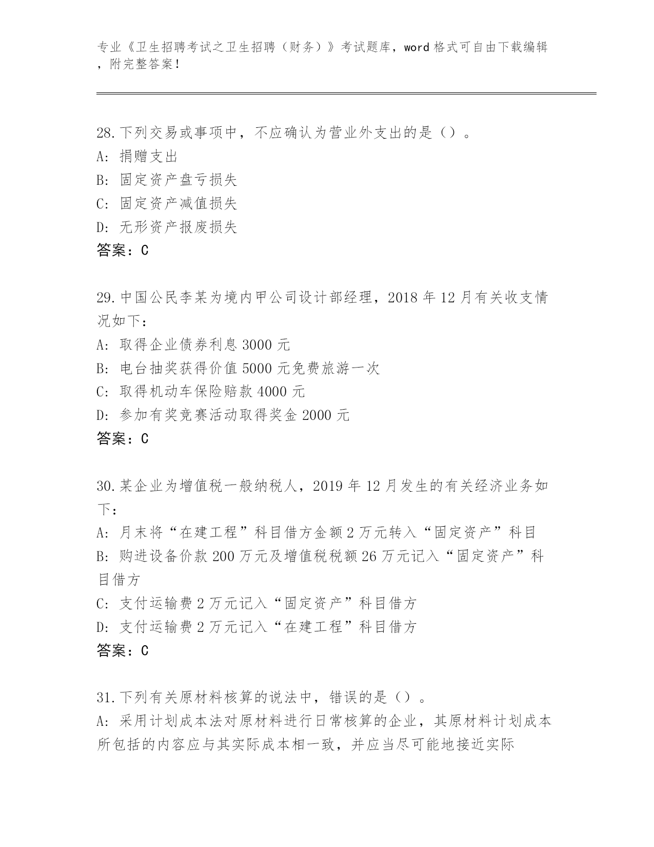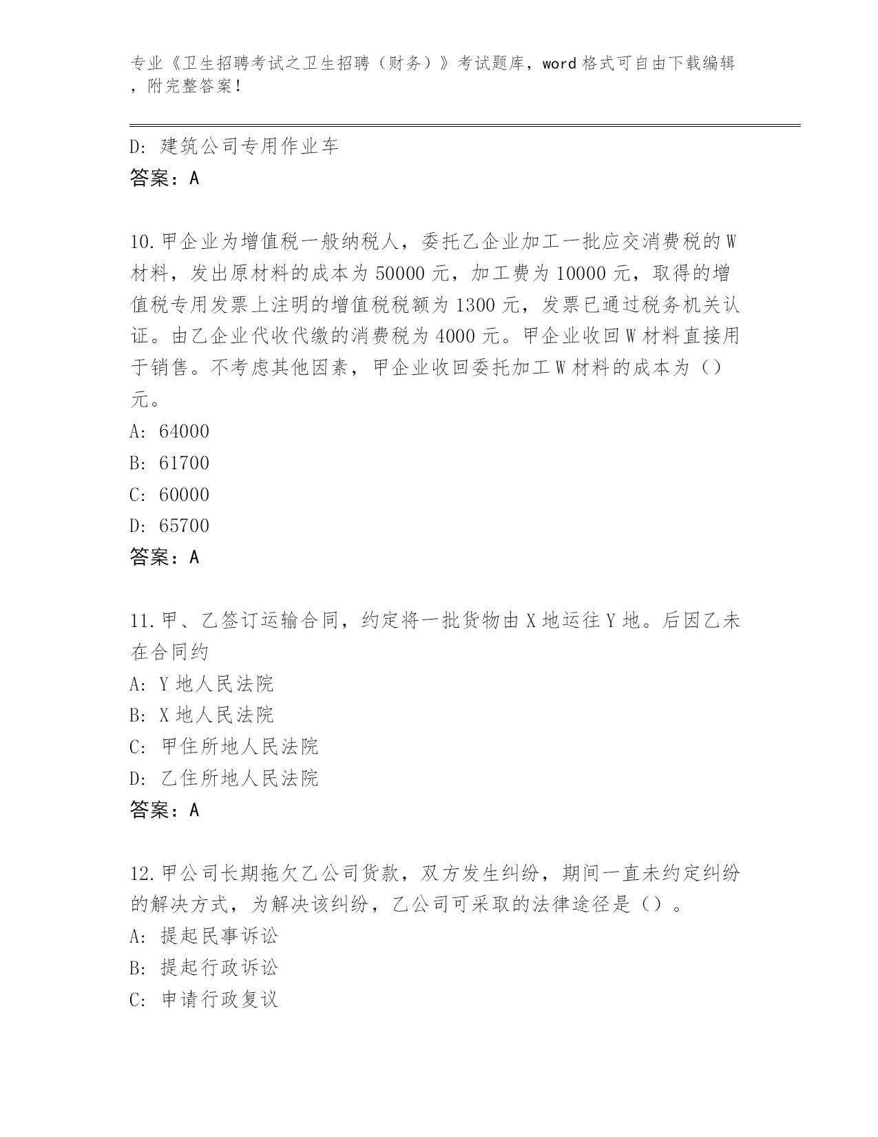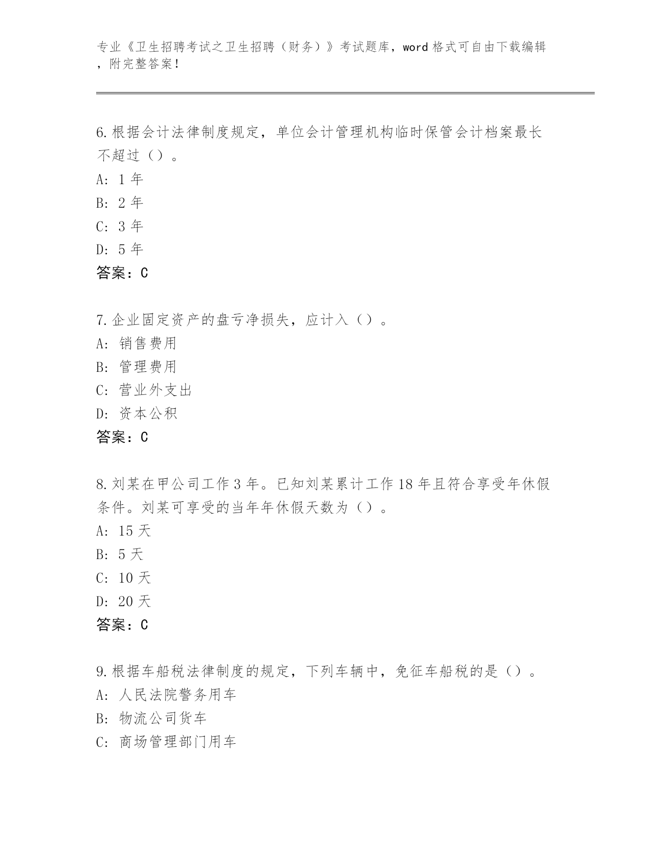 整理陕西省雁塔区《卫生招聘考试之卫生招聘(财务)》考试大全及答案(考点梳理)