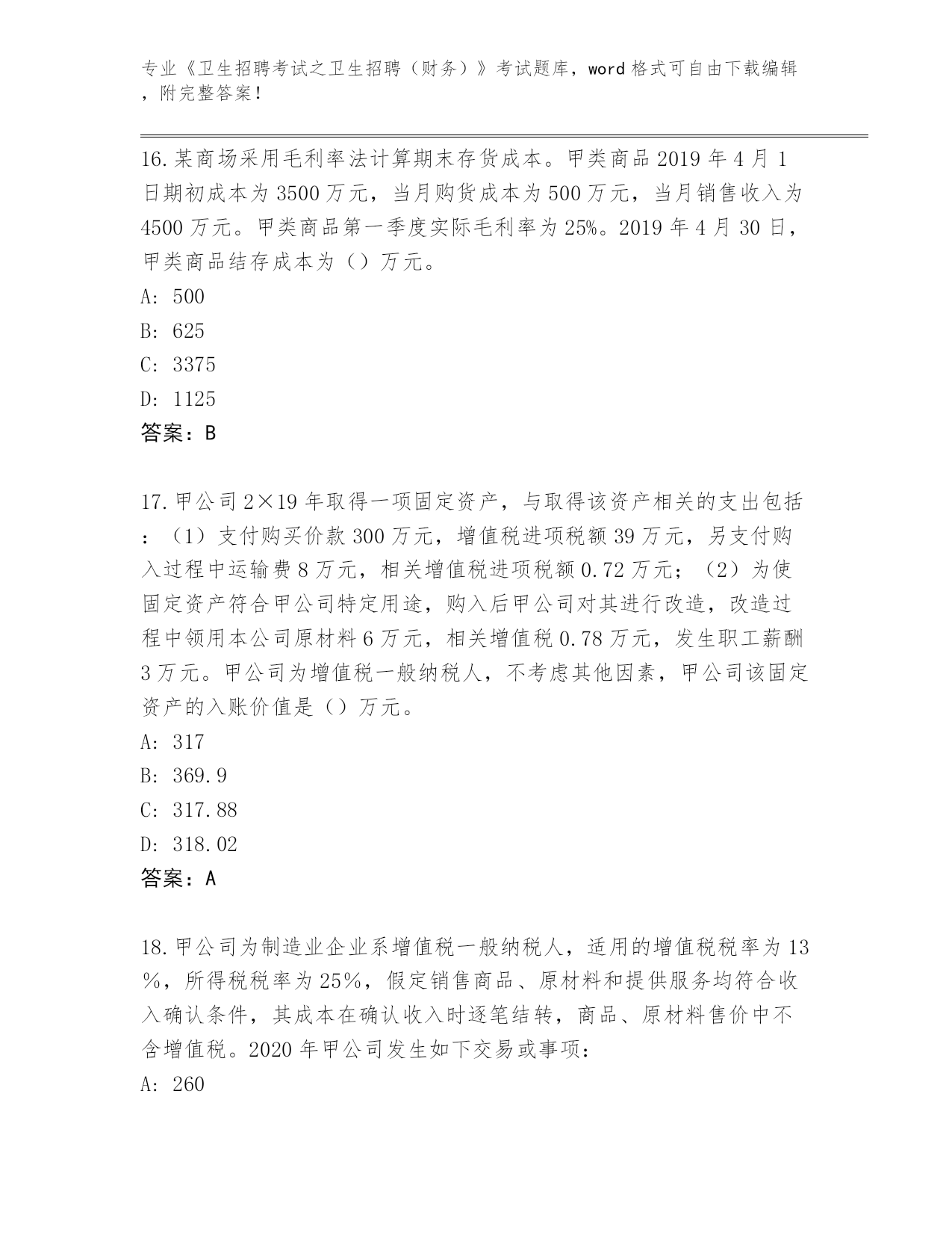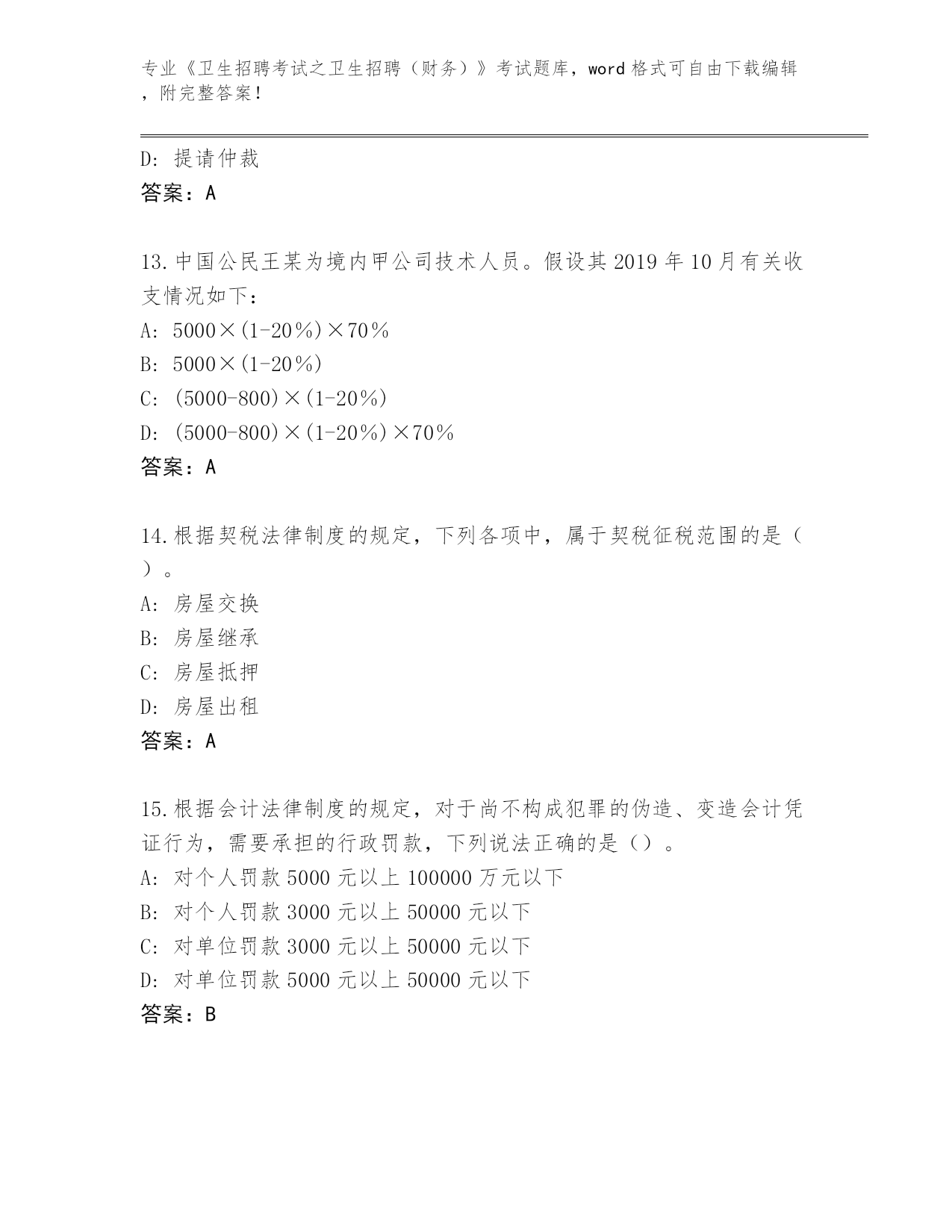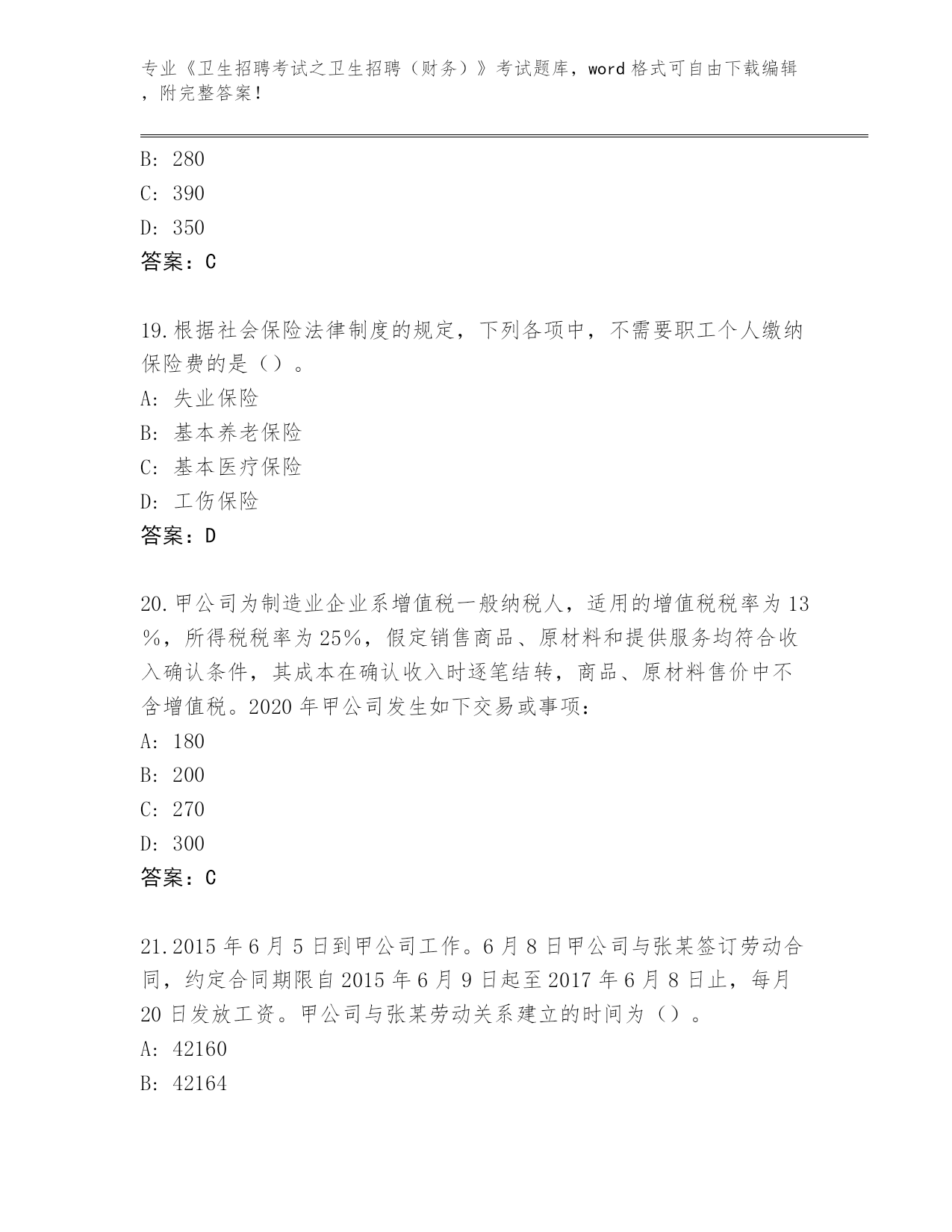 整理陕西省雁塔区《卫生招聘考试之卫生招聘(财务)》考试大全及答案(考点梳理)