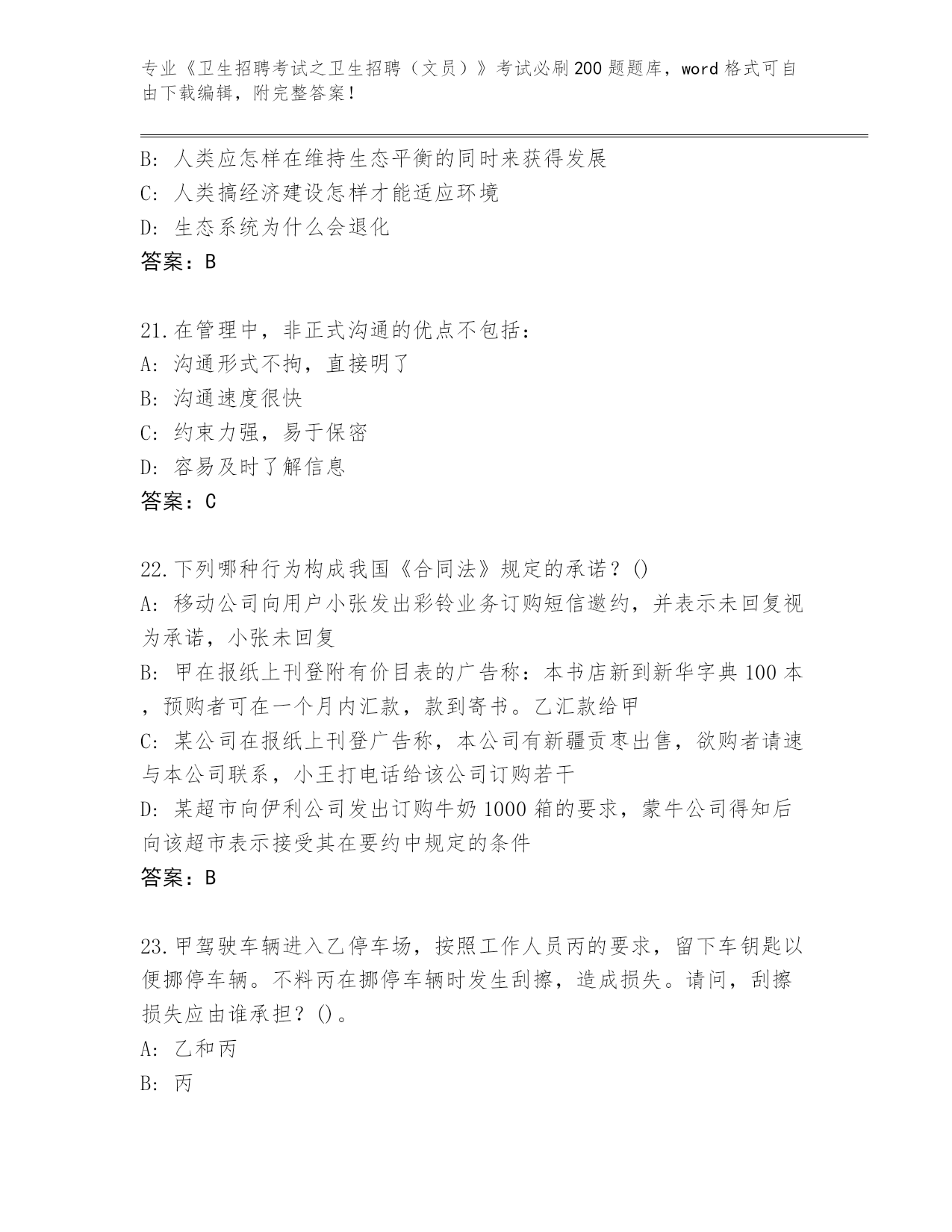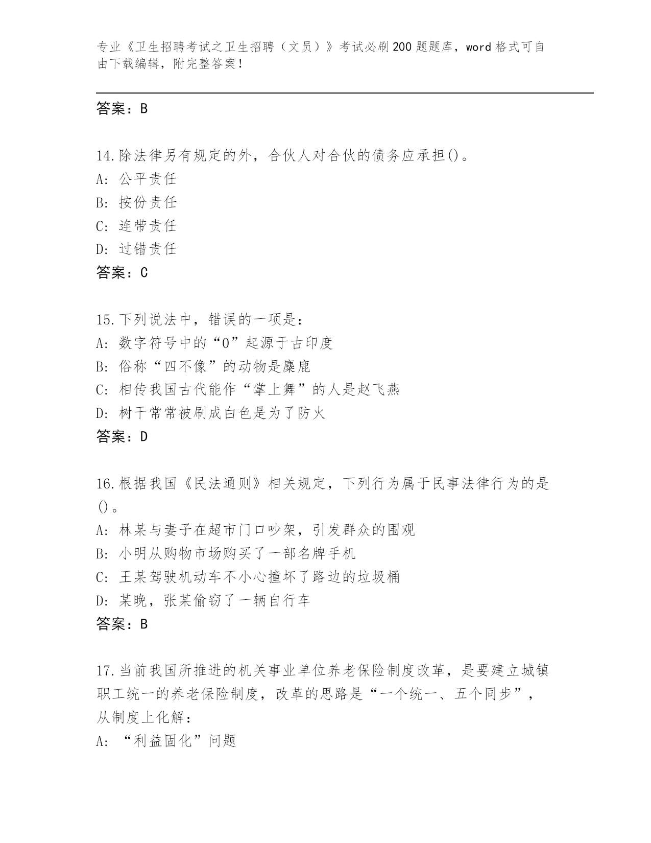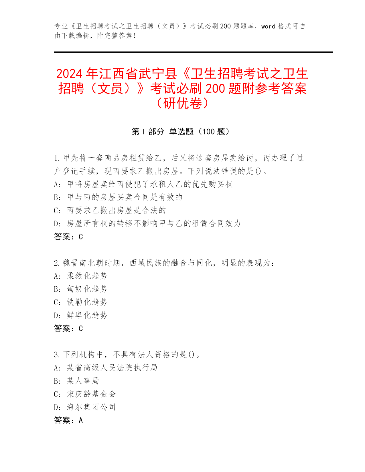 2024年江西省武宁县《卫生招聘考试之卫生招聘(文员)》考试必刷200题附参考答案(研优卷)