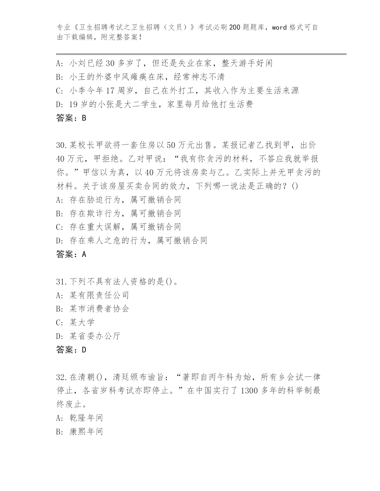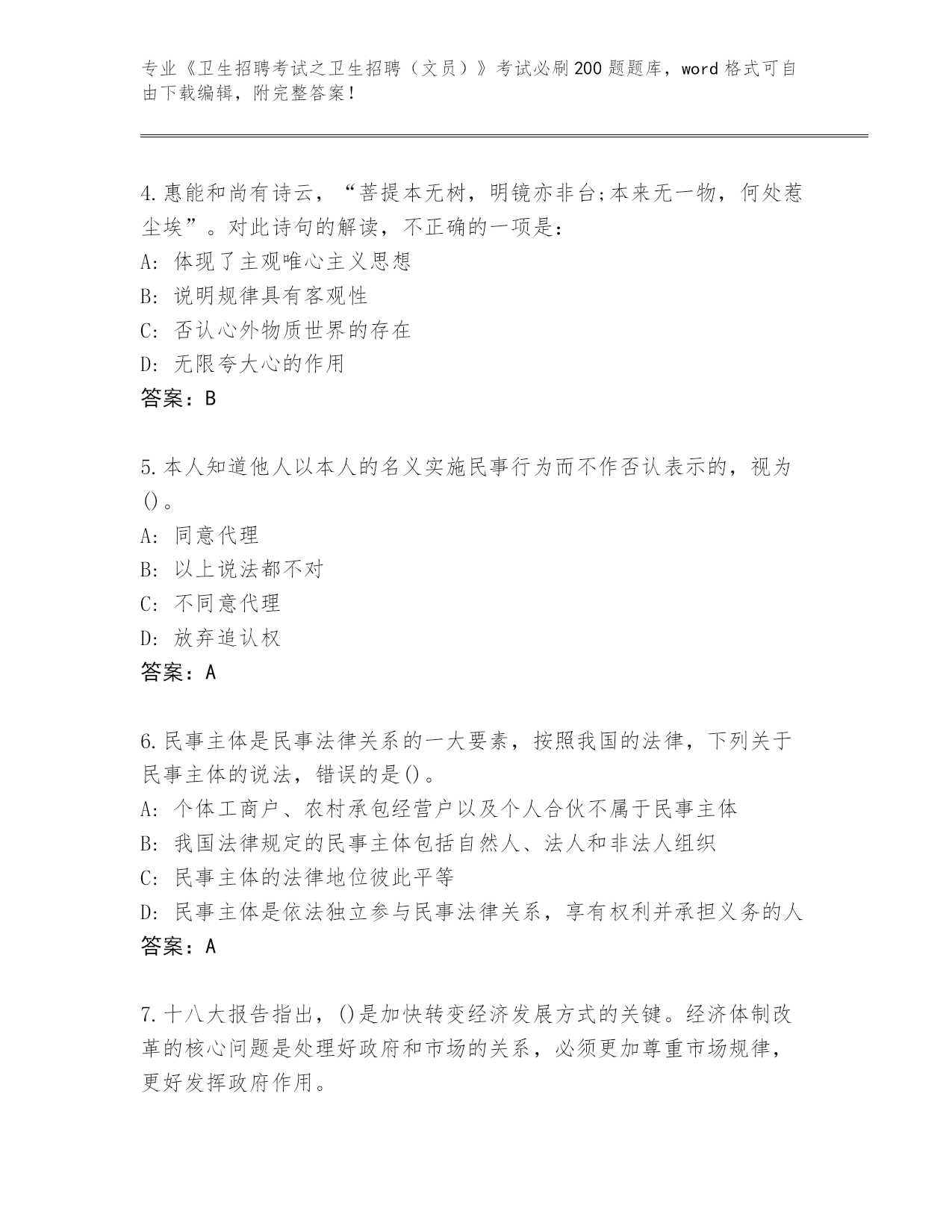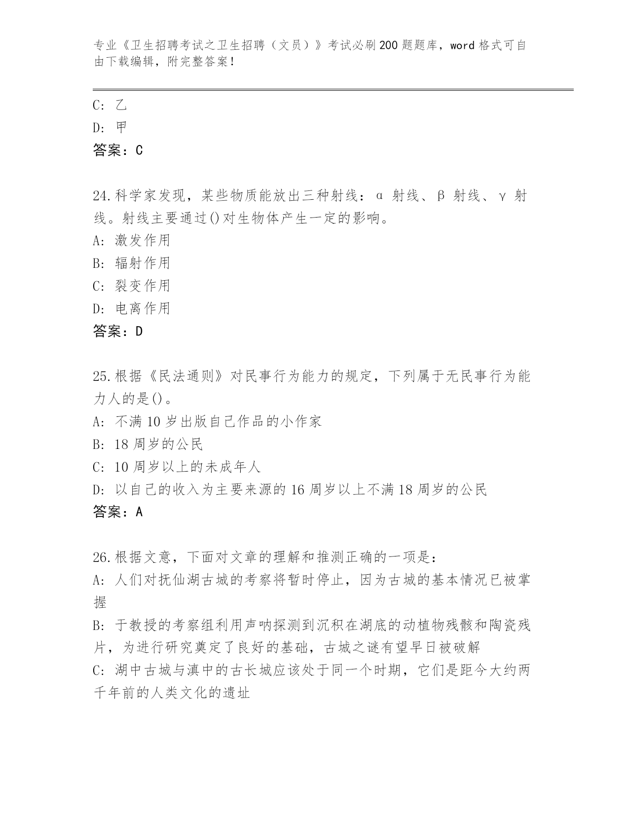2024年江西省《卫生招聘考试之卫生招聘(文员)》考试必刷200题题库含答案(研优卷)