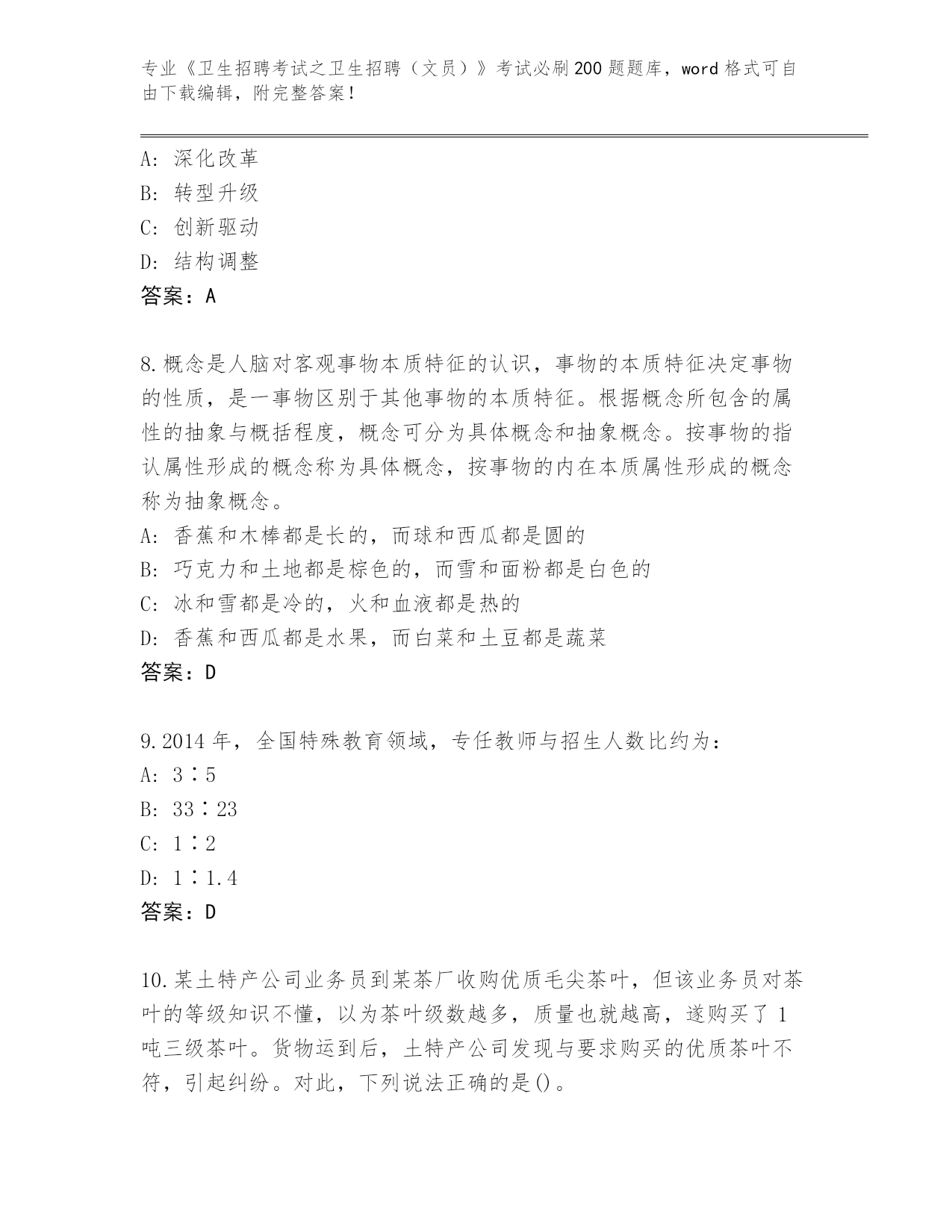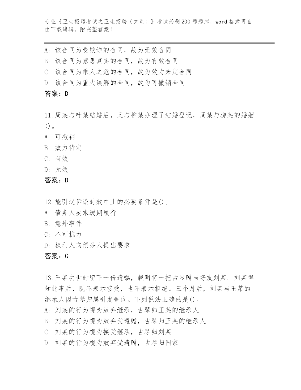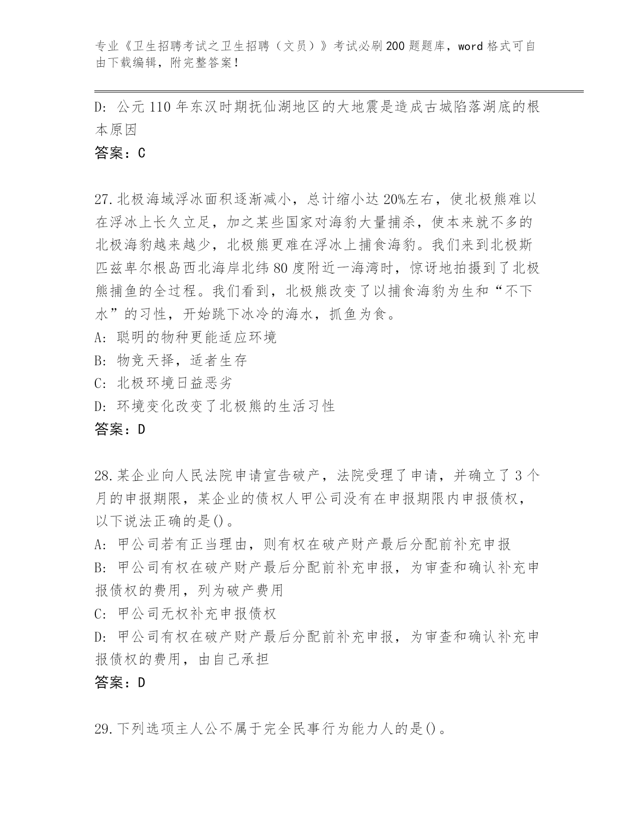 2024年江西省《卫生招聘考试之卫生招聘(文员)》考试必刷200题题库含答案(研优卷)