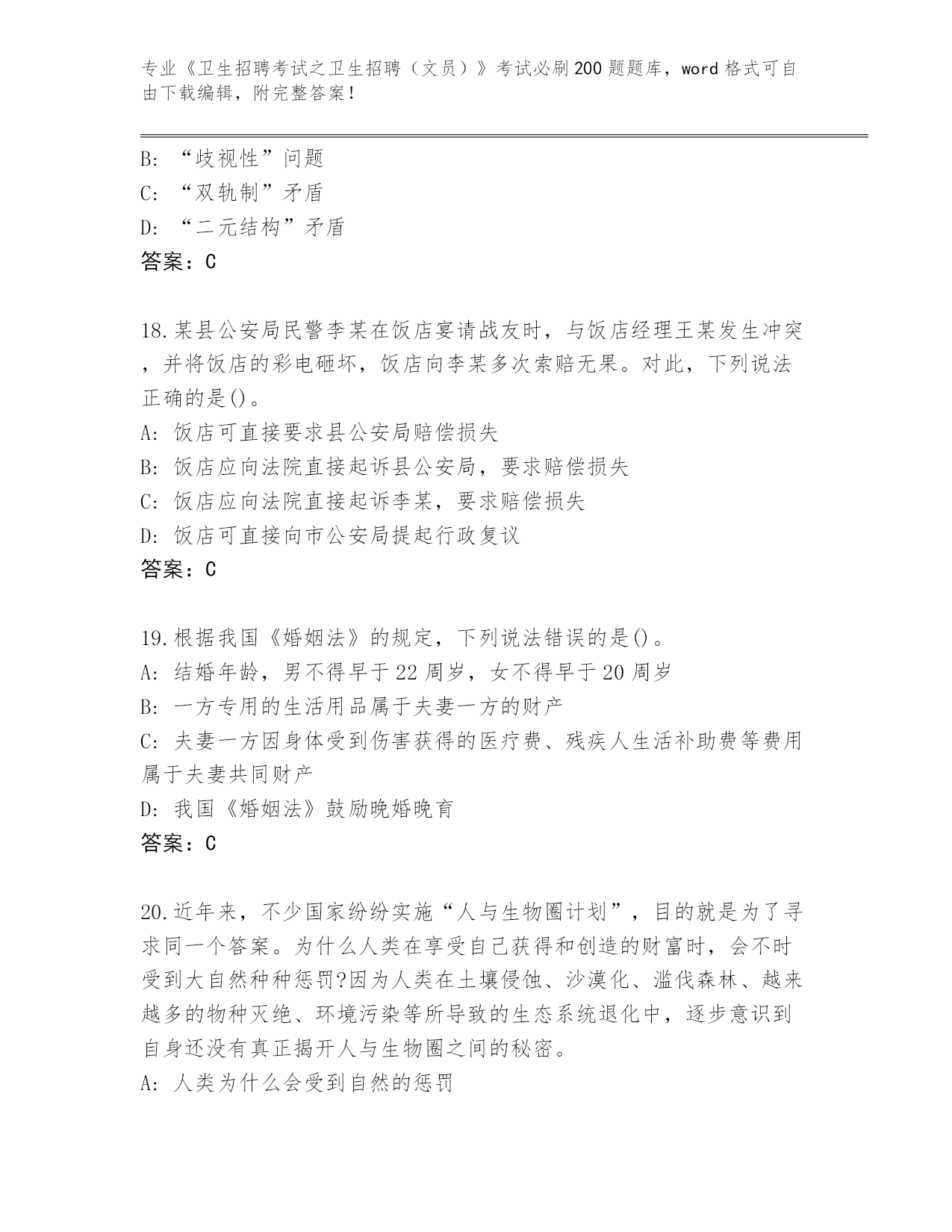 河南省殷都区《卫生招聘考试之卫生招聘(文员)》考试必刷200题附参考答案(研优卷)