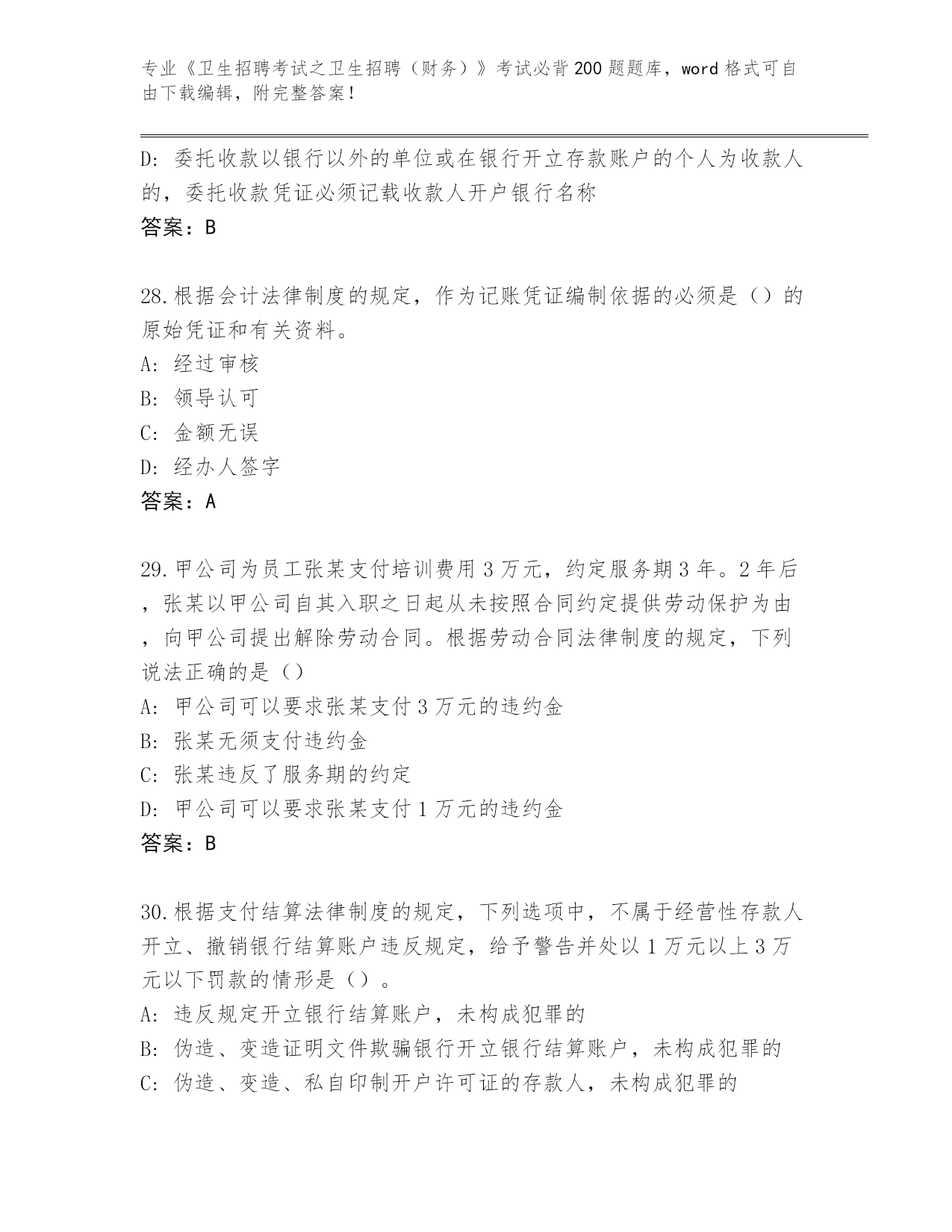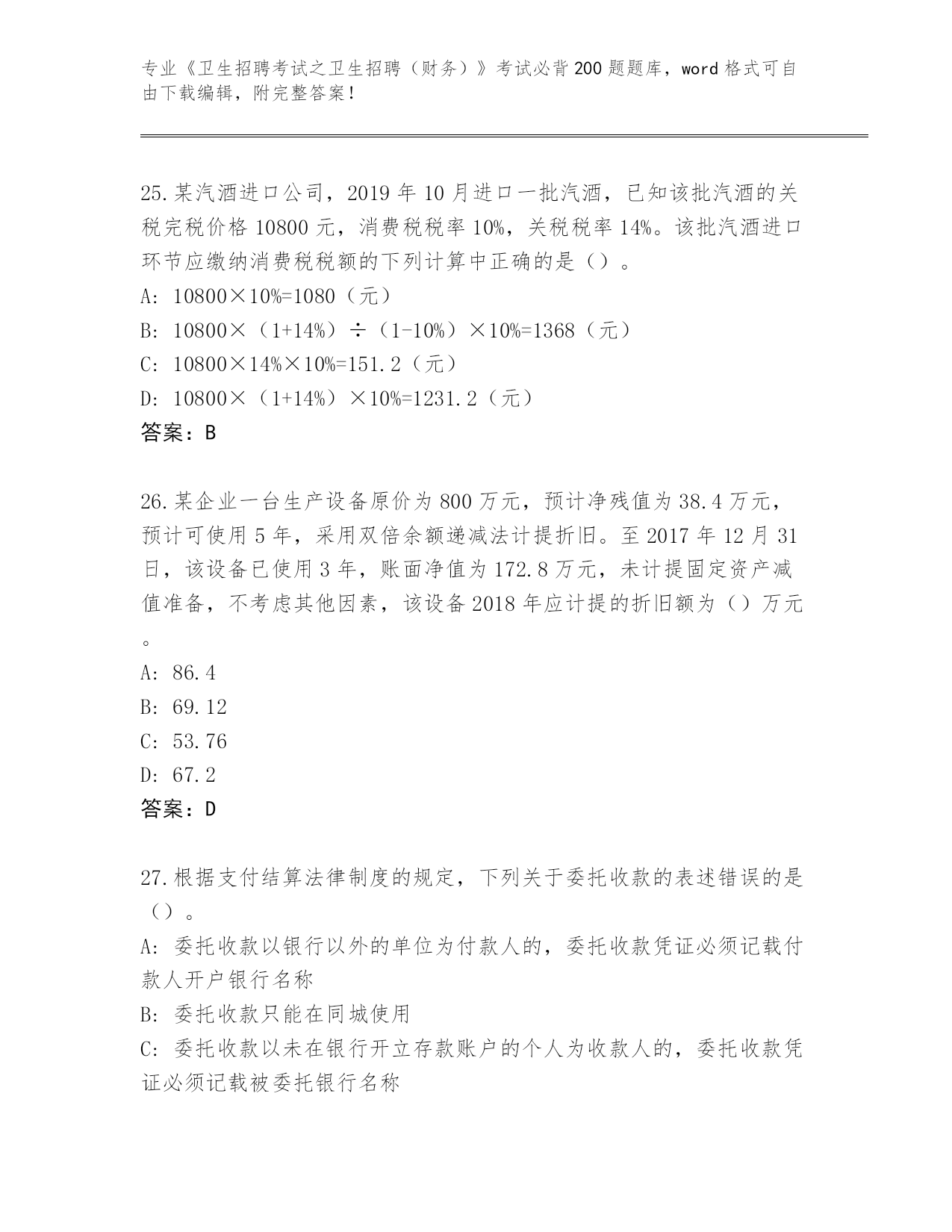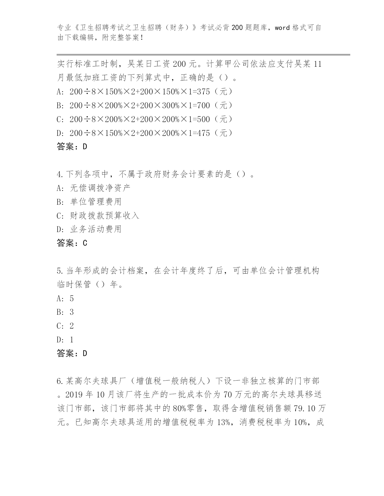 广东省2024年《卫生招聘考试之卫生招聘(财务)》考试必背200题真题题库【历年真题】