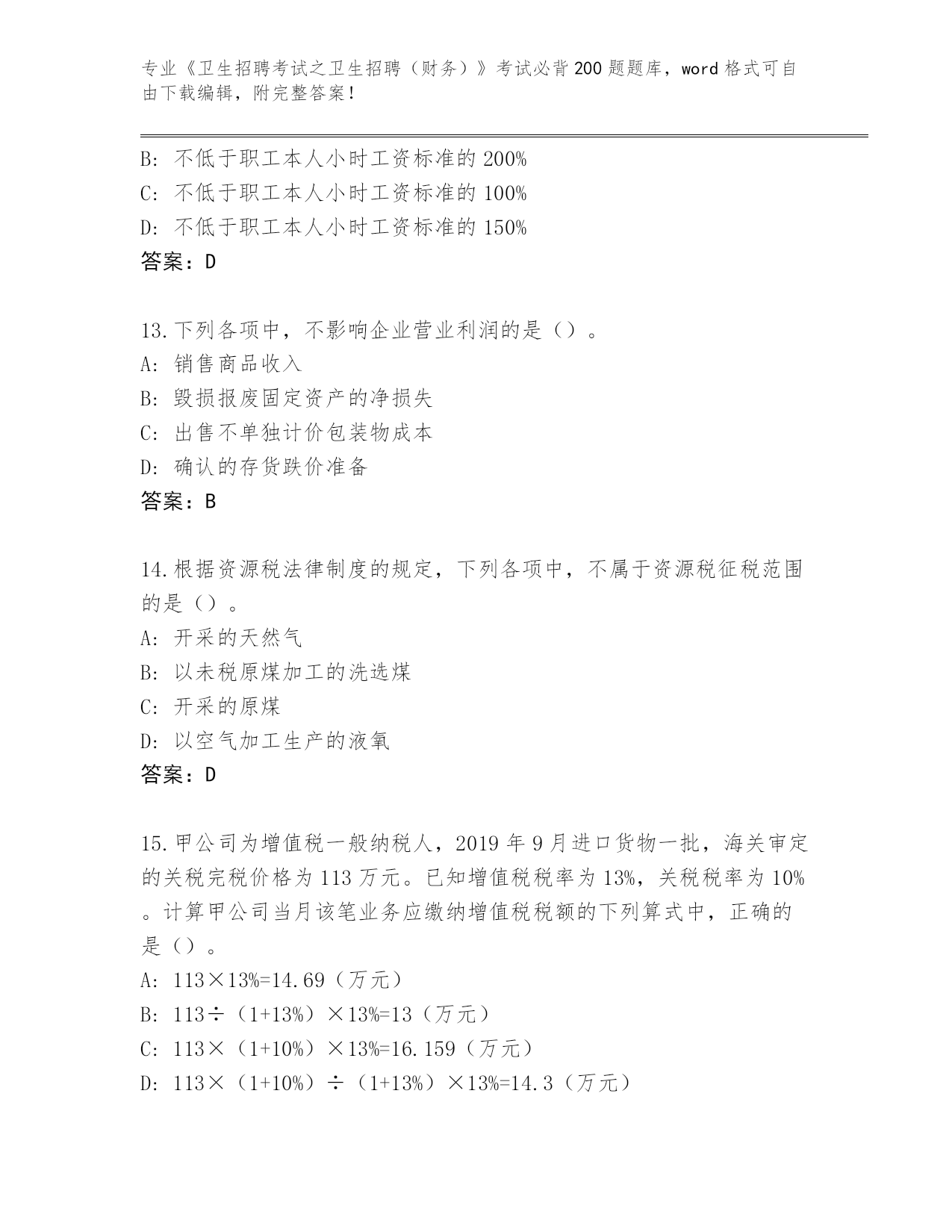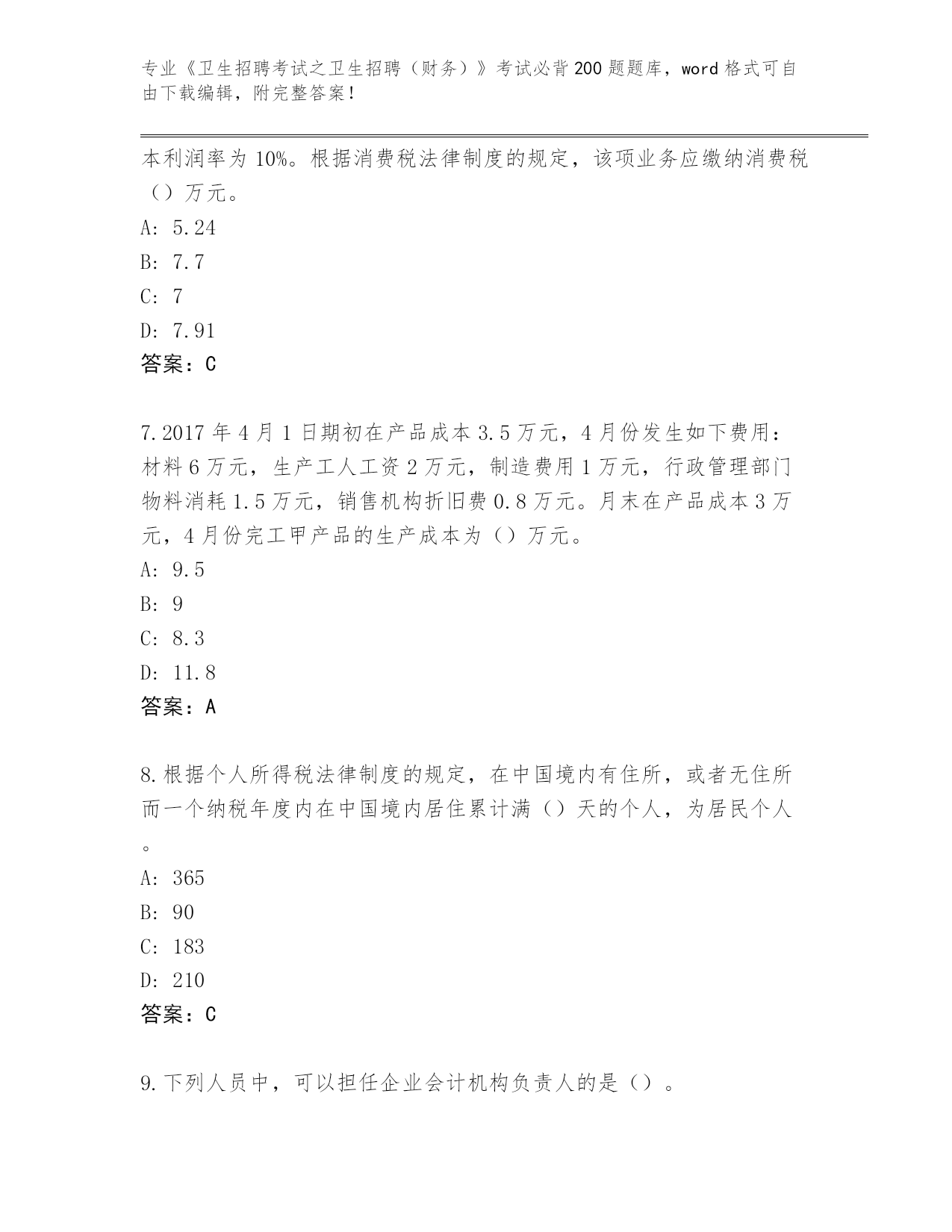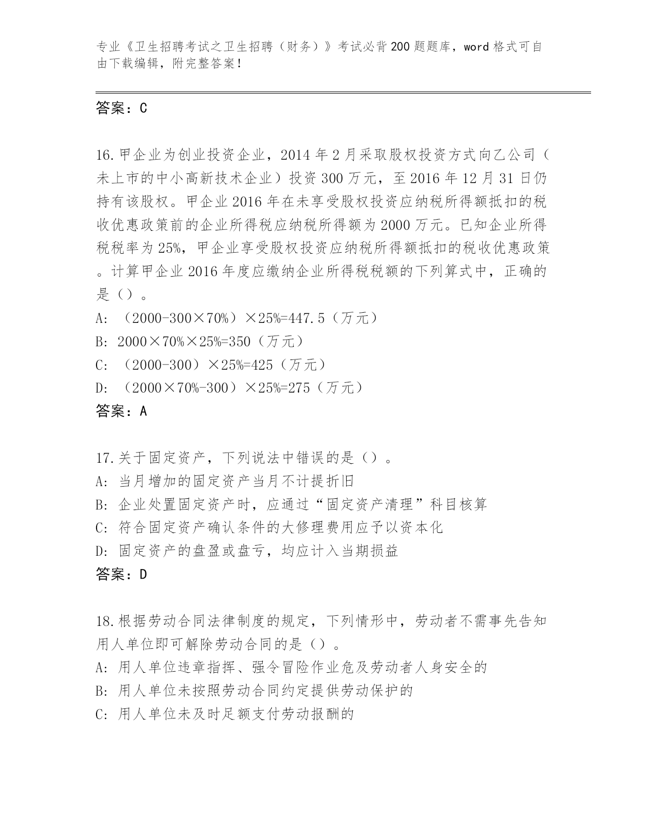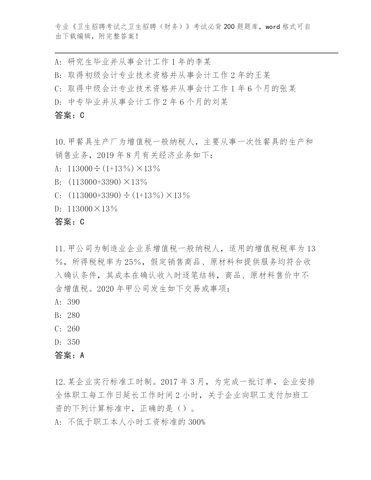 广东省清新区《卫生招聘考试之卫生招聘(财务)》考试必背200题真题及参考答案(能力提升)