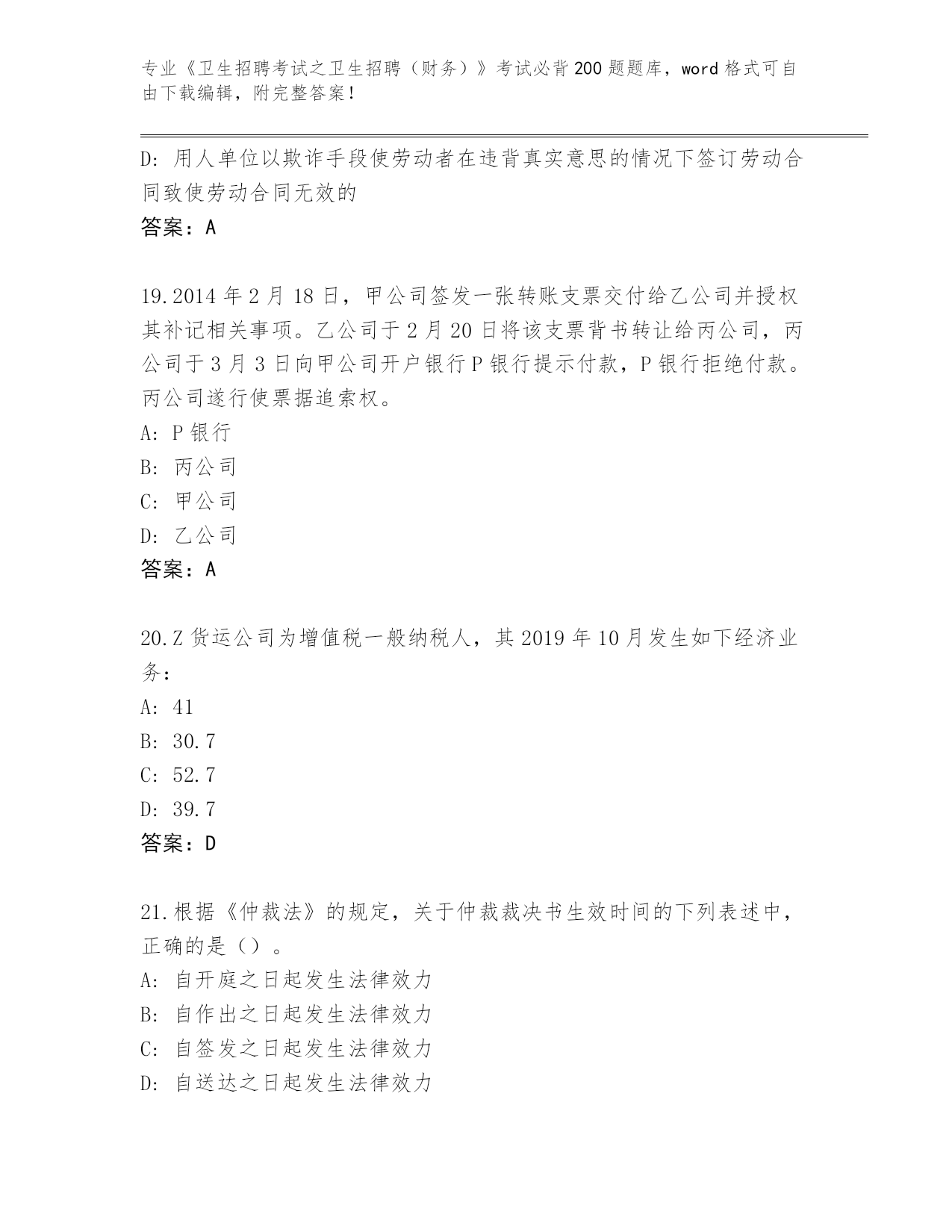 山东省天桥区《卫生招聘考试之卫生招聘(财务)》考试必背200题真题题库【能力提升】