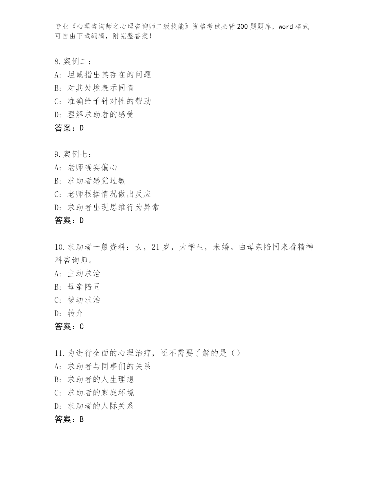 江西省《心理咨询师之心理咨询师二级技能》资格考试必背200题真题【考点提分】