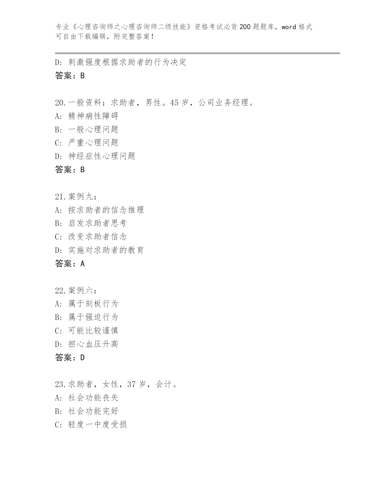 2023-24年江西省莲花县《心理咨询师之心理咨询师二级技能》资格考试必背200题【A卷】