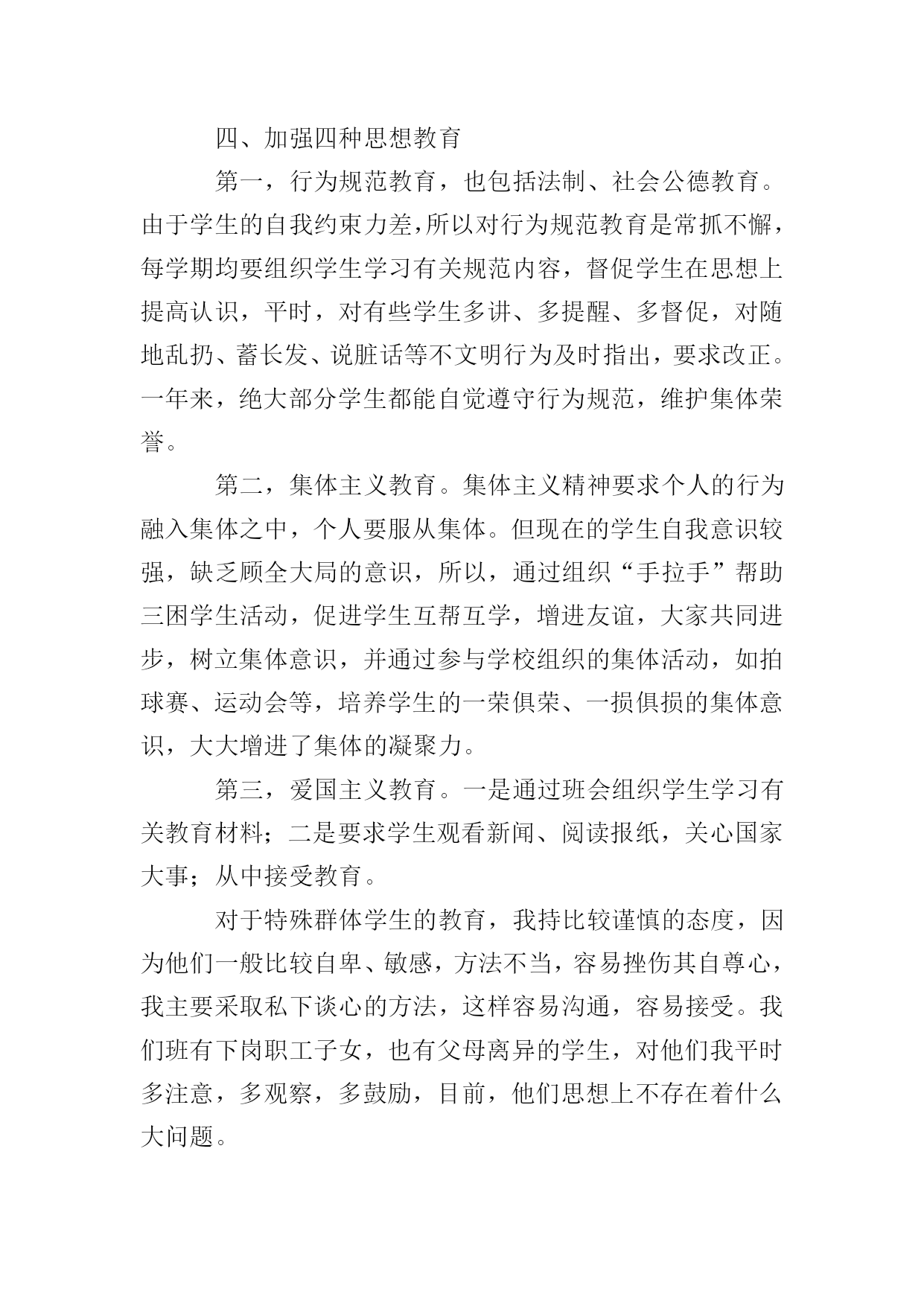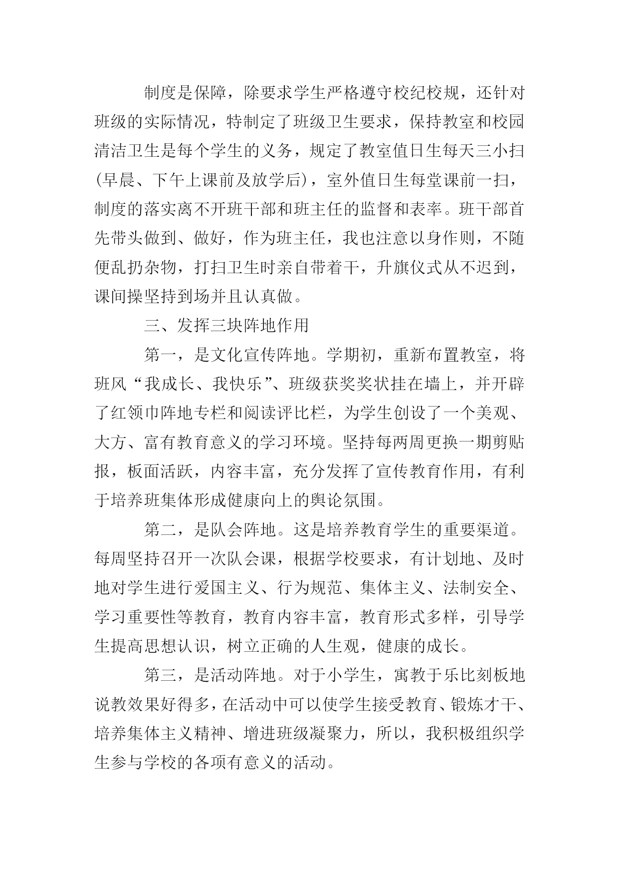 最新小学信息技术课教师工作总结本学期内,我担任了三个月的班主任,一个月的科任教师。在科任教学中,我任三、四年级六个班的信息技术课和二年级一个班的社团以及电教远程教育的接收工作。在班级管理过程中,我努力履行班主任工作职责,认真落实学校布置的各项任务,注重对学生进行教育培养,希望能引导他们健康成长,学一点知识、长一点技能。认真开展创建文明班级活动,积极参与创文明校园活动,在学校组织的多项活动中取得较好的成绩,并荣获学校“队列比赛第一名”、“百题大赛第一名”称号,现将班主任工作总结如下:一、抓好一支队伍建设即进行班干部队伍建设。建设的内容包括思想教育、工作职责教育、工作方法指导。班干部首先要有吃苦耐劳、任劳任怨、为集体奉献的精神,要能以身作则、顾全大局,而这正是独生子女所缺乏的一些品质,所以我把这作为班干部队伍建设的一个重要内容。进行工作职责教育,主要能使班干部责任明确,知道履行什么样的职责,该怎样去做,保持思路清晰。这两类教育主要通过定期召开班委会进行,而工作方法上的指导,主要在实践中进行。对于班干部的工作,不包办,给予他们一个较宽阔的空间,但在工作中我注意监督、观察,不足之处及时指出,并给予指导,如指导对照工作职责,结合班级情况制定阶段性工作计划;如何开展工作等。二、建立二项制度保障制度是保障,除要求学生严格遵守校纪校规,还针对班级的实际情况,特制定了班级卫生要求,保持教室和校园清洁卫生是每个学生的义务,规定了教室值日生每天三小扫(早晨、下午上课前及放学后),室外值日生每堂课前一扫,制度的落实离不开班干部和班主任的监督和表率。班干部首先带头做到、做好,作为班主任,我也注意以身作则,不随便乱扔杂物,打扫卫生时亲自带着干,升旗仪式从不迟到,课间操坚持到场并且认真做。三、发挥三块阵地作用第一,是文化宣传阵地。学期初,重新布置教室,将班风“我成长、我快乐”、班级获奖奖状挂在墙上,并开辟了红领巾阵地专栏和阅读评比栏,为学生创设了一个美观、大方、富有教育意义的学习环境。坚持每两周更换一期剪贴报,板面活跃,内容丰富,充分发挥了宣传教育作用,有利于培养班集体形成健康向上的舆论氛围。第二,是队会阵地。这是培养教育学生的重要渠道。每周坚持召开一次队会课,根据学校要求,有计划地、及时地对学生进行爱国主义、行为规范、集体主义、法制安全、学习重要性等教育,教育内容丰富,教育形式多样,引导学生提高思想认识,树立正确的人生观,健康的成长。第三,是活动阵地。对于小学生,寓教于乐比刻板地说教效果好得多,在活动中可以使学生接受教育、锻炼才干、培养集体主义精神、增进班级凝聚力,所以,我积极组织学生参与学校的各项有意义的活动。四、加强四种思想教育第一,行为规范教育,也包括法制、社会公德教育。由于学生的自我约束力差,所以对行为规范教育是常抓不懈,每学期均要组织学生学习有关规范内容,督促学生在思想上提高认识,平时,对有些学生多讲、多提醒、多督促,对随地乱扔、蓄长发、说脏话等不文明行为及时指出,要求改正。一年来,绝大部分学生都能自觉遵守行为规范,维护集体荣誉。第二,集体主义教育。集体主义精神要求个人的行为融入集体之中,个人要服从集体。但现在的学生自我意识较强,缺乏顾全大局的意识,所以,通过组织“手拉手”帮助三困学生活动,促进学生互帮互学,增进友谊,大家共同进步,树立集体意识,并通过参与学校组织的集体活动,如拍球赛、运动会等,培养学生的一荣俱荣、一损俱损的集体意识,大大增进了集体的凝聚力。第三,爱国主义教育。一是通过班会组织学生学习有关教育材料;二是要求学生观看新闻、阅读报纸,关心国家大事;从中接受教育。对于特殊群体学生的教育,我持比较谨慎的态度,因为他们一般比较自卑、敏感,方法不当,容易挫伤其自尊心,我主要采取私下谈心的方法,这样容易沟通,容易接受。我们班有下岗职工子女,也有父母离异的学生,对他们我平时多注意,多观察,多鼓励,目前,他们思想上不存在着什么大问题。班主任工作存在的问题:一、有时因为其它工作忙而顾此失彼,放松了对班级的管理,出现亡羊补牢的情形。二、学生学习热情不高,主动性较差,也讲了,也教育了,但成效不大,没有好的办法。三、与家长联系不够,在教育过程中还应多和家长沟通,互相配合,共同教育。