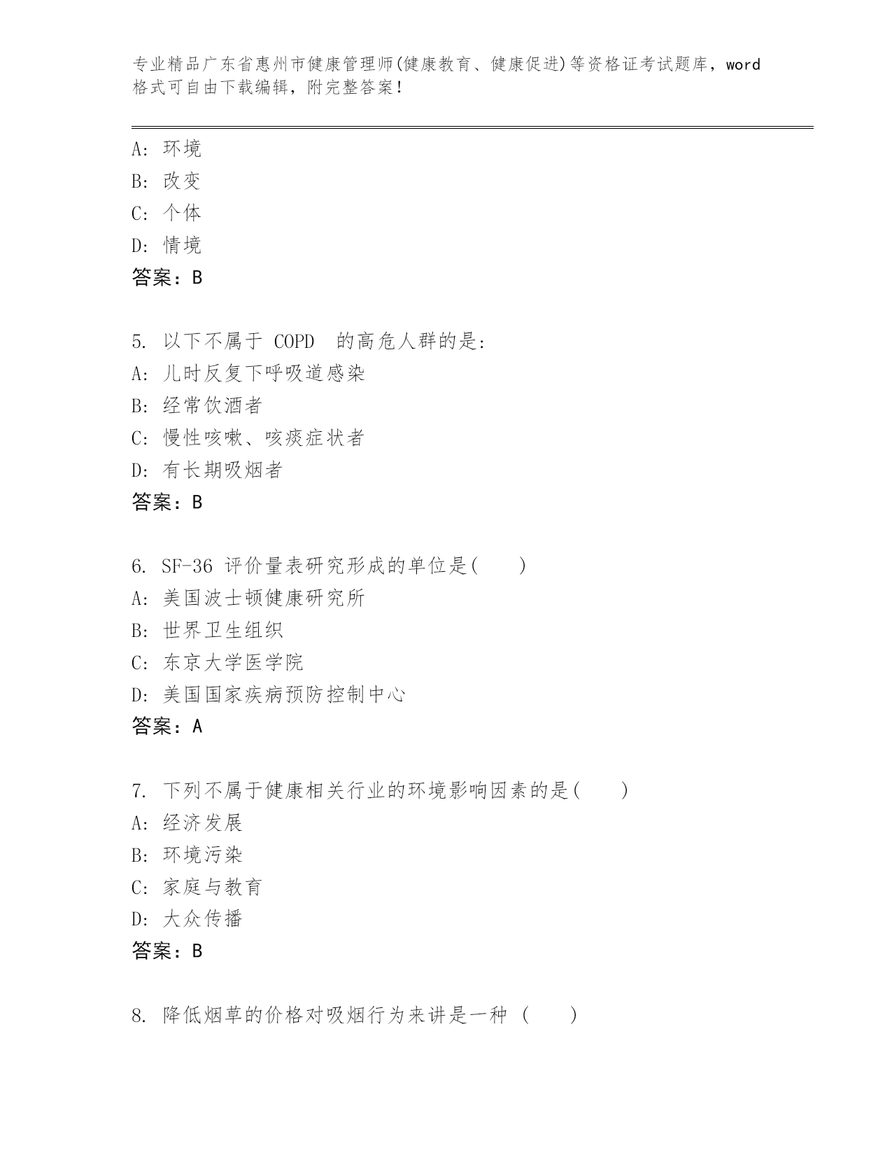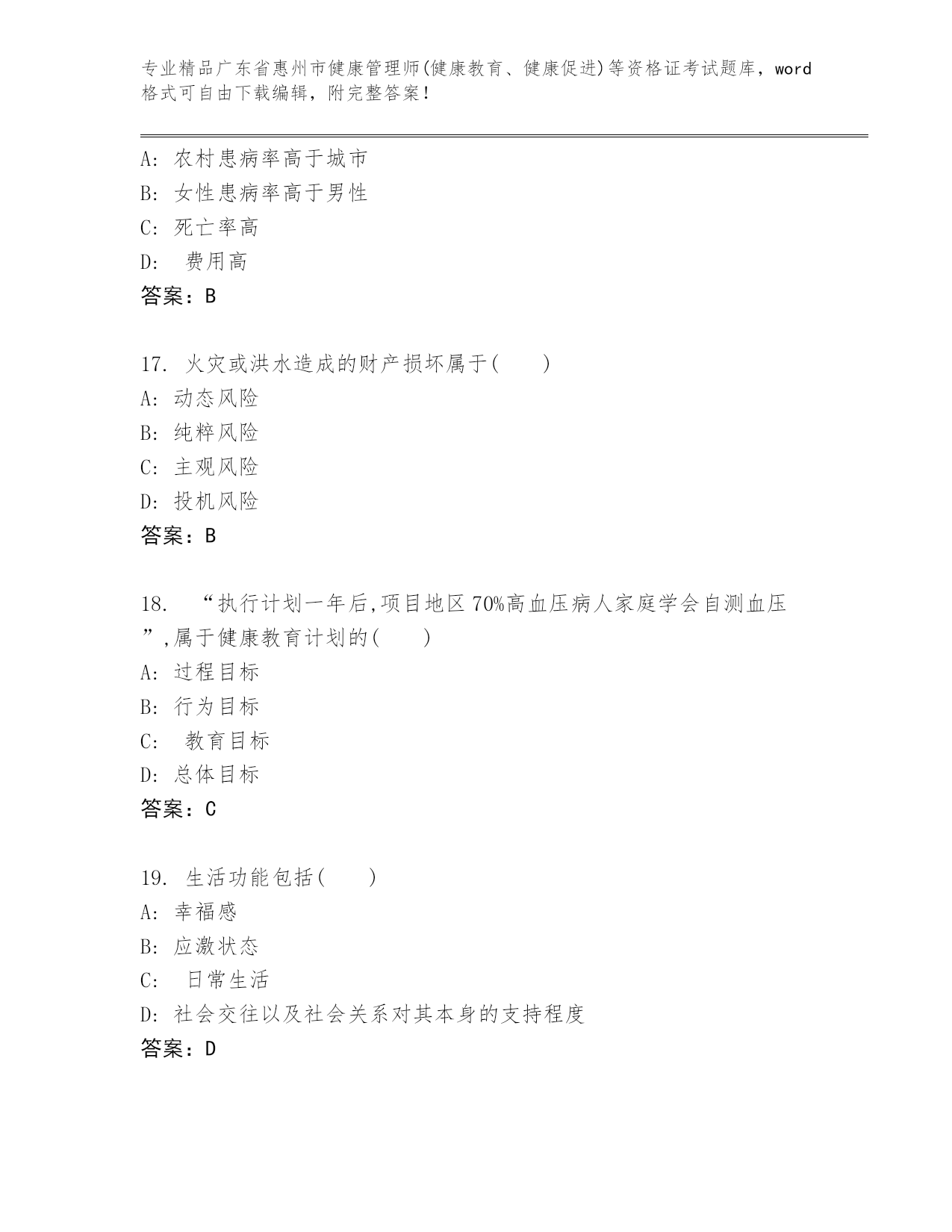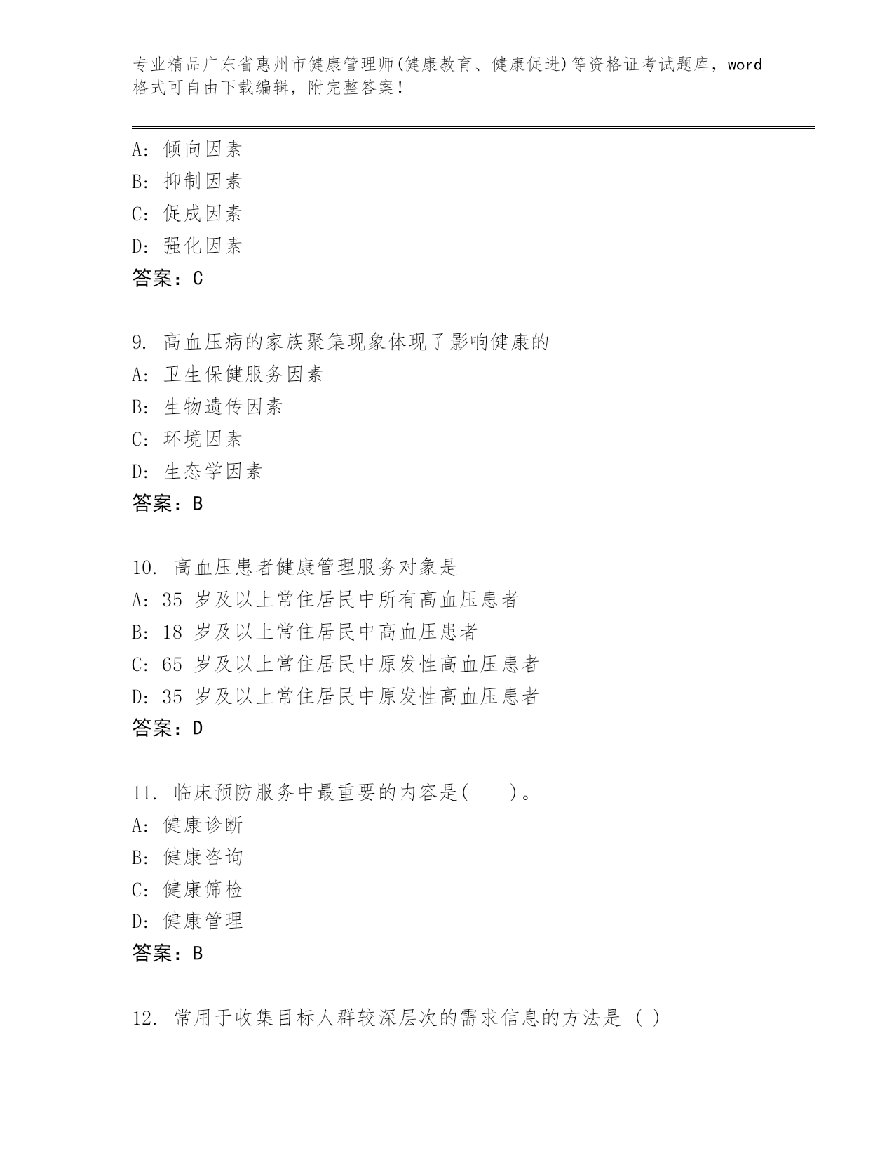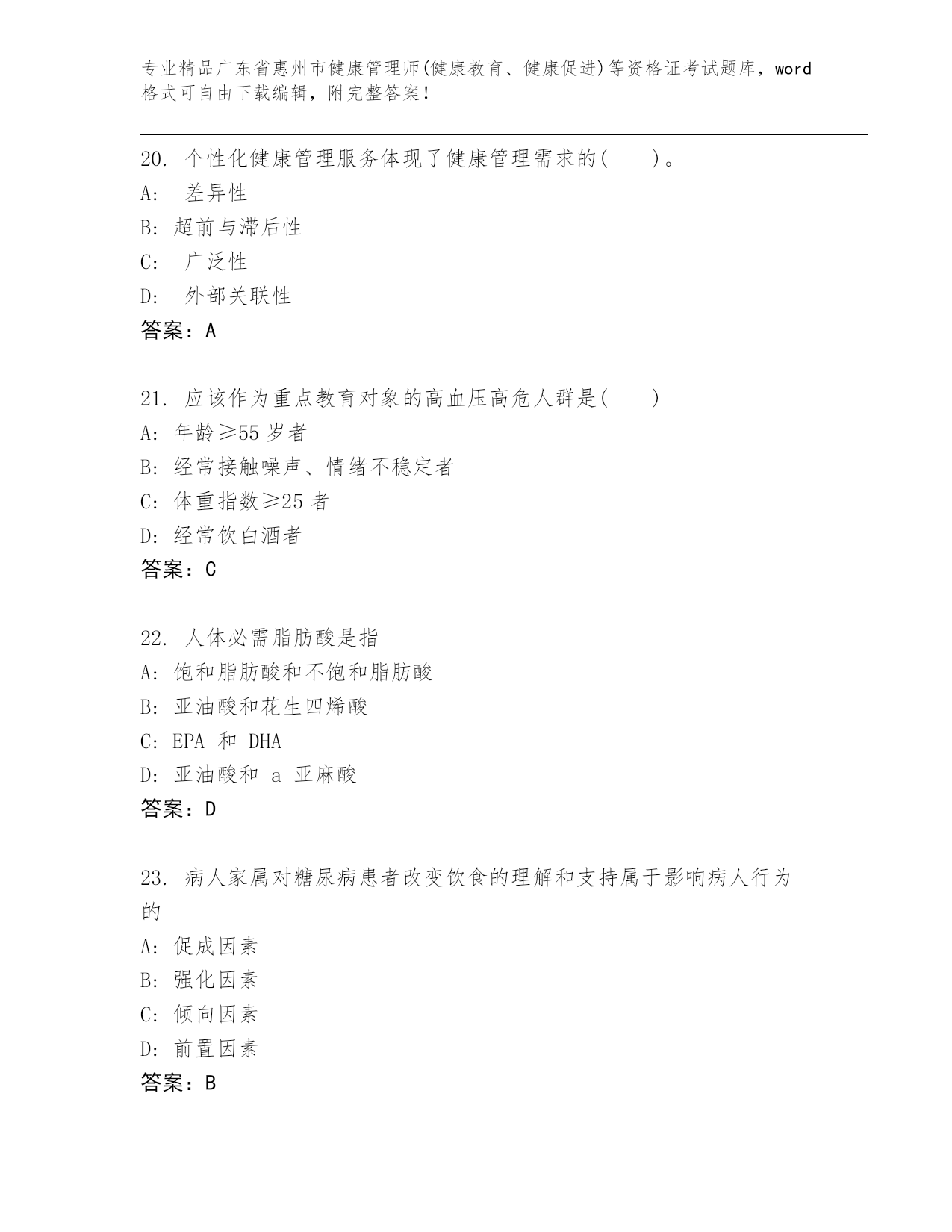 优选广东省惠州市健康管理师(健康教育、健康促进)等资格证考试大全及1套完整答案.docx