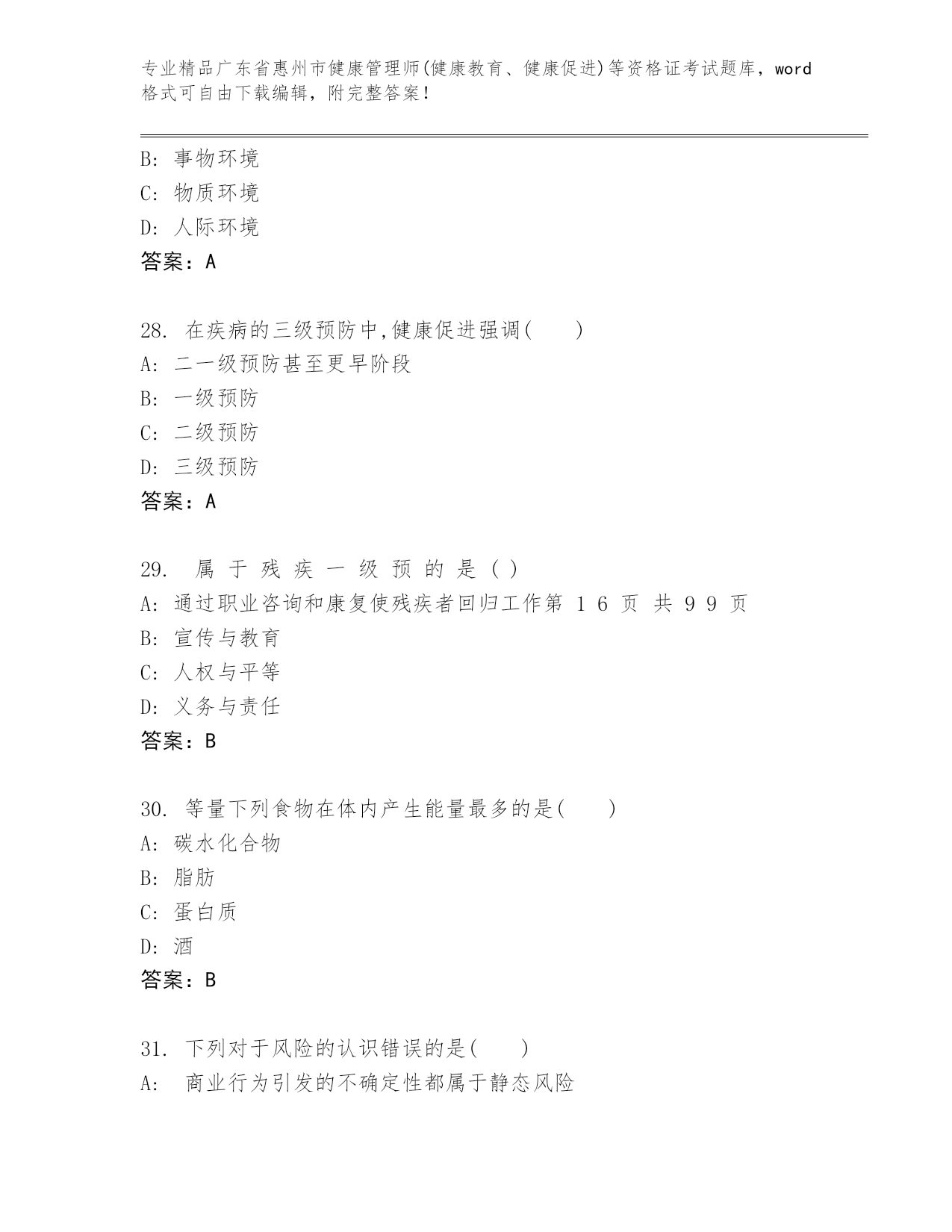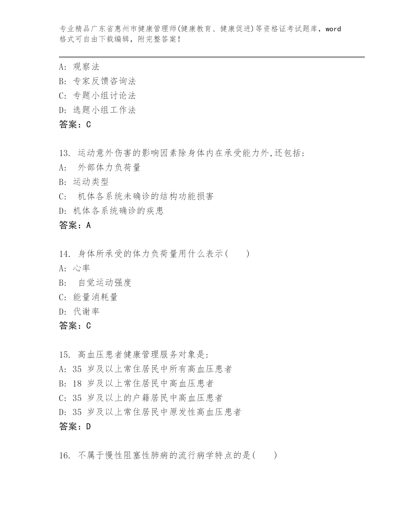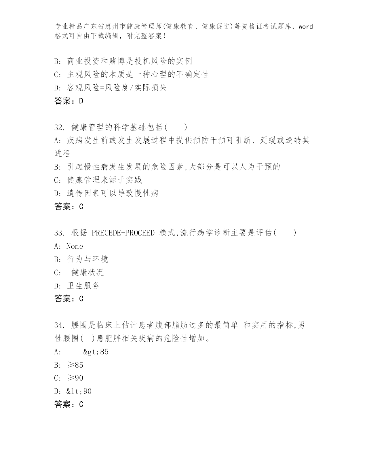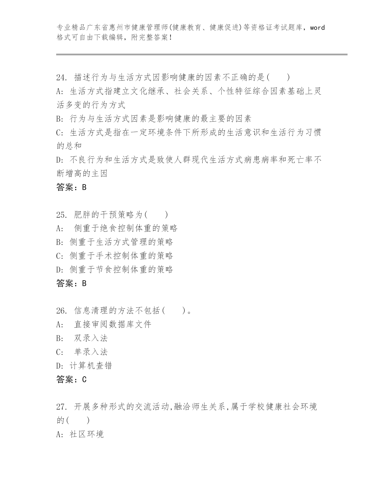 优选广东省惠州市健康管理师(健康教育、健康促进)等资格证考试大全及1套完整答案