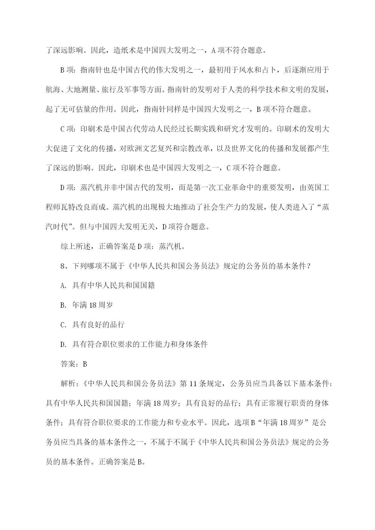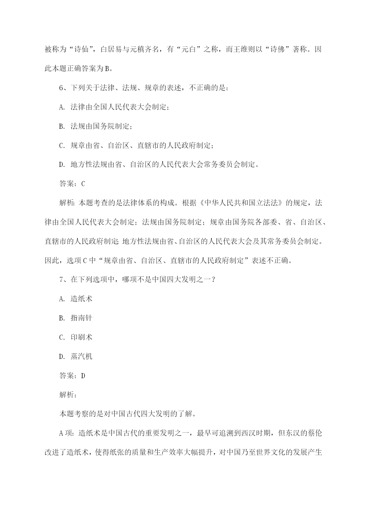 公务员考试重庆市行政职业能力测验行测自测试卷及解答参考