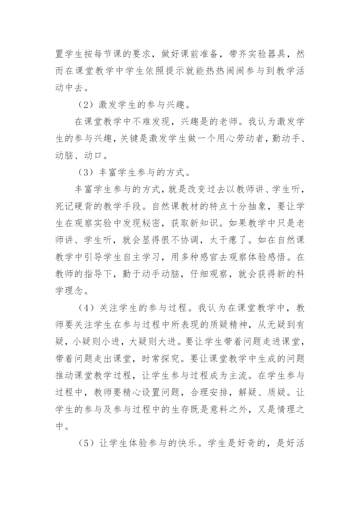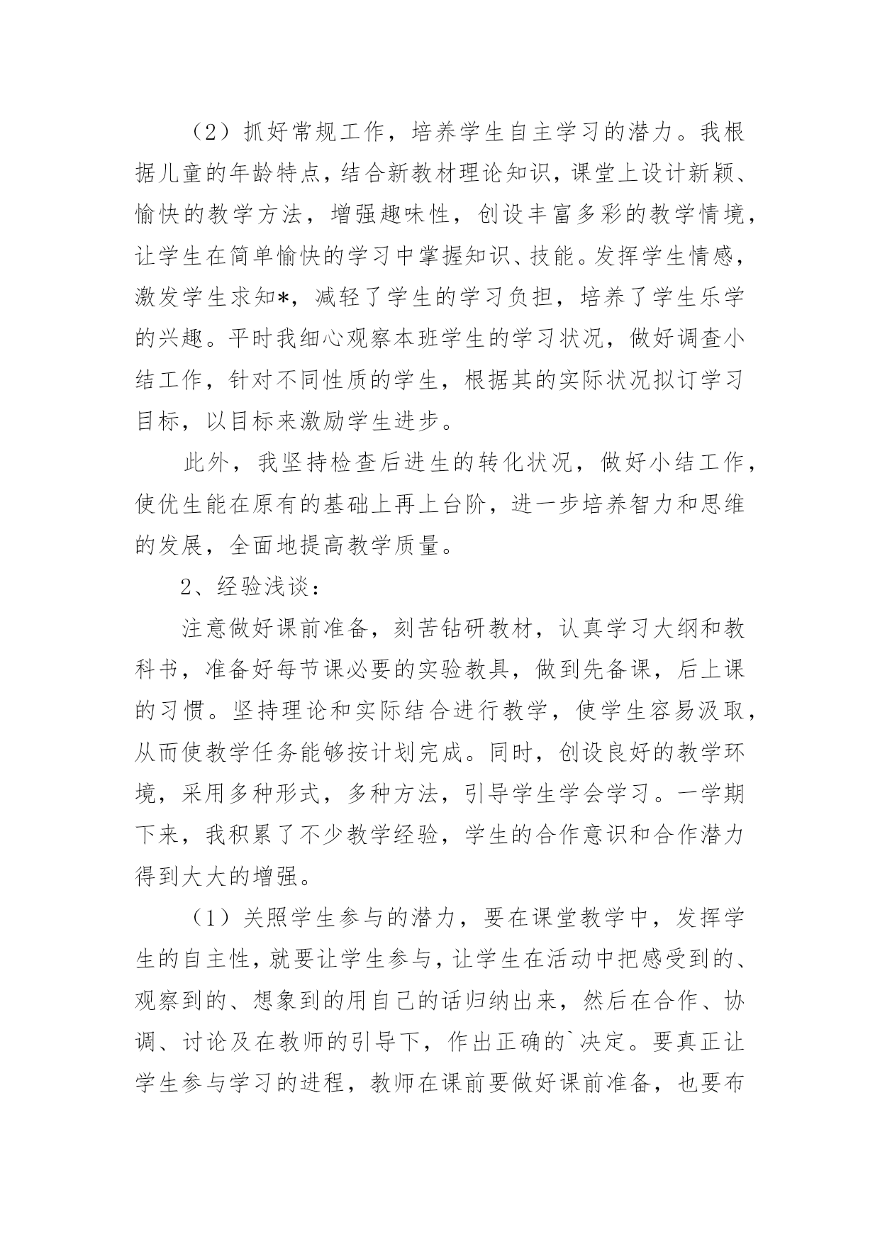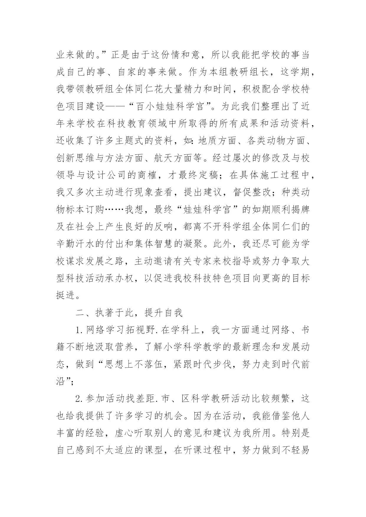 小学科学老师工作总结小学科学老师工作总结(15篇)总结是指对某一阶段的工作、学习或思想中的经验或情况加以总结和概括的书面材料,它能使我们及时找出错误并改正,我想我们需要写一份总结了吧。那么你知道总结如何写吗?下面是小编为大家收集的小学科学老师工作总结,希望对大家有所帮助。小学科学老师工作总结1本学期已接近尾声,回首刚刚走过的这一学期,有太多的体会、收获、汗水与回味。这学期是商一提升的开始,收获的开始。一、收获经历,收获喜悦暑期未尽我们就在王校长"做幸福老师"的讲座培训中拉开了帷幕。开学初大家信心百倍的迎来"最美商一人"的大型活动。与xx电台主持人共同主持我校第一次大型活动的重任放到了我的肩上,我深知代表学校的门面与喉舌,周末晚上加班修改稿子,最终一切顺利,我很欣慰。这是九月值得商一人骄傲的日子,因为通过大家的努力第一次让商一走了出去。王校长在开学初就提出了"请进来,走出去"的理念,请了多位教育界著名的专家来我校指导工作,培训教师,我从中很受精神鼓舞,学到了许多新的理念与方法。也陆续的让老师们出去学习,接受各地新的理念与教学方法。在北师大学习,聆听特级教师们的教学育儿经验,接受教授们和特级教师思想高度的洗礼,真的是受益匪浅,让我懂得了一切教育要用"爱"去唤醒。除了老师们的培训,还有一月一次的家长培训会,让作为家长教师的我感受颇深,真正的拉近了学校与家长,学校与社会的联系,做到了家校合一,促进家长学生的共同进步。"家长开放日"我深知这是第一次把商一展示给社会,于是我精心准备了公开课,那天上午我连上了三个班的英语公开课,虽然有些累,但是得到家长们频频的点头与肯定,我倍感欣慰。之后的督导听课,我依然挤出时间精心准备,得到了督导老师的肯定和对我课程忠恳的指点。本学期最值得我们商一人高兴的是,在王校的'带领指引下,我们全体老师共同努力准备"文明单位"和"绿色学校"的评选,最后的结果还是值得每一位商一人高兴的!而我个人在教课之余,积极准备学校材料,没有完成的拿回家,在安置好女儿饮食起居让她九点入睡后,我再打开电脑进行学校以及我个人进职称的材料,那段时间每晚到凌晨12点多,想想一路过来,自己的付出还是有所回报的。终于再一次次的核审和最终的答辩后,职称得出了可喜的结果。二、教学本学期我带五个班的英语课,我深知责任的重大,孩子多,作业任务量大,我在客观条件无法改变的情况下,尽力不断改变检查方式,分层布置或抽查等,确保完成正常教学任务的同时提高效率。每天三节英语课连上,即使很累,课堂上我也不放弃任何知识点,反复让学生练习巩固,形式多样,抓紧每分每秒让孩子多说多练。我崇尚鼓励式教学,不放弃每一位孩子。在刚接个别班时,英语课堂上几乎没人敢举手发言,要么被动地叫起来声音却很小。于是课堂上,我尽量变化形式,调动孩子们的积极性,鼓励着每一位学生。几周时间,原来不爱发言的学生也踊跃举手对话了,甚至有些时候孩子们的热情让我感到小小的压力,生怕因为时间关系对叫不到发言的孩子一种打击,同时我倍感欣慰的是,这帮孩子们终于乐于开口说英语了。在听过北京一所小学的英语课后,我感触很深,如专家所说"教学不能局限于应试考试之中,那我们教育方向就走偏了。"我想以后也尽量尝试用全英教学,对于孩子和自身都是一种锻炼,从长远来看对孩子英语语言学习英语思维形成是肯定有帮助的。三、困惑与期望相信每一位教师都是尽力想让所教班级成绩优异,我也同样。只是所带班级多,人数大,精力和时间分布较散,没有集中点,这对于每班一周三节的主课来说,确实心有余而力不足的感觉。客观条件的存在,确实需要我们两个动动脑筋,监督检查力度不够,就会造成成绩提高缓慢。这也是我最为困惑的一点,因为毕竟我们本职工作就是教学。因此,我想在新的学期,要在教学方法上大胆创新,特别对于学生的检查评价力度要想办法提高。我想只有鼓动家长和老师一起配合好,课堂课下都抓好了,学生成绩才能顺利成章的提高。总之,本学期是在忙碌与收获中度过的,辛苦但又充实。领导的新理念,专家的有效方法,让我内心尤为敬佩。让我们关爱学生,关爱每一位身边的人,就让我们商一人携手努力,相信不久的将来商一一定会成为东区一颗耀眼的明珠!爱的路上,你我任重道远~小学科学老师工作总结2紧张而忙碌的一学期教学工作已经结束,细细回顾一学期的教学工作的得与失时,我深深的感到一份耕耘一份收获,当然也有很多的遗憾。教育终究是一门遗憾的艺术,为了能进一步的提高教学质量,取得更好的教学效果,我总结了以下几点:一、基本状况:本班大部分学生都比较勤学,上进心强,学习目的明确,有良好的学习习惯和科学观念。但仍有小部分学生学习、纪律都较松散,学习潜力较弱。二、主要成绩:1、具体措施:(1)全面贯彻党的教育方针,抓好学生思想教育,培养学生自主探究的潜力。针对本班学生的实际状况,开学初,用心做好学生