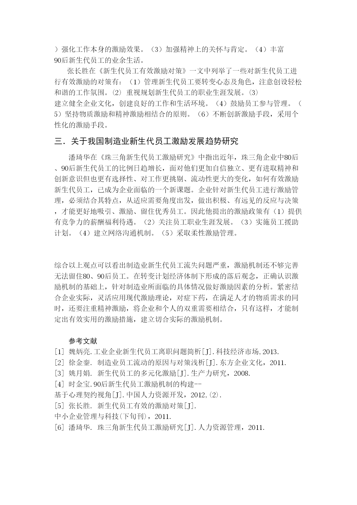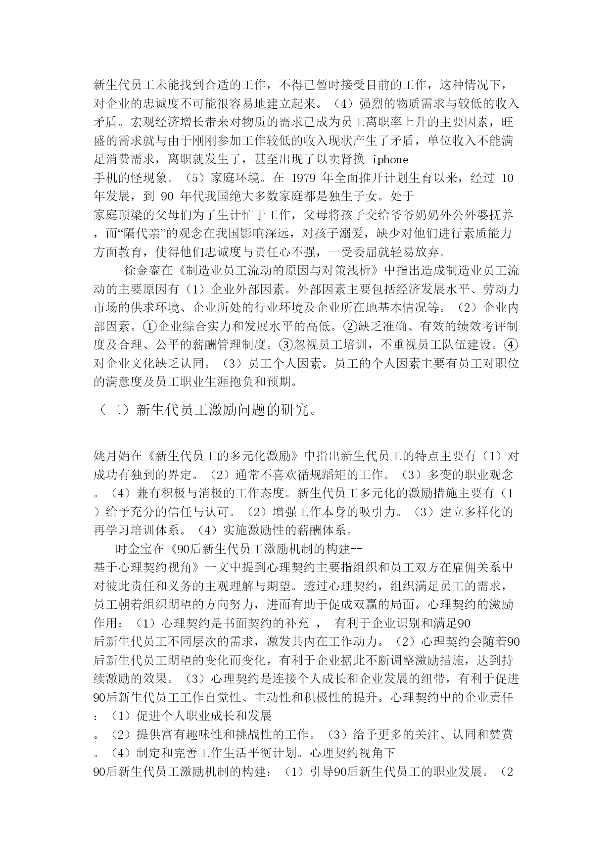 2022制造业新生代员工激励问题研究的文献综述.doc