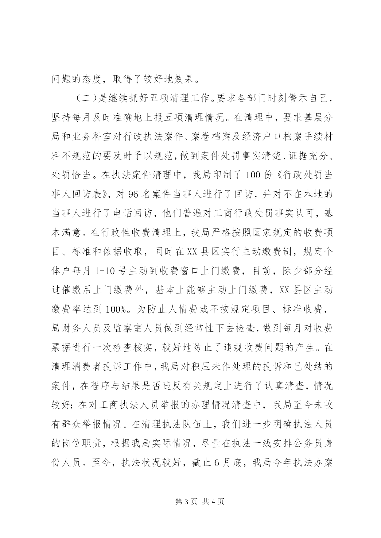 第PAGE\*Arabic\*MERGEFORMAT4页共NUMPAGES\*MERGEFORMAT4页工商局综合治理述职报告范文今年以来,我局综治工作开局良好,在开发区综治委和市局党组的正确领导和有关部门的精心指导下,以邓小平理论和三个代表重要思想为指导,以保持共产党员先进性教育活动为动力,以维护社会和我局的稳定为根本,按照巩固、完善、规范、提高的要求,并结合盛市局关于三整顿工作,大力开展食品安全整治以及为农护农工作,维护了消费者的身心健康,排除了一定的安全隐患,有效地防止了安全事故的发生,各项安全生产工作指标都顺利通过了上级的检查。现就我局开展综合治理工作主要情况述职如下:一、领导重视,健全机制,确保综治工作顺利开展今年来,我局以领导责任制为龙头、以目标管理为核心、以争先创优为目标、以一票否决为保证,始终把社会治安综合治理作为重点工作来抓,明确目标,量化考核,将综治工作与行政职能结合起来,强化落实,进行细化到每一项工作环节。年初,结合我局实际,成立了综合治理安全生产监管工作领导小组,由我担任组长,主管局长***同志为副组长,机关科室及分局负责人为小组成员。同时,我与各部门负责人签订了综合治理安全生产责任状,部门负责人与直接监管人又签订分管责任状,划定责任范围,明确工作任务。坚持谁主管,谁负责;谁发证,谁负责;谁检查,谁负责的安全生产责任制。实现了一把手负总责,层层有任务,人人有责任,并将责任分工网络图公示上墙。日常管理中做到每月有检查、每季度专题会议研究和部署综治安全工作,针对存在的问题采取有效措施来防范整改,切实做到了看好自己的门、管好自己的人、办好自己的事,有效地促进了我局综治工作的开展。二、结合保持共产党员先进性教育活动,抓好队伍作风建设。(一)是结合保持共产党员先进性教育活动,继续开展队伍教育整顿工作。今年,我局要求干部职工结合自己的工作实际,认真查找工作中存在的问题,剖析产生问题的原因,找到问题的症结所在。在剖析问题时要求做到四不怕,即:剖析自己不怕严。从我做起,严于律已,不护短、不遮掩,敢于正视和认真纠正自己的问题。听取意见不怕刺。广泛听取同志们意见,正确对待批评,特别是刺耳的批评,本着有则改之,无则加勉的态度正确对待。自我批评不怕丑。敢于亮出自己存在的问题。触及灵魂不怕痛。要触及思想灵魂深处,找到问题本质,剖析透彻,挖到要害痛处,从世界观上解决问题。通过自查、互查、互议,开展批评与自我批评等方式,切实达到了相互沟通、互相信任、互相提高、互相促进的目的。同时采取领导点、组织促、群众提、自己谈、互相帮等形式,查摆在政治思想、工作作风、宗旨意识和服务态度等方面存在的突出问题。通过查摆剖析,进一步提高了干部职工对队伍作风教育整顿工作重要性和必要性的认识,端正了查摆问题的态度,取得了较好地效果。(二)是继续抓好五项清理工作。要求各部门时刻警示自己,坚持每月及时准确地上报五项清理情况。在清理中,要求基层分局和业务科室对行政执法案件、案卷档案及经济户口档案手续材料不规范的要及时予以规范,做到案件处罚事实清楚、证据充分、处罚恰当。在执法案件清理中,我局印制了100份《行政处罚当事人回访表》,对96名案件当事人进行了回访,并对不在本地的当事人进行了电话回访,他们普遍对工商行政处罚事实认可,基本满意。在行政性收费清理上,我局严格按照国家规定的收费项目、标准和依据收取,同时在XX县区实行主动缴费制,规定个体户每月1-10号主动到收费窗口上门缴费,目前,除少部分经过催缴后上门缴费外,基本上能够主动上门缴费,XX县区主动缴费率达到100%。为防止人情费或不按规定项目、标准收费,局财务人员及监察室人员做到经常性下去检查,做到每月对收费票据进行一次检查核实,较好地防止了违规收费问题的产生。在清理消费者投诉工作中,我局对积压未作处理的投诉和已处结的案件,在程序与结果是否违反有关规定上进行了认真清查,情况较好;在对工商执法人员举报的办理情况清查中,我局至今未收有群众举报情况。在清理执法队伍上,我们进一步明确执法人员的岗位职责,根据我局实际情况,尽量在执法一线安排公务员身份人员。至今,执法状况较好,截止6月底,我局今年执法办案18起,其中万元以上案件2起,罚没款8万余元,所有案卷都归档齐全,未出现一起引起行政诉讼案件,也未出现一次因执法不当引起的群众纠纷。(三)是认真做好群众来信来访工作,对信访件做到件件有回音,事事有结果。去年以来,我局共接到信访件三件,一封为匿名信件,二封为署假名信件。针对这三封信访件,我局都及时进行了调查核实,经查证,均为故意捏造,同时我们将调查情况如实报告了市局。在处理好信访工作的同时,我们还非常重视内部矛盾的协调,在基层分局,有两位同志由于工作和生活中出现了磨擦,产生矛盾,甚至发生争执。在这种