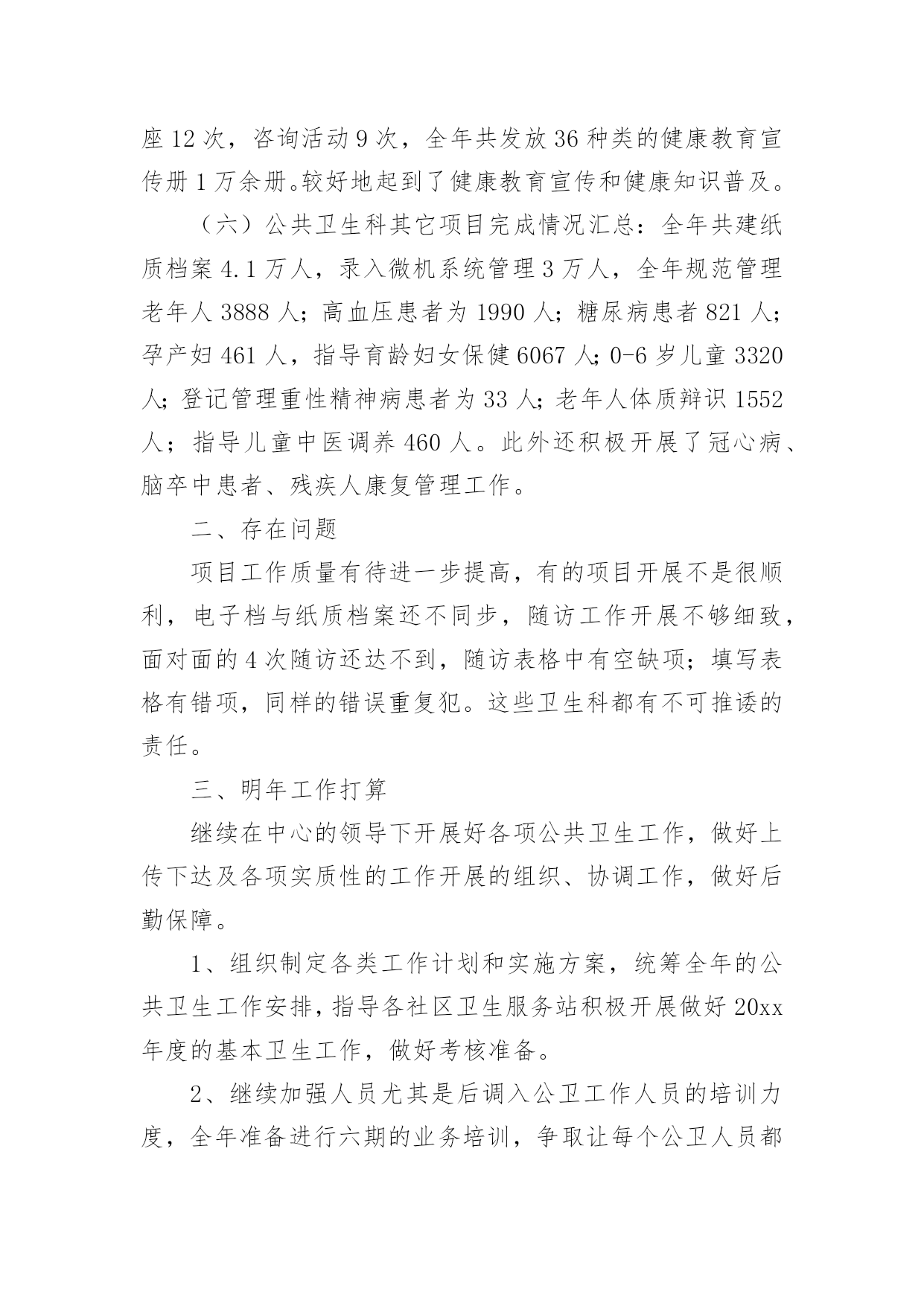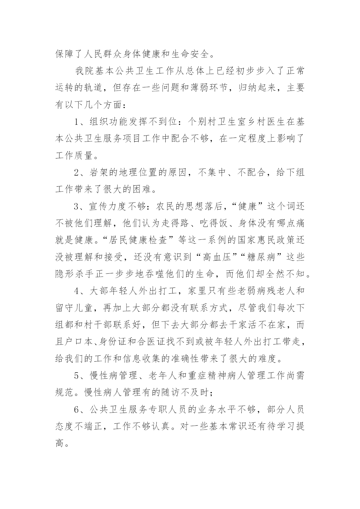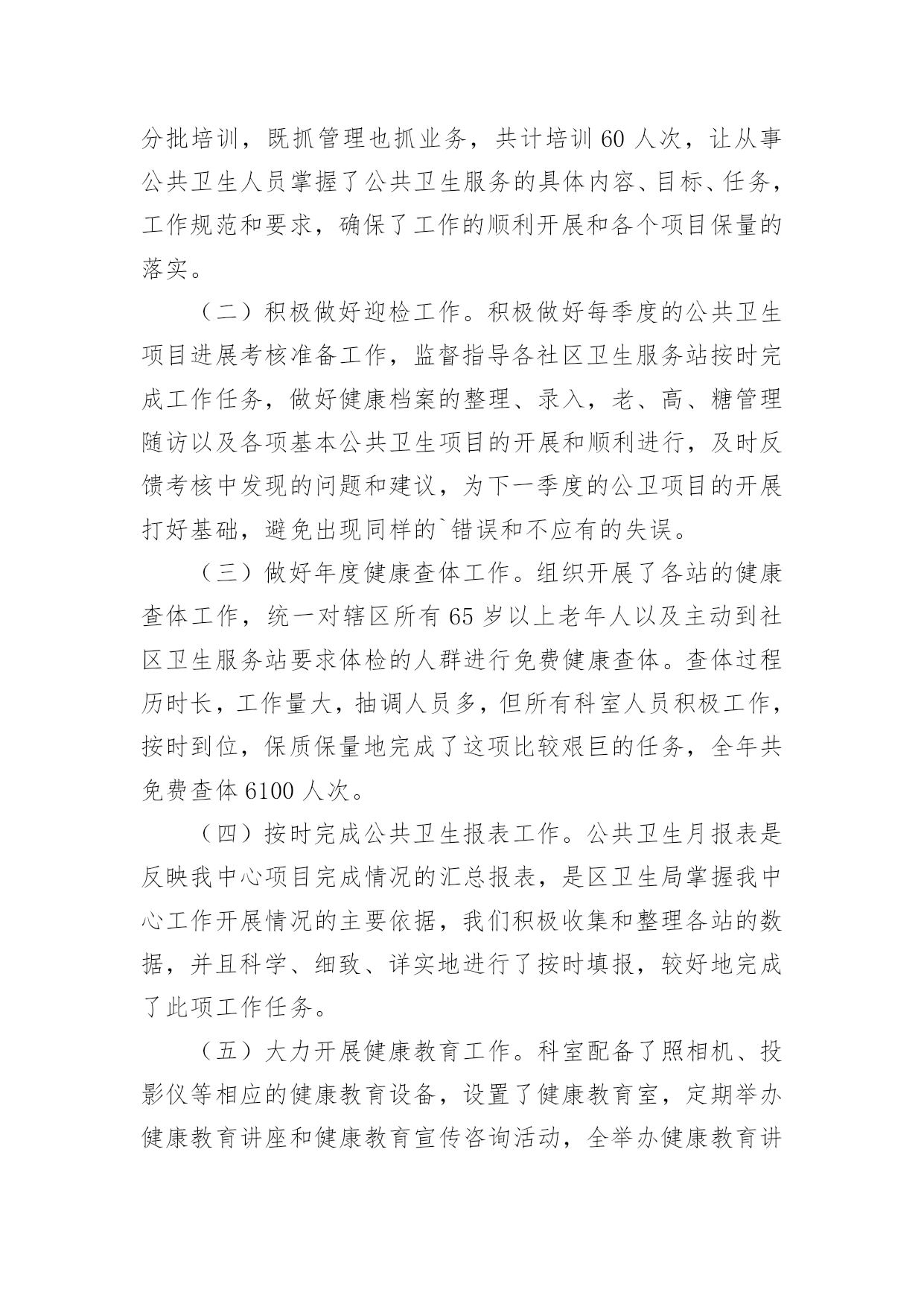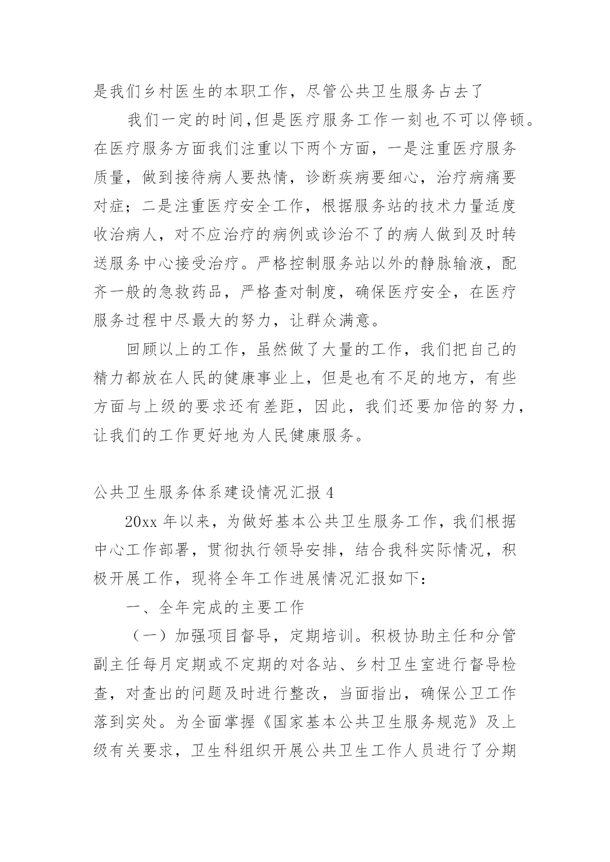 公共卫生服务体系建设情况汇报无论是在学校还是在社会中,用到汇报的地方越来越多,汇报是将某个项目的工作情况和工作结果向领导进行汇报,但是,每次要写汇报的时候都无从下手?以下是小编为大家收集的公共卫生服务体系建设情况汇报,仅供参考,希望能够帮助到大家。公共卫生服务体系建设情况汇报1王宅镇卫生工作,划分责任服务区。一年来,根据制定的年度工作目标计划,主要做了以下工作:1.根据卫生院干部人员变动等的情况,及时调整卫生管理领导小组组织。对社区责任医生实行全新的'“网格化管理,组团式服务”,全科医生签约服务。落实责任,开展工作。2.做好第四轮参合人员健康体检工作。成立领导小组,下设办公室。对新型农村合作医疗60岁以上老人和20xx年度未参加第四轮农民体检的18-60岁的人群。中小学生、儿童等对象。3.社区卫生服务方面。按照站建设计划,开展正常服务4.在完成王宅中心卫生院辅助用房建设,投入使用后,进行门面和围墙改造工程,现已基本完成建设任务。5.公共卫生方面。开展健康教育,并对卫生联络员作及时培训,邀请有关的领导和专业技术人员讲课。开展咨询6次。结合传染病发生情况,重点开展对老人、高血压患者、糖尿病患者、及其他慢性病患者随访管理。对重性精神病患者实行规范管理。对辖区内的艾滋病进行全面调查摸底和管理。6.进行血吸虫病采血调查。对湖南、安徽、江西等外来务工人员实行登记、采血。7.继续有条不紊地开展免费为待孕农村妇女实施增补叶酸,提高叶酸服用率和依从率,促进孕妇的管理。8.卫生监督协管工作配合上级部门完成辖区饮用水卫生、传染病防控工作开展专项监督检查工作。开展食品安全方面工作、重点打击食品非法使用添加剂行为。9.联合监督所对查处非法牙科诊所、无证行医。今后,继续按照县政府工作要求,积极开展辖区公共卫生服务和各级重要公共卫生项目的工作任务,努力把工作做得更好。公共卫生服务体系建设情况汇报220xx年,我院在镇政府、县卫计局的正确领导下,严格按照《国家基本公共卫生服务规范(20xx版)》的要求执行,加强内部管理,狠抓基本公共卫生服务项目工作,充分调动全院职工的工作积极性和主动性,适时调整了医院公共卫生科人员配置,优化组合,取得了较好的效果,现将我院20xx年度基本公共卫生服务工作总结及20xx年工作开展如下:一、加强领导、制定基本公共卫生服务项目计划,得到了各位领导的重视,结合我镇实际,我院成立了基本公共卫生服务项目领导小组,并对领导小组成员做了具体分工。二、强化培训、定期督导。今年以来,我院不定期的对村卫生室人员进行公共卫生服务项目工作的培训,并多次进行督导检查,保证了各项公共卫生工作按照计划完成。三、基本公共卫生服务项目工作开展落实情况1、居民健康档案管理截止12月底全镇共建立居民健康档案284份。2、健康教育:按照规范的安排,发放各类宣传资料。开展公共卫生相关培训6次,播放影音资料12次,健康教育宣传栏66期(院12期,村卫生室54期),开展健康教育宣传活动12次。3、计划免疫:免费接种乙肝疫苗、卡介苗、脊灰疫苗、百白破疫苗、麻疹类疫苗(麻风、麻腮风)、甲肝疫苗、流脑疫苗、乙脑疫苗、白破二联等国家免疫规划疫苗,未发现及报告预防接种中的疑似异常反应,对辖区内计划免疫疫苗预防疾病进行主动监测,本年度无病例发生。4、儿童保健管理与健康情况0-6岁以下儿童保健管理情况:20xx年我镇0—6岁儿童294人,保健管理282人。5、孕产妇管理与健康:今年我镇共有孕产妇213人,早孕建卡207人。6、老年人保健:本年度总计管理65周岁以上老年人1123名,并为23人65岁以上的老年人提供了生化检查。7、慢性病管理:主要是针对高血压、糖尿病等慢性病人群进行健康指导。对35岁以上人群实行门诊首诊测血压。对确诊高血压和糖尿病的患者进行登记管理,定期进行随访(高血压随访1660人次,糖尿病24人次),随访的.同时免费为慢性病患者提供随机血糖监测,并针对辖区慢性病人群开展连续科学的健康评估、干预措施等,并对他们进行体格检查及用药、饮食、运动、心理等健康指导。8、重性精神病管理:成立了重性精神疾病领导小组,对我镇重性精神疾病进行排查、摸底,掌握重性精神疾病人复发、住院、迁出、死亡、走失等情况,对辖区内确诊的17例重性精神疾病患者进行随访管理,重性精神病随访68次。9、传染病及突发公共卫生事件报告和处理:一是依据《传染病防治法》《传染病信息报告管理规范》以及传染病报告与处理规范要求,建立健全了传染病报告管理制度。二是定期对本单位人员进行传染病防治知识、技能的培训;采取多种形式对辖区居民进行传染病防治知识的宣传教育,提高了辖区居民传染病防治知识的知晓率。10、卫生监督协管工作:在院领导下认真贯彻落实上级有关文件精神,紧紧围绕以保证人民群众食品安全、学校卫生、公共场所卫生、