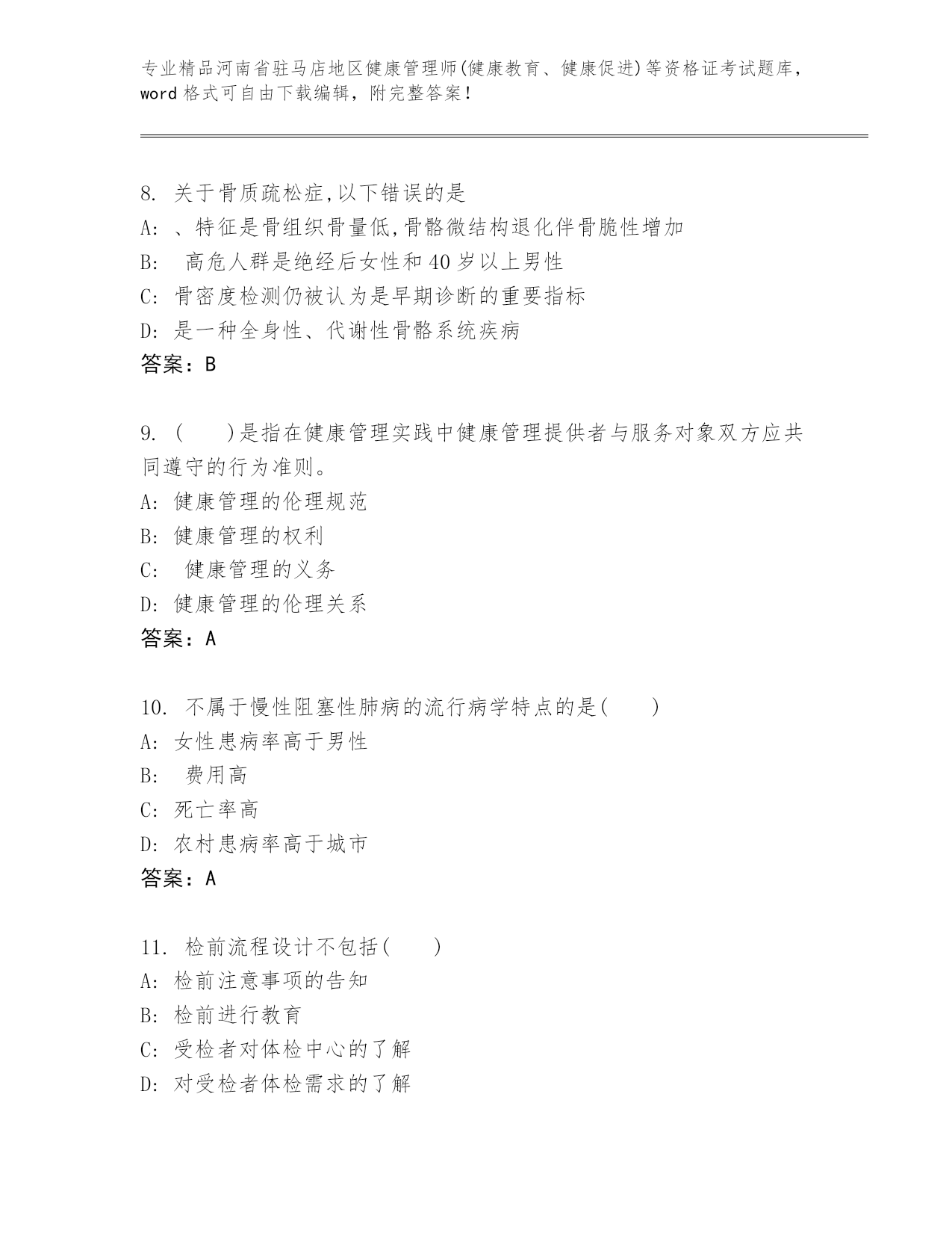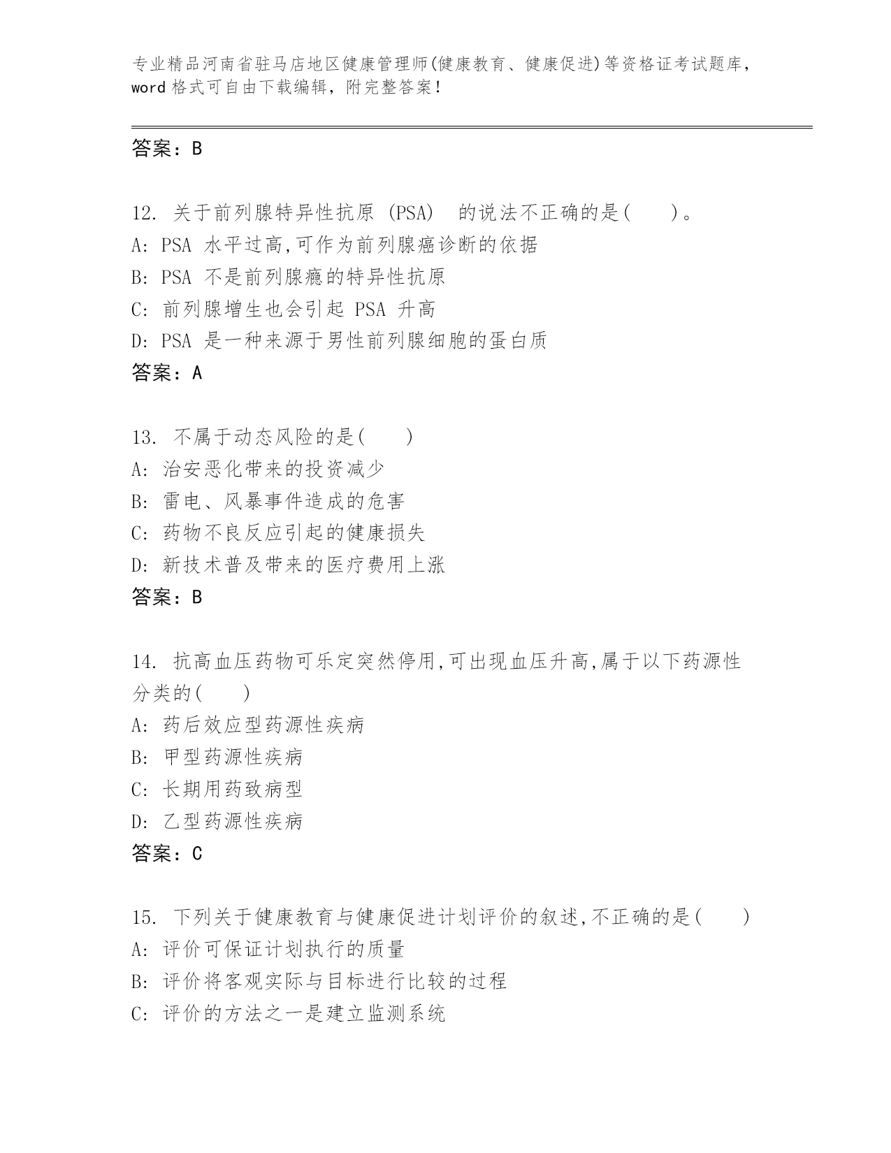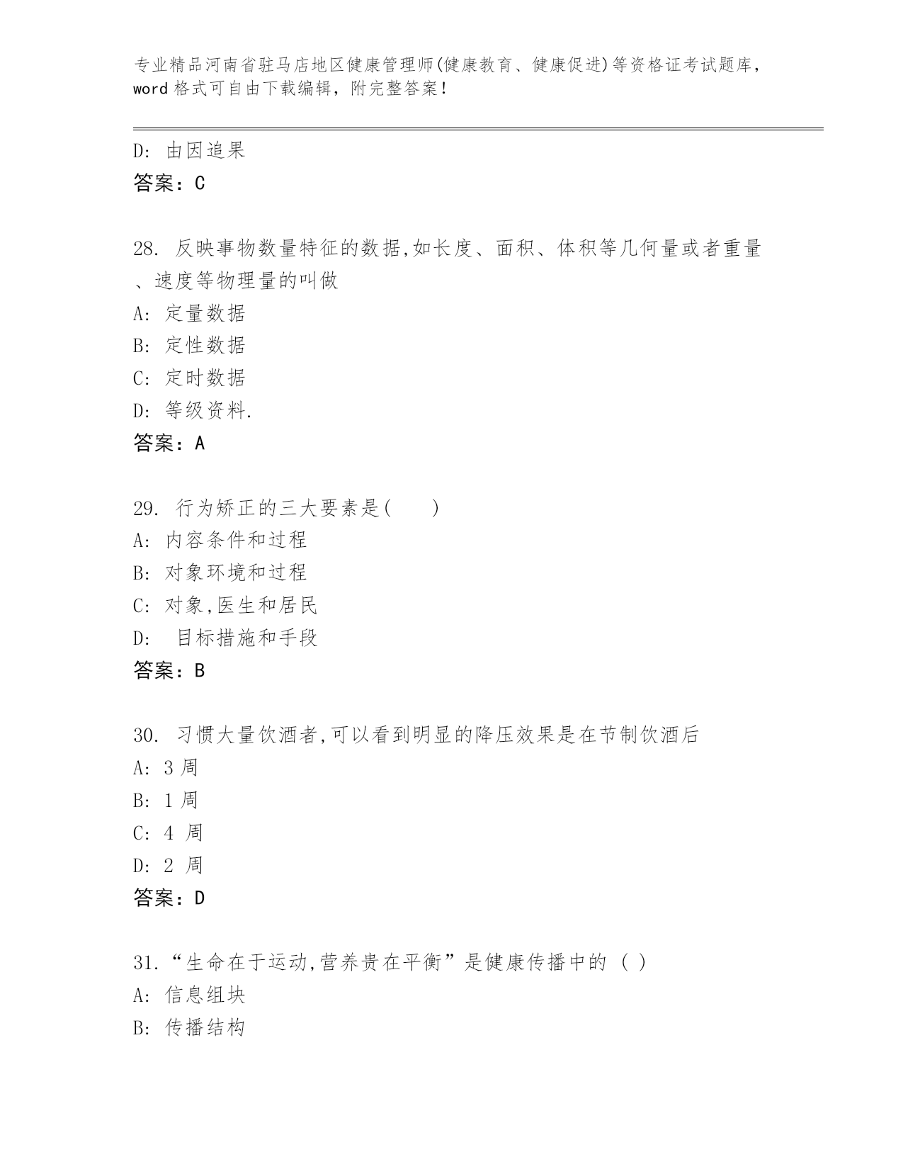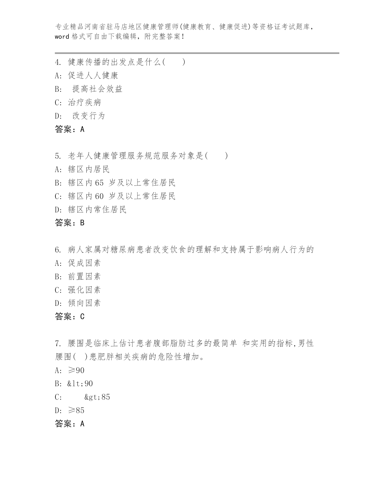 历年河南省驻马店地区健康管理师(健康教育、健康促进)等资格证考试真题题库(名师推荐)