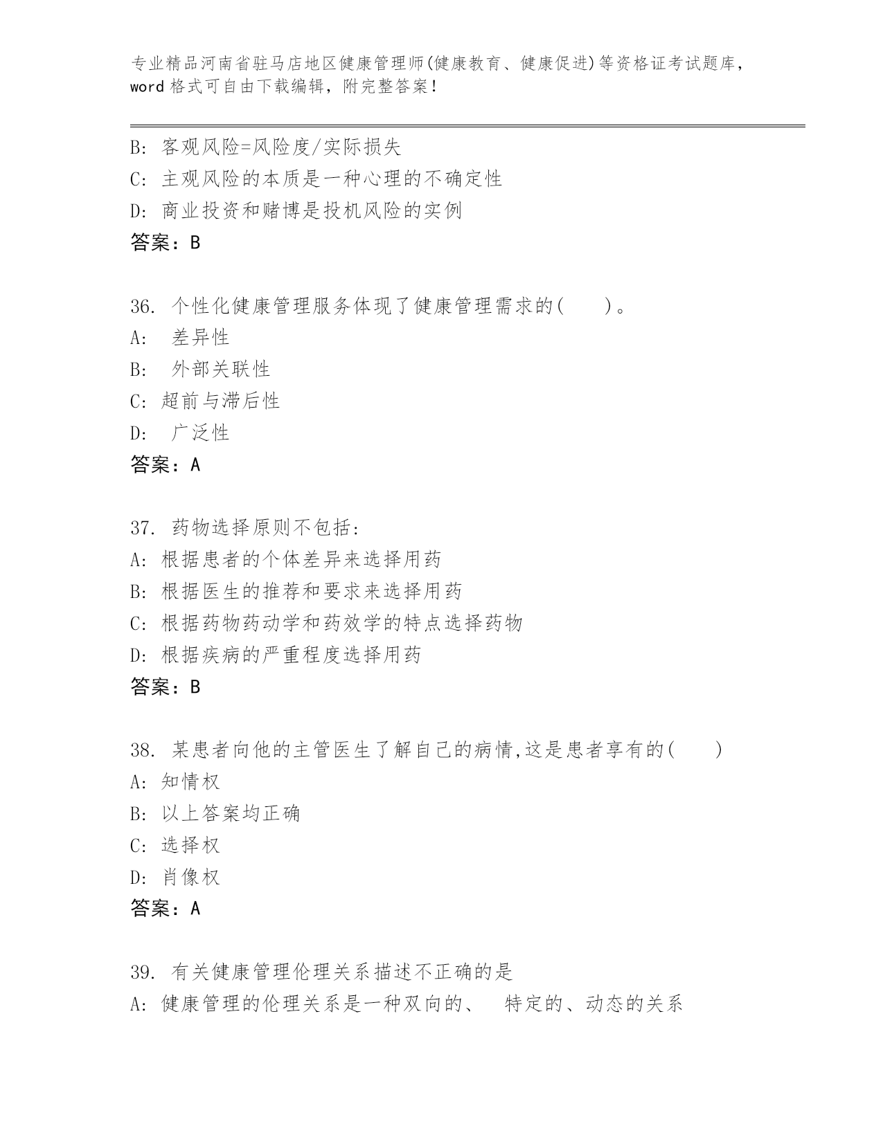 历年河南省驻马店地区健康管理师(健康教育、健康促进)等资格证考试真题题库(名师推荐).docx