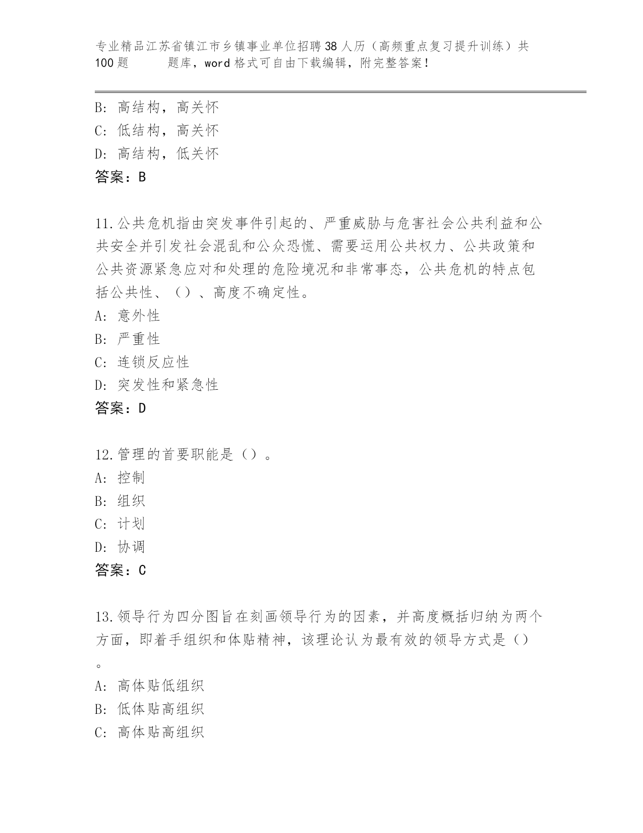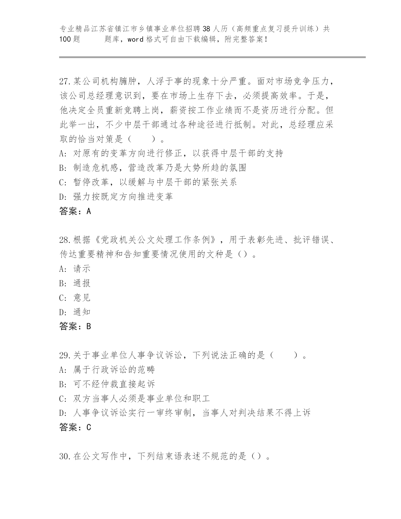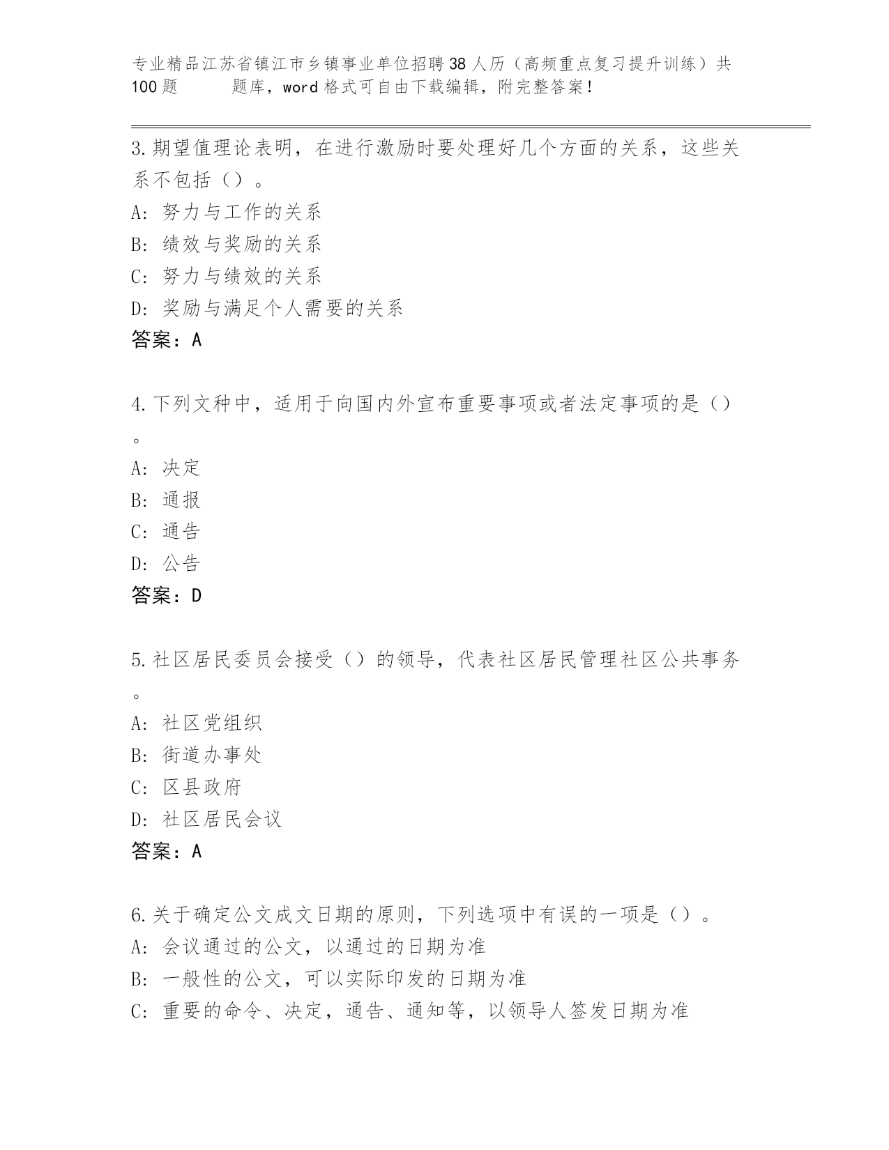 精品江苏省镇江市乡镇事业单位招聘38人历(高频重点复习提升训练)共100题 真题精品加答案